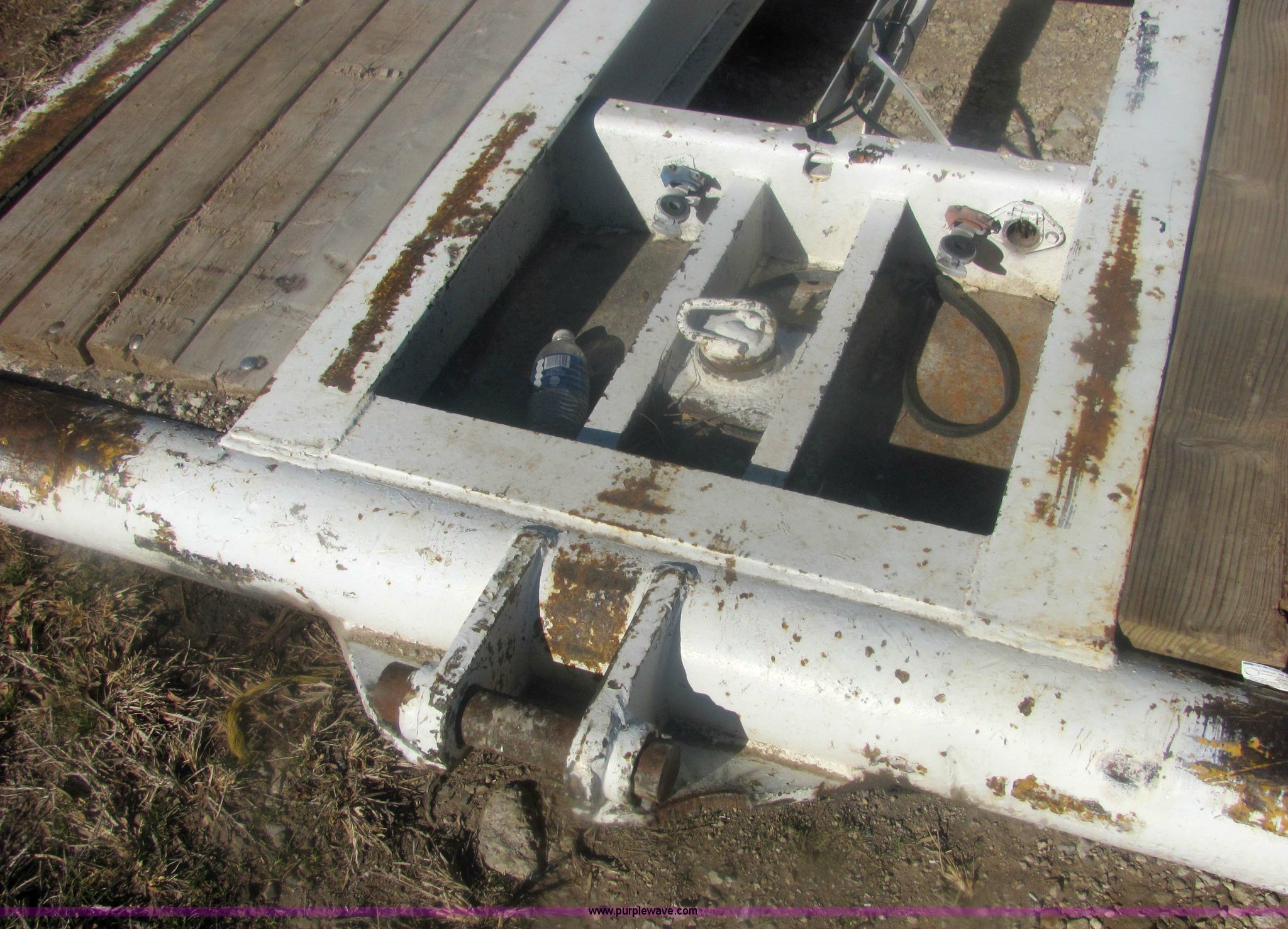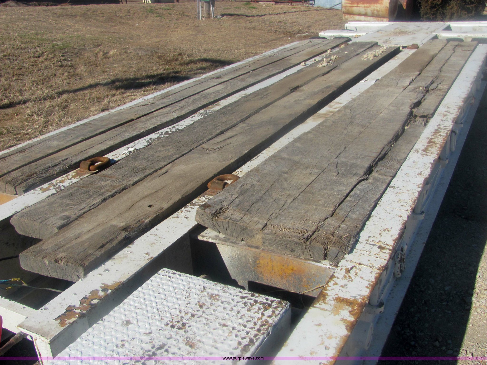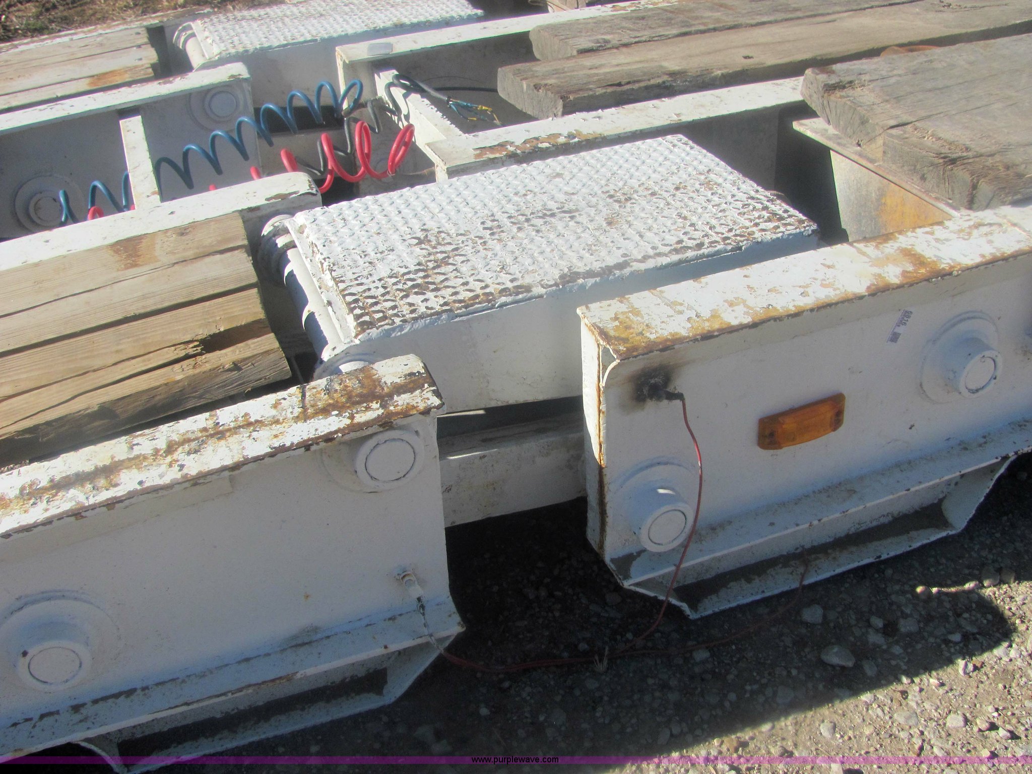 Purple Wave is selling a used Dry Van Trailer in Kansas. This item is a 1962 Hyster 40 ton equipment trailer with the following: Mechanical folding tongue, 26' deck, 94" wide, 10'6" upper deck, 10.00-15 tires