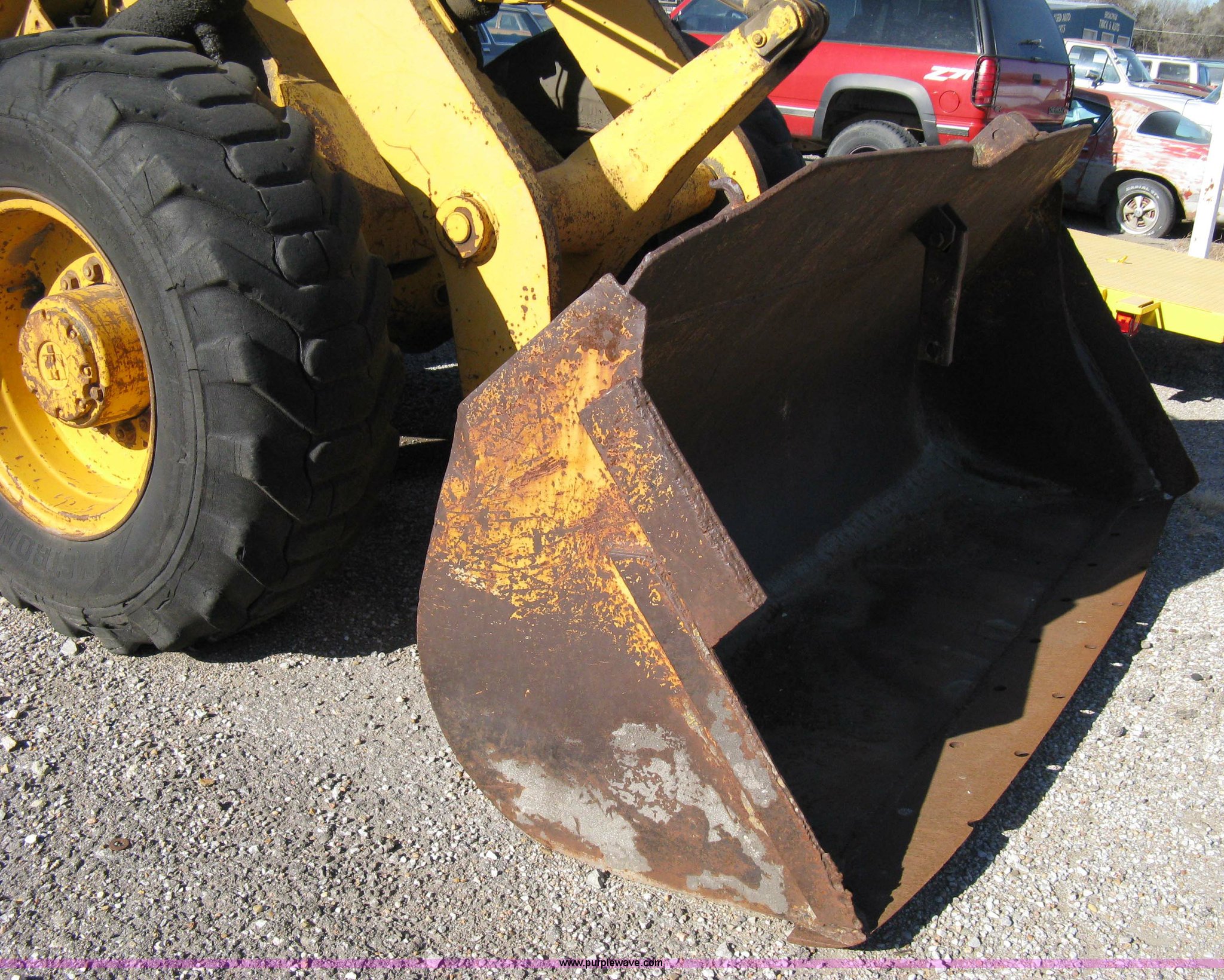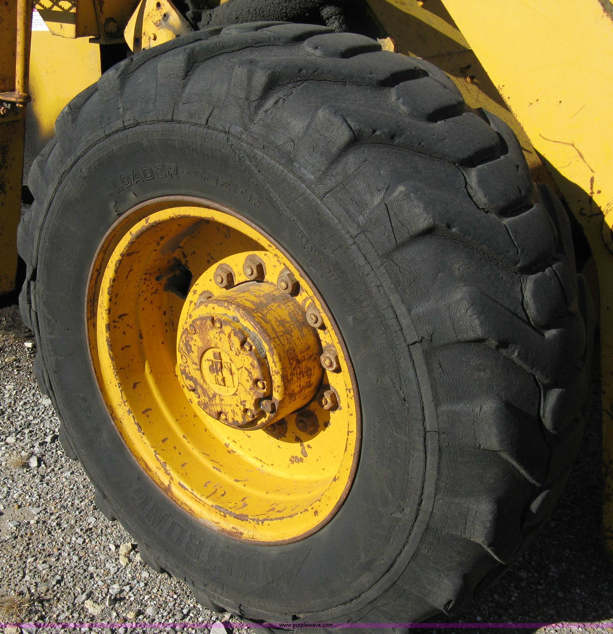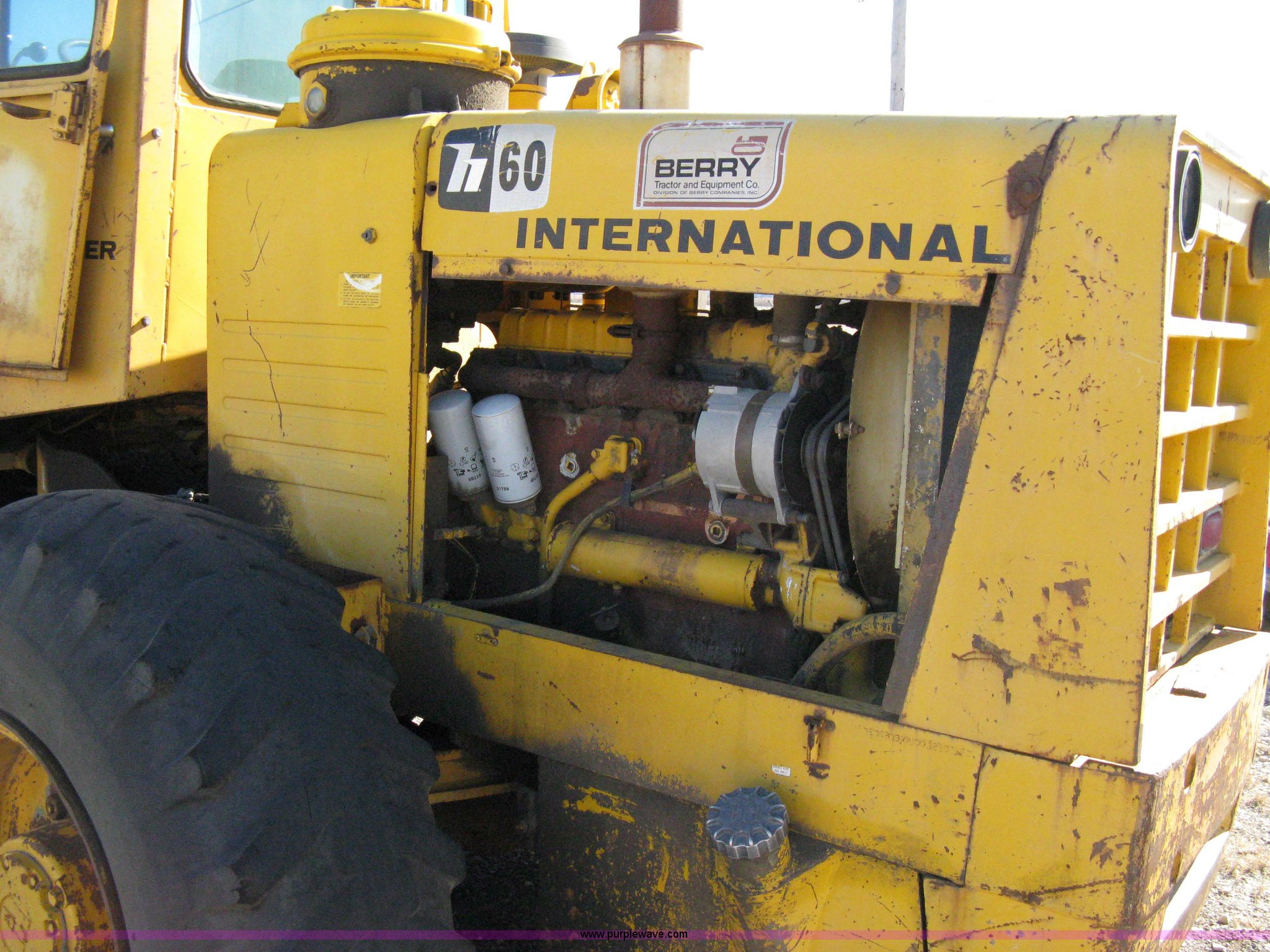 Purple Wave is selling a used Wheel Loader in Kansas. This item is a International H60 wheel loader with the following: 2181 hours on meter, Six cylinder diesel engine, Three speed transmission, Cab, All glass intact, ROPS, Model 6065, 95" bucket, GVWR 34,100 lbs, 17.5-25 tires, Currently not running, Will fire on ether, Serial H60E3420319U003288