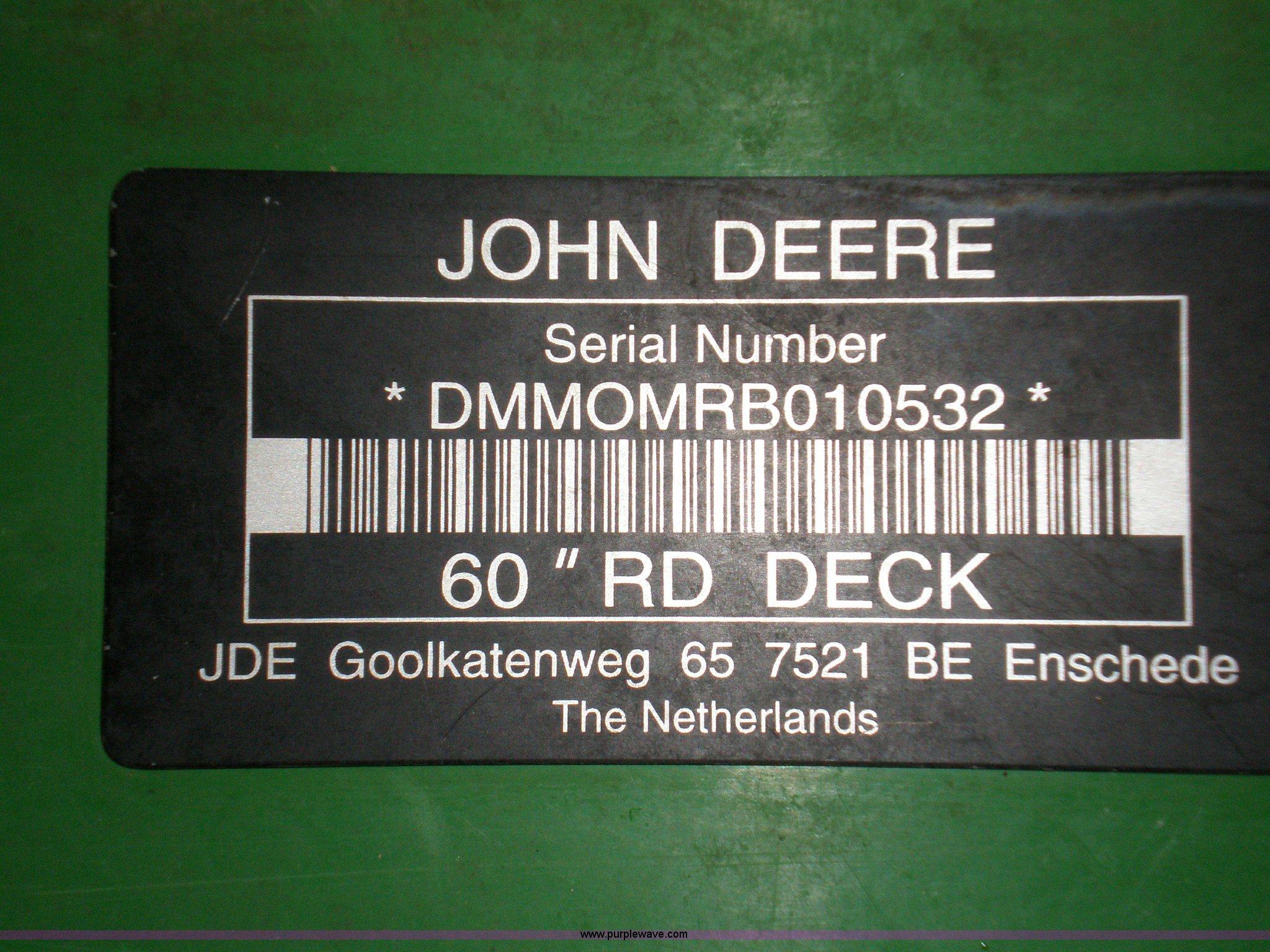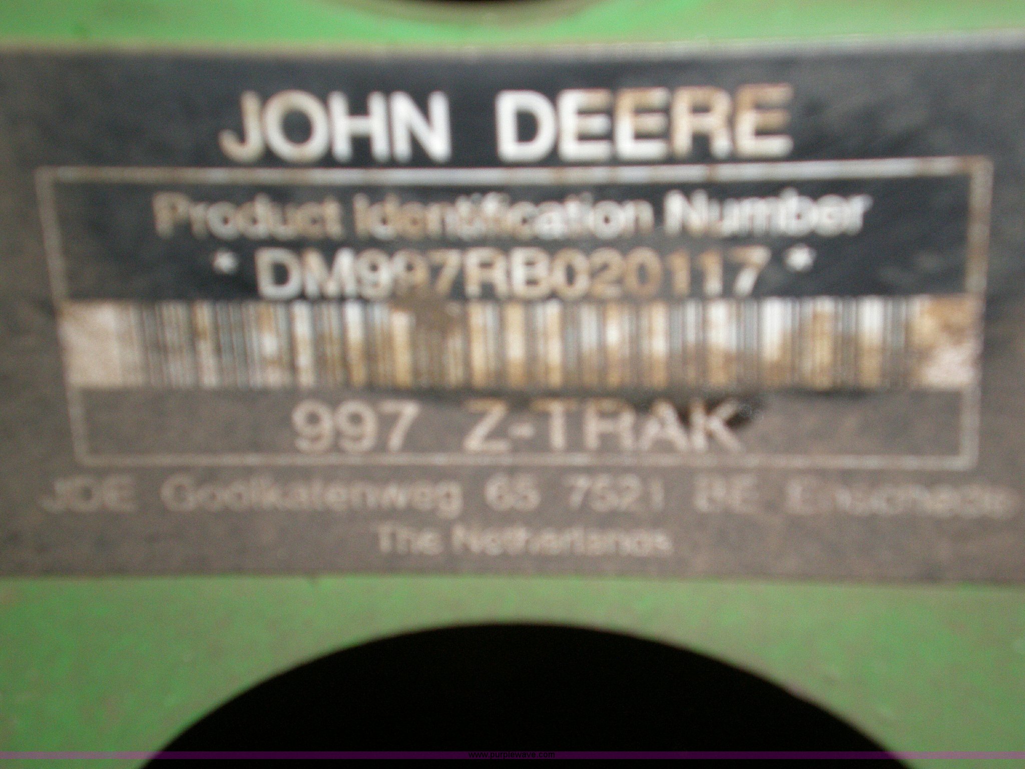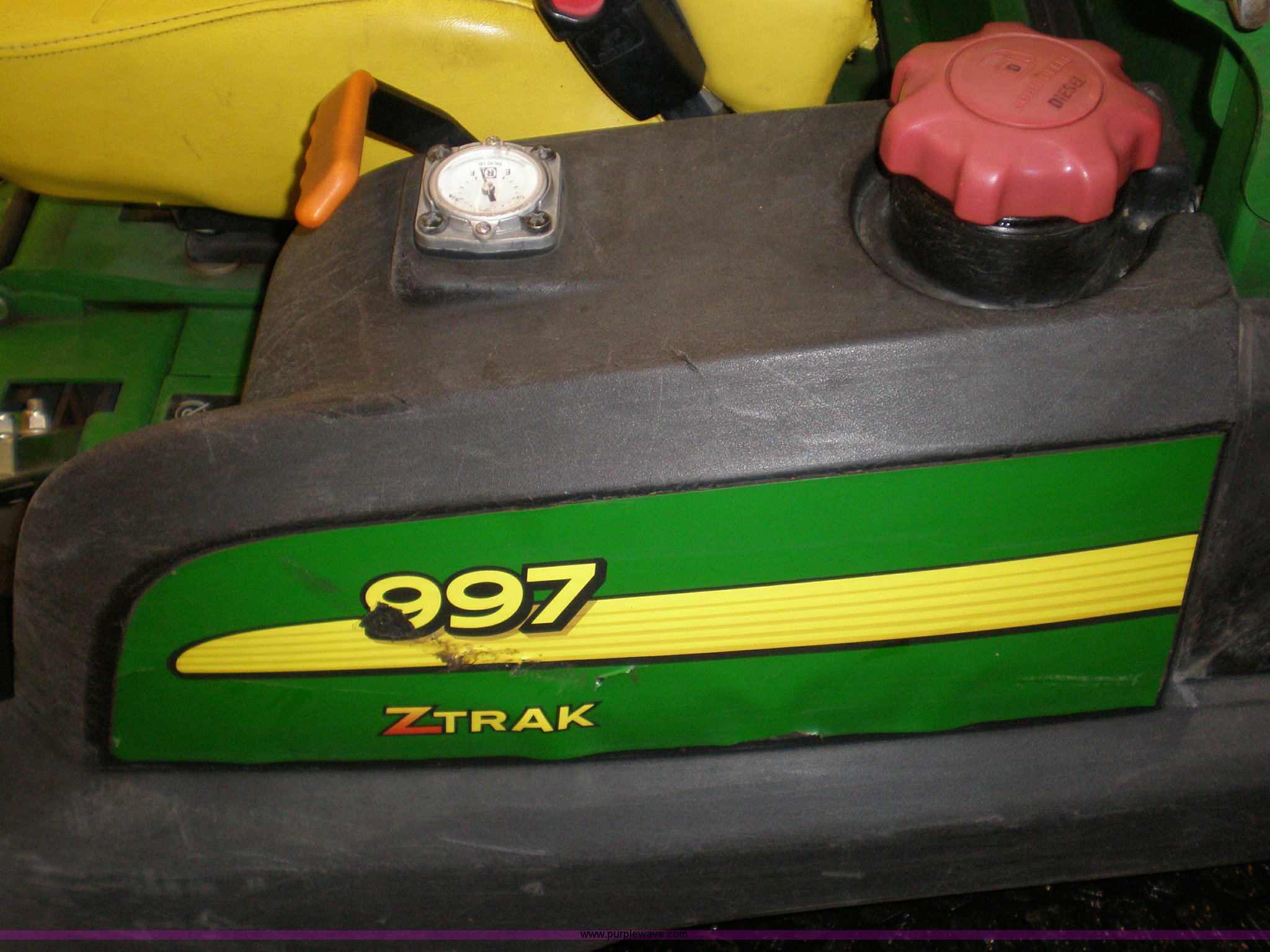 Purple Wave is selling a used Commercial Turf Mower in Iowa. This item is a 2007 John Deere 997 Z Trac mower with the following: 1,490 hours on meter, Yanmar 31 HP diesel engine, 60" rear discharge deck with hydraulic lift, Two lever hydrostatic drive, 12 gallon fuel tank, Shaft driven mower deck, Rear bumper, Serial DM997RB020117