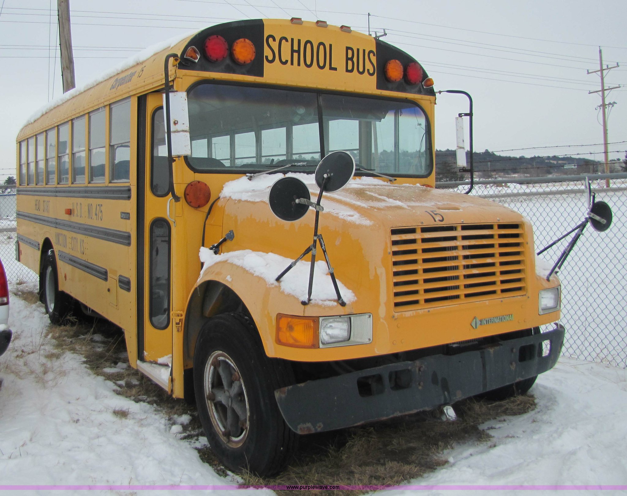 Purple Wave is selling a used Bus in Kansas. This item is a 1992 International 3800 Carpenter 47 passenger school bus with the following: 45,394 miles on odometer, International DTA360 L6, 5.9L 180hp (360CID) diesel engine, Automatic transmission, GVWR 24,160 lbs, 9.00R20 tires, Carpenter 2209 bus body, Serial 103098, Parked for three years, Unknown running condition