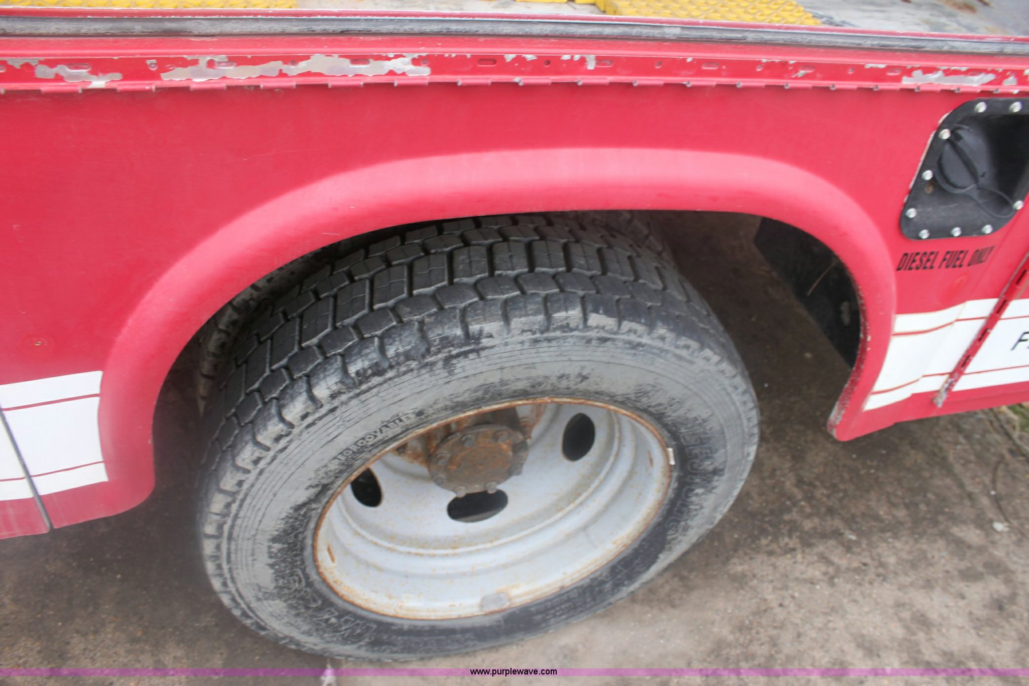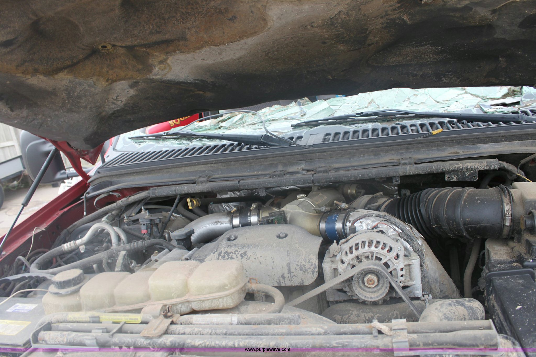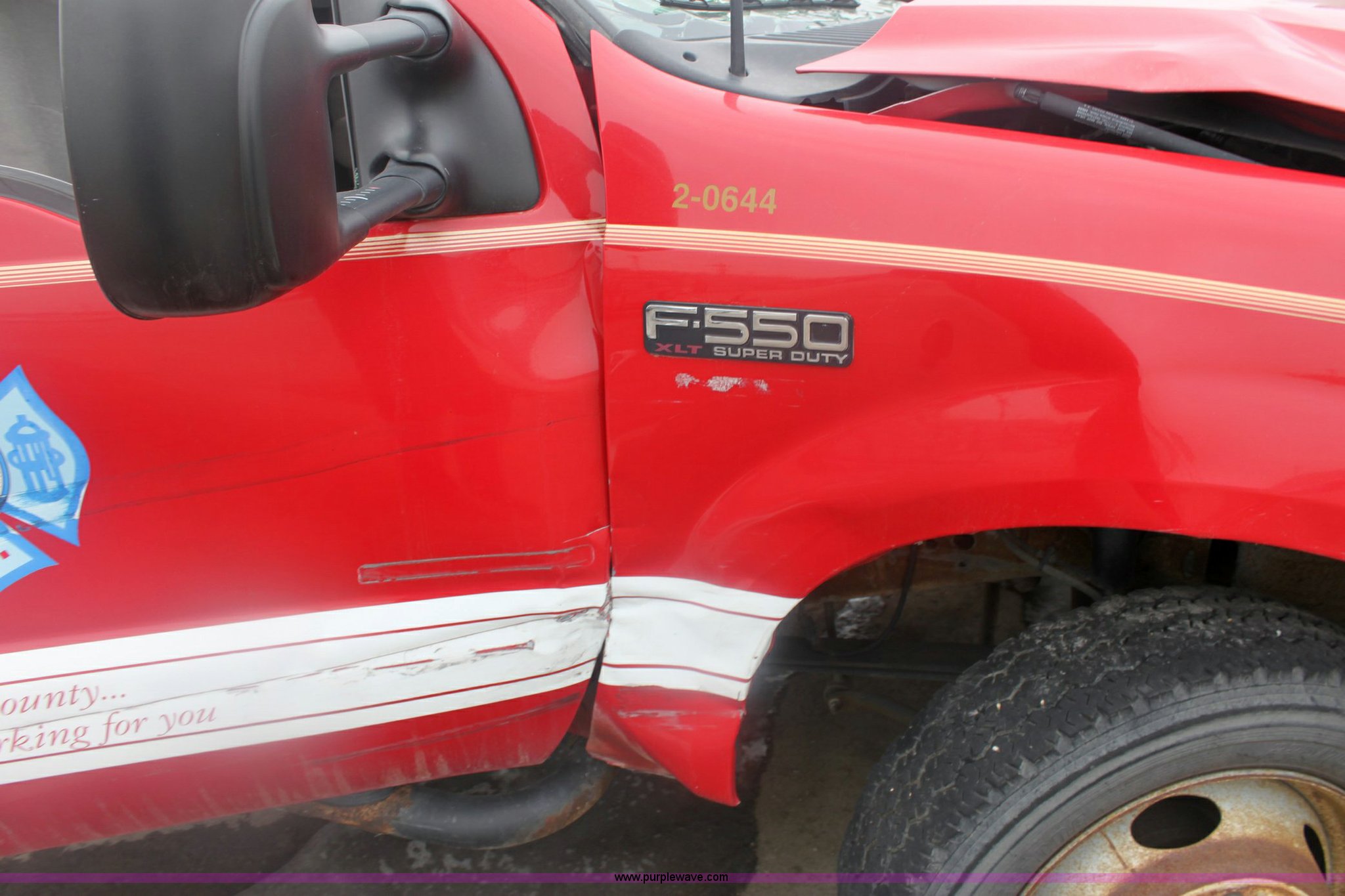Purple Wave is selling a used Service Truck in Kansas. This item is a 2001 Ford F550 XLT Super Duty pickup truck with the following: 65,407 miles on odometer, V8 7.3L turbo diesel engine 205-235HP, Automatic transmission, Four wheel drive, AC and heat, Tilt, Cruise, AM/FM/Cassette, Power windows, locks, and mirrors, Utility bed, 225/70R19.5 tires, Vehicle been rolled, Inoperable
