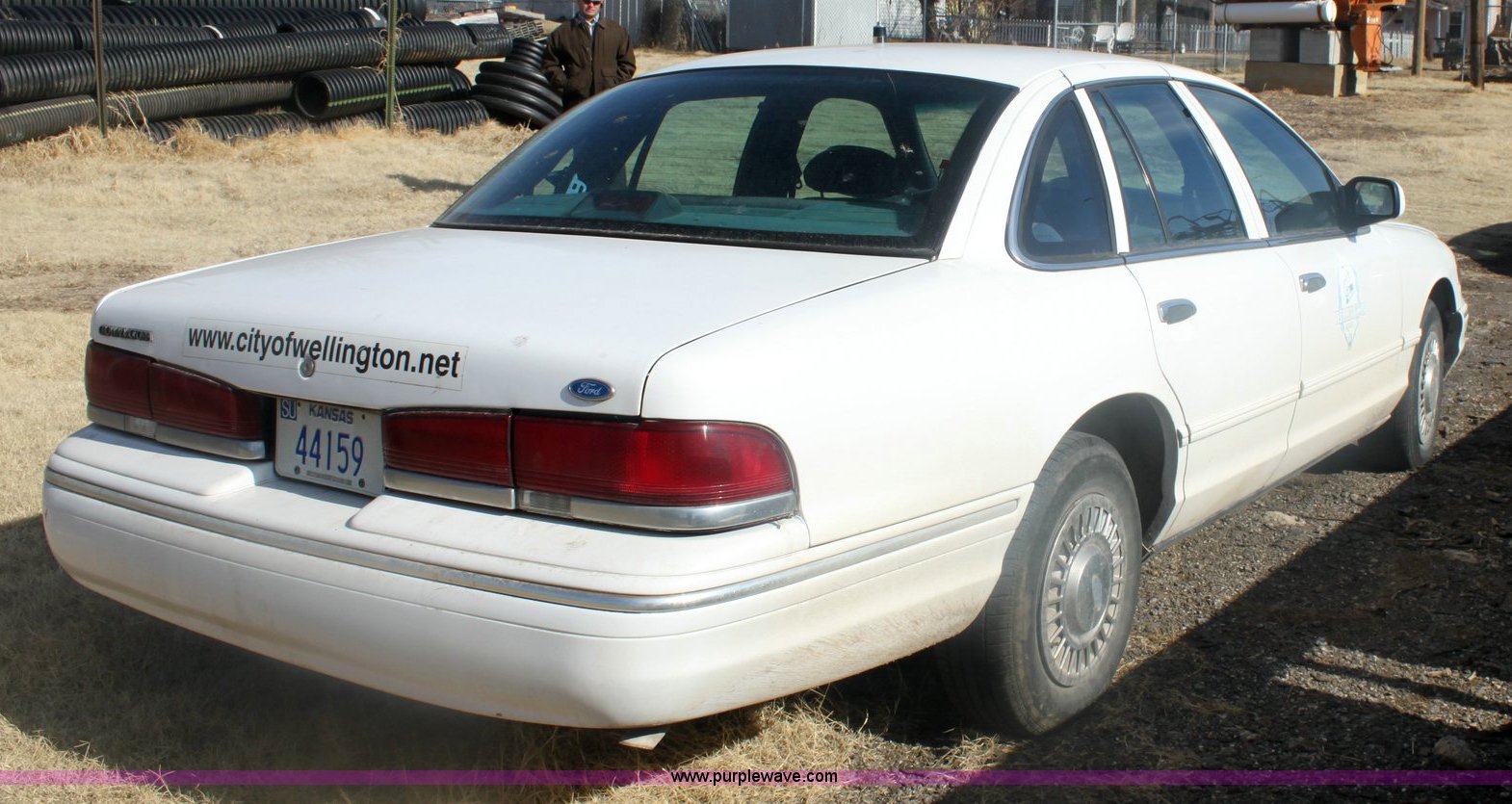 1996 Ford Crown Victoria Police Interceptor. 91,819 miles on odometer, 4.6L V8 SFI gas engine, Automatic transmission, Two wheel drive, AC and heat, Tilt, Cruise, AM/FM, Power windows, locks, and mirrors, 215/70R15 tires, Two-way radio not included. 2FALP71W5TX184531. Shipping quotes available. City of Wellington. 504 S Blain. Wellington, KS 67152