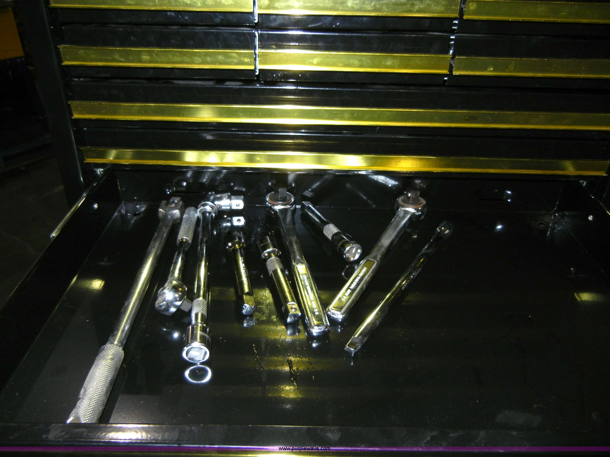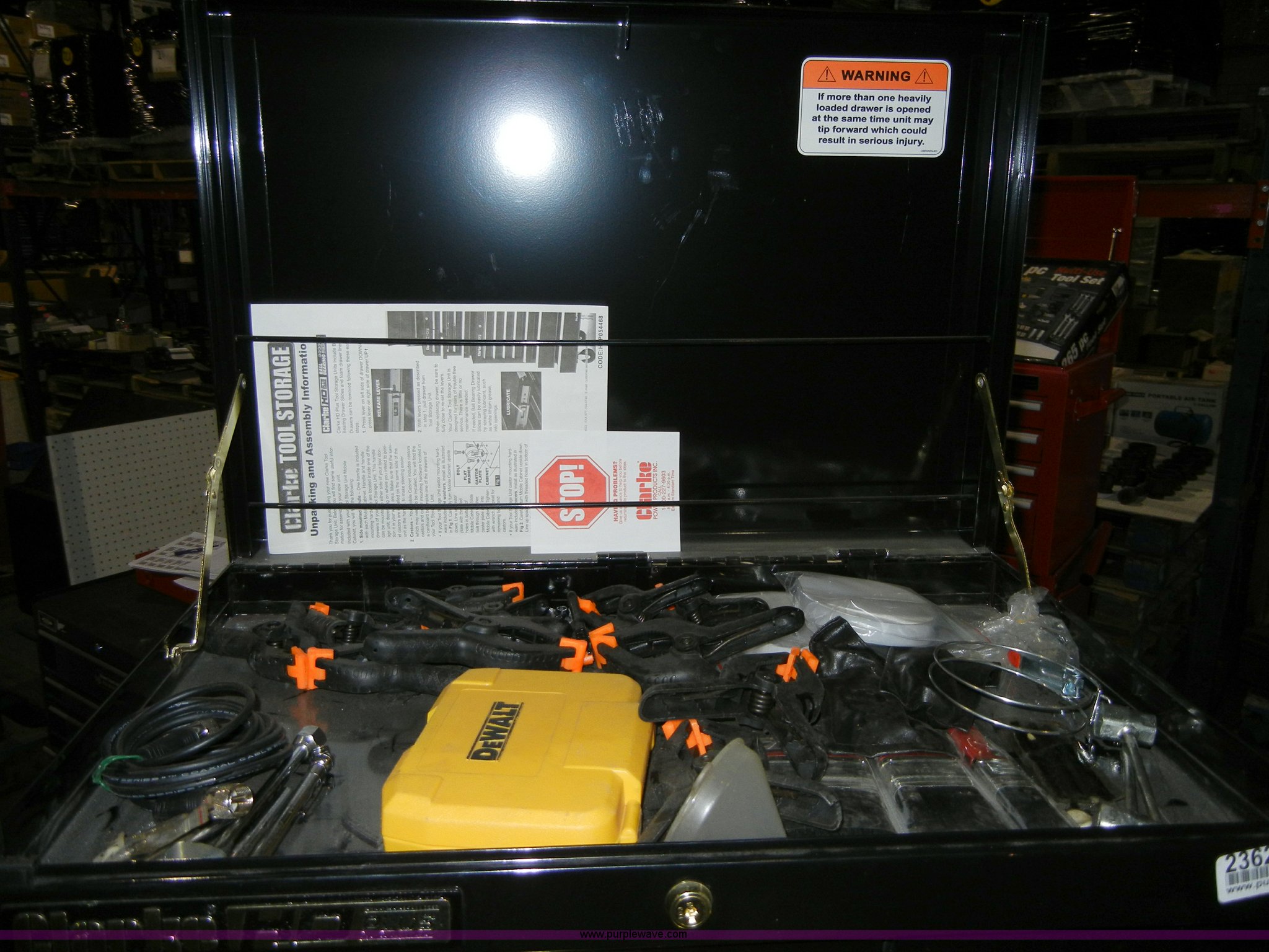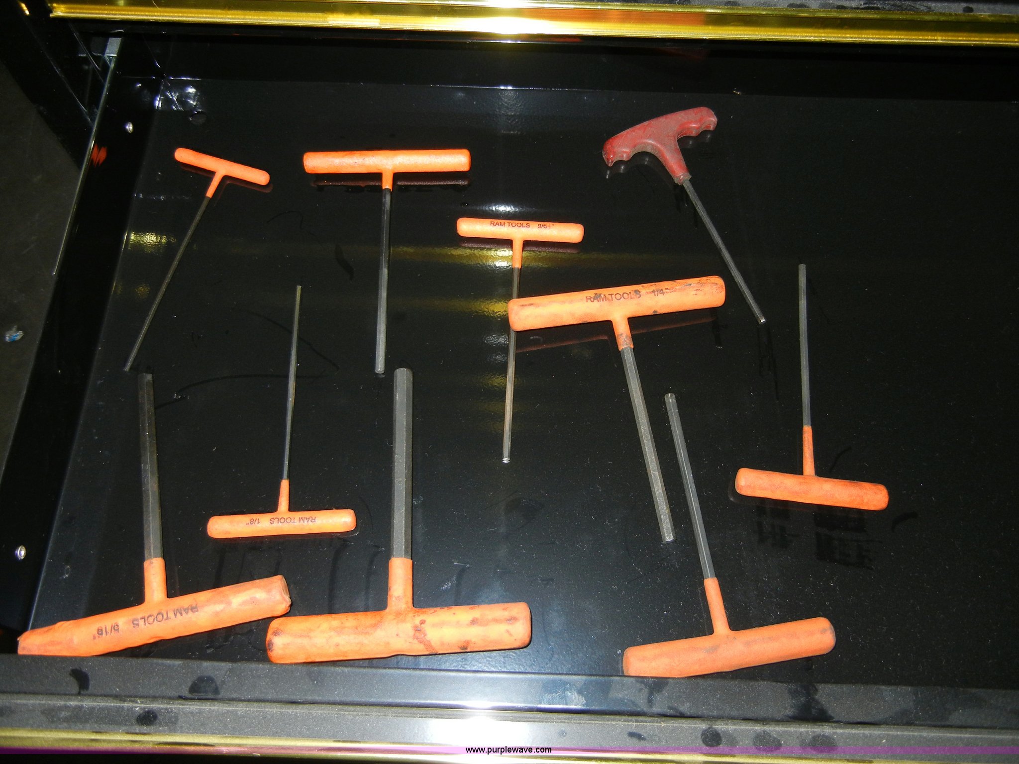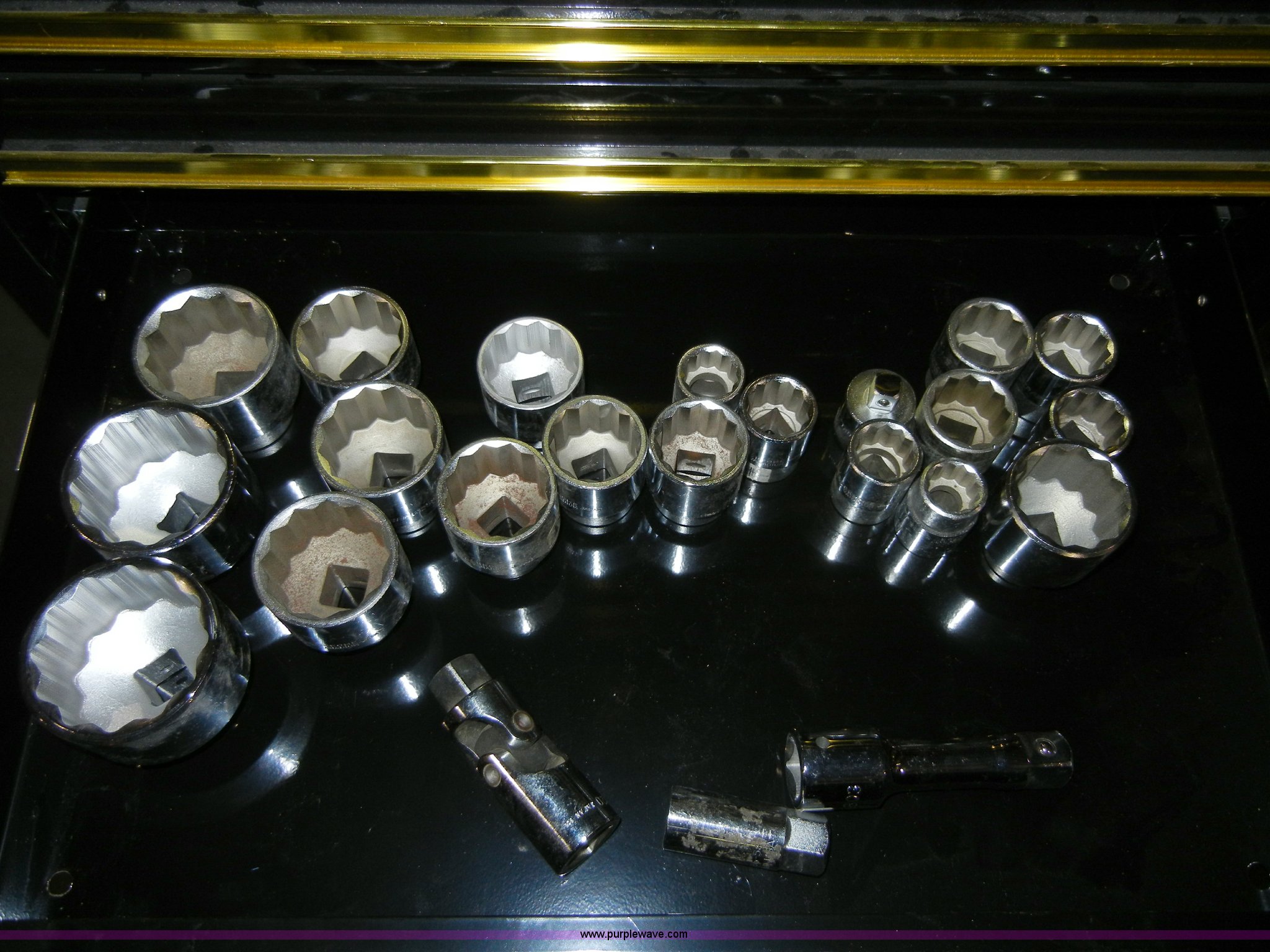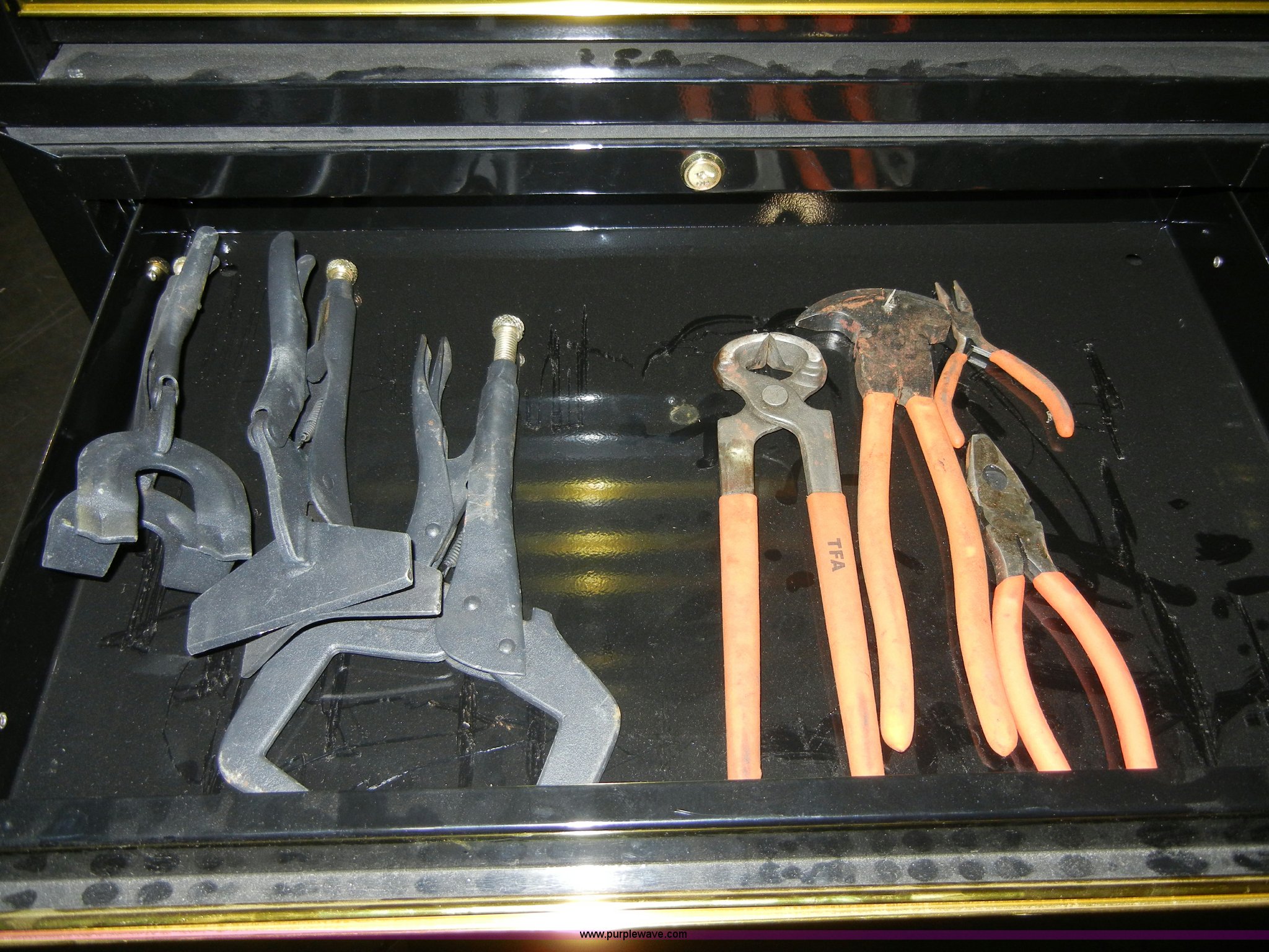 Purple Wave is selling a used Tools in Kansas. This item is a Assorted tools with the following: Clarke HD plus 19 drawer toolbox, Ball bearing roller drawers, 27 x 18 x 62, 5" casters, 13 piece Husky 1/2" drive socket set with ratchet, 18 piece clamp set, Three piece all purpose paint brush set, 10 piece Dewalt drill bit set with counter set bits, Nine piece screwdriver set, 14 piece plier set, 11 piece torx socket set, 66 piece sockets 1/4", 3/8", 1/2" drives with ratchets, 17 piece combo wrench set metric/SAE, 15 piece chisel set, Two piece rat tail file set, 10 piece T-handle hex set, 23 piece jumbo socket set 3/4" drive, Four piece pipe wrench set, 12 volt air compressor