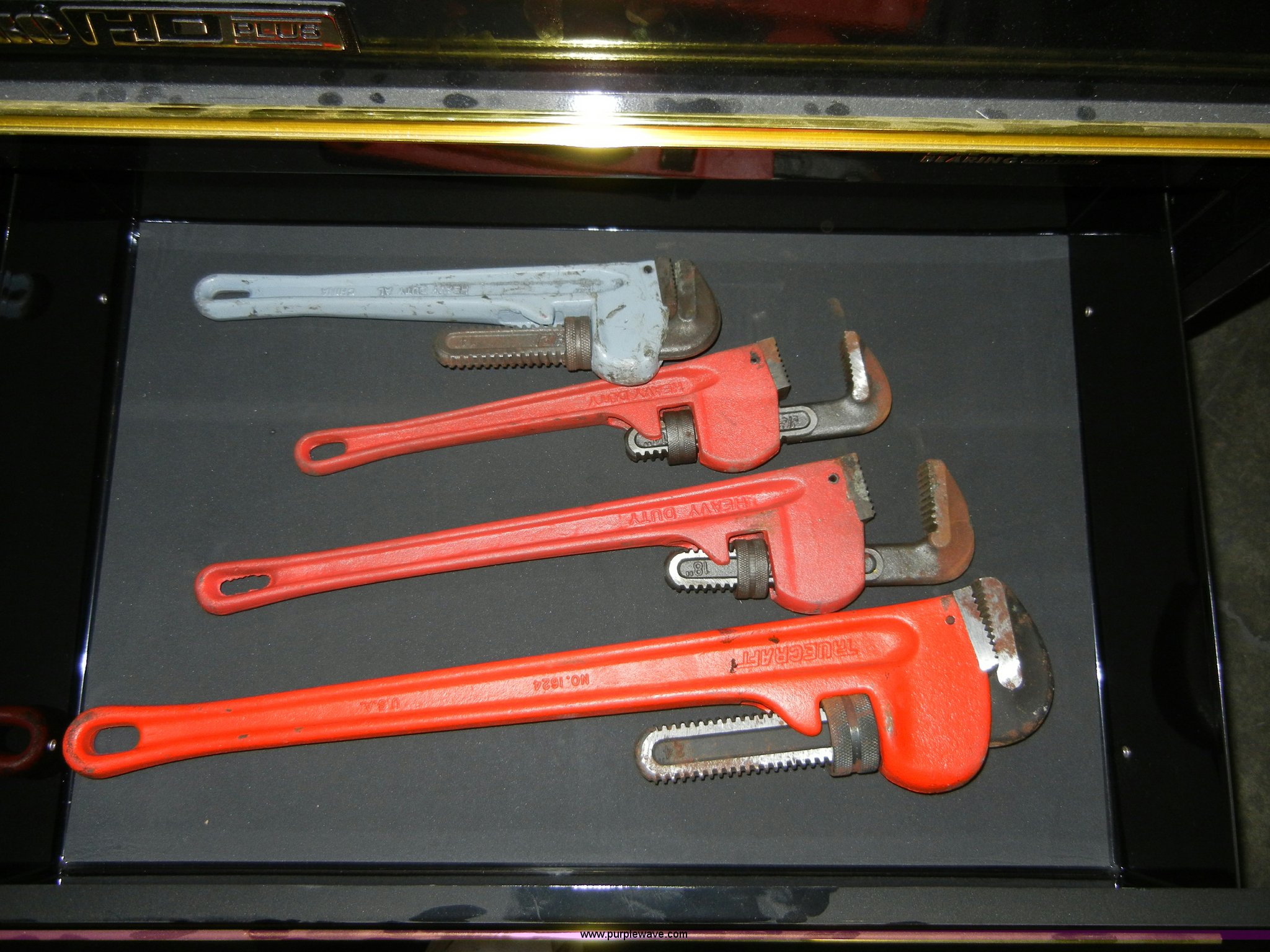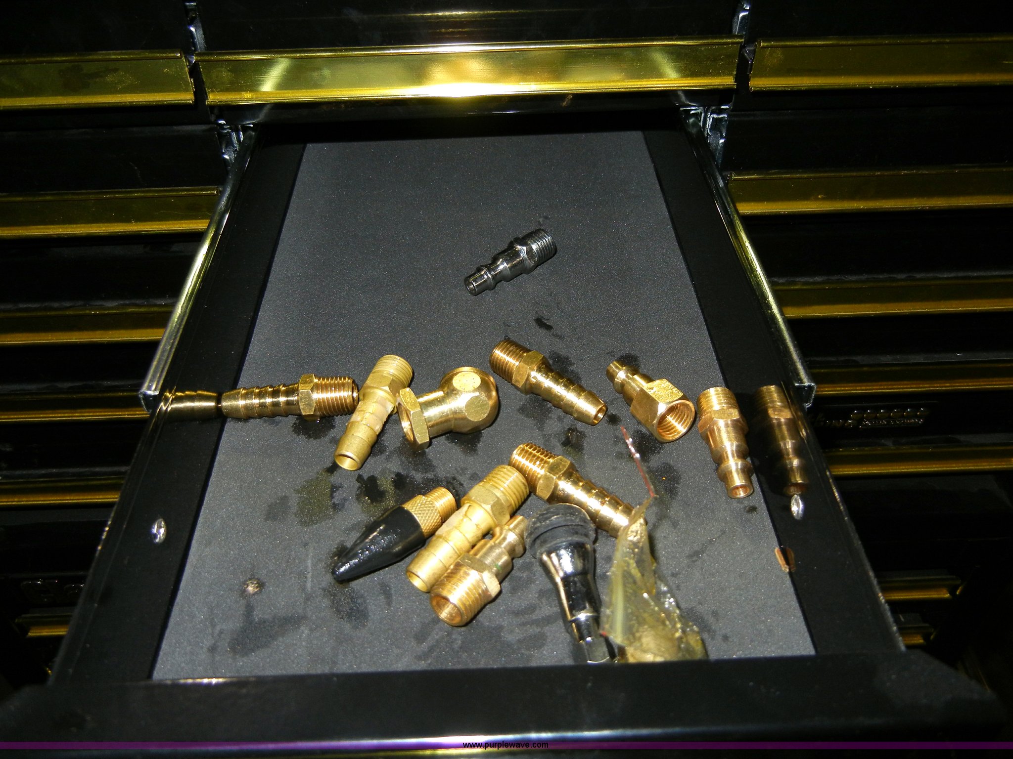 Assorted tools. Clarke HD plus 19 drawer toolbox Ball bearing roller drawers, 27 x 18 x 62, 5" casters, 13 piece Husky 1/2" drive socket set with ratchet, 18 piece clamp set, Three piece all purpose paint brush set, 10 piece Dewalt drill bit set with counter set bits, Nine piece screwdriver set, 14 piece plier set, 11 piece torx socket set, 66 piece sockets 1/4", 3/8", 1/2" drives with ratchets, 17 piece combo wrench set metric/SAE, 15 piece chisel set, Two piece rat tail file set, 10 piece T-handle hex set, 23 piece jumbo socket set 3/4" drive, Four piece pipe wrench set, 12 volt air compressor. Shipping quotes available. TAP Enterprises, Inc.. 650 North Lincoln St.. Spring Hill, KS 66083