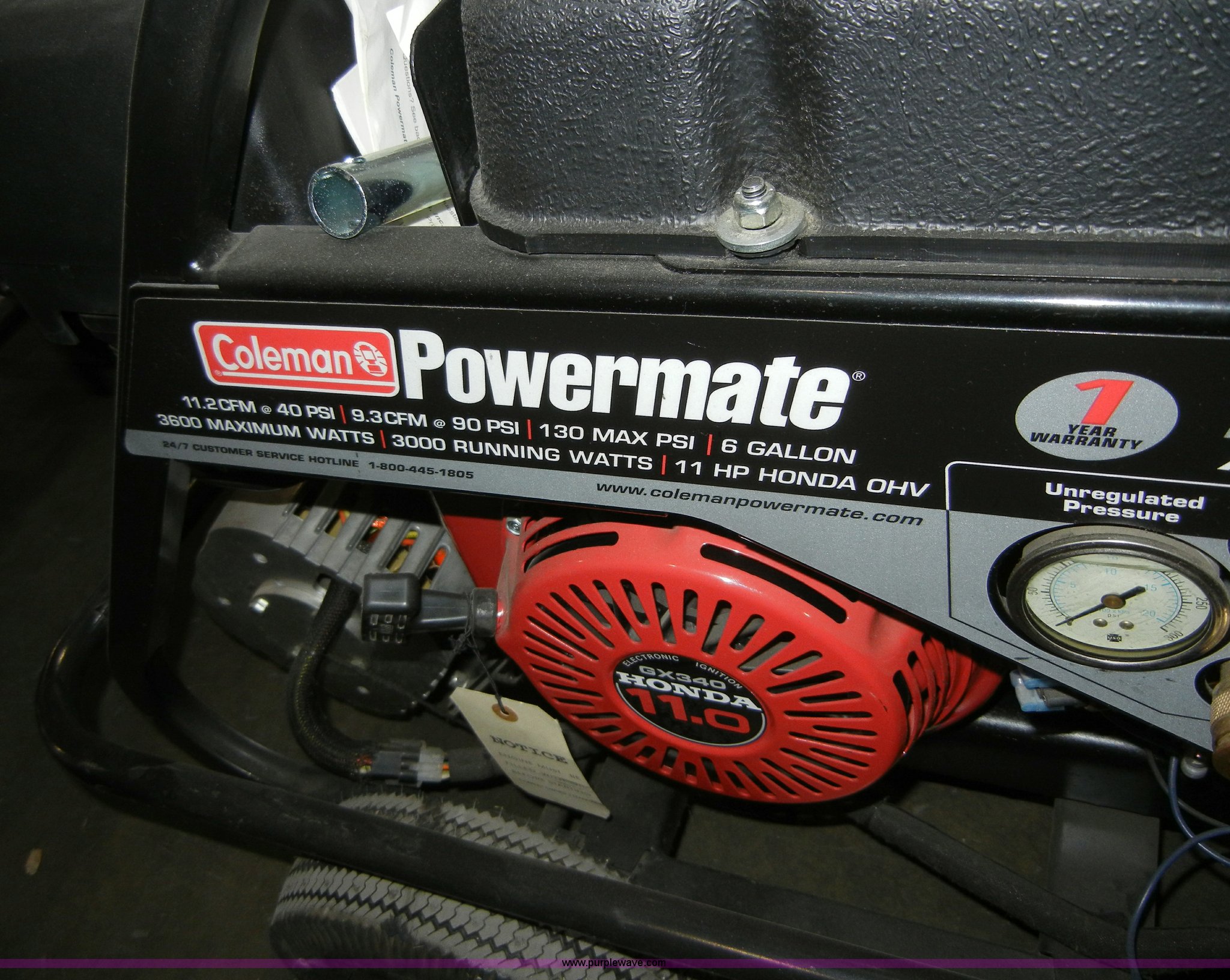 Coleman Powermate dual power air compressor and generator has sold in Spring Hill, Kansas for $1100. Item 2368 sold on February 15th, 2011.