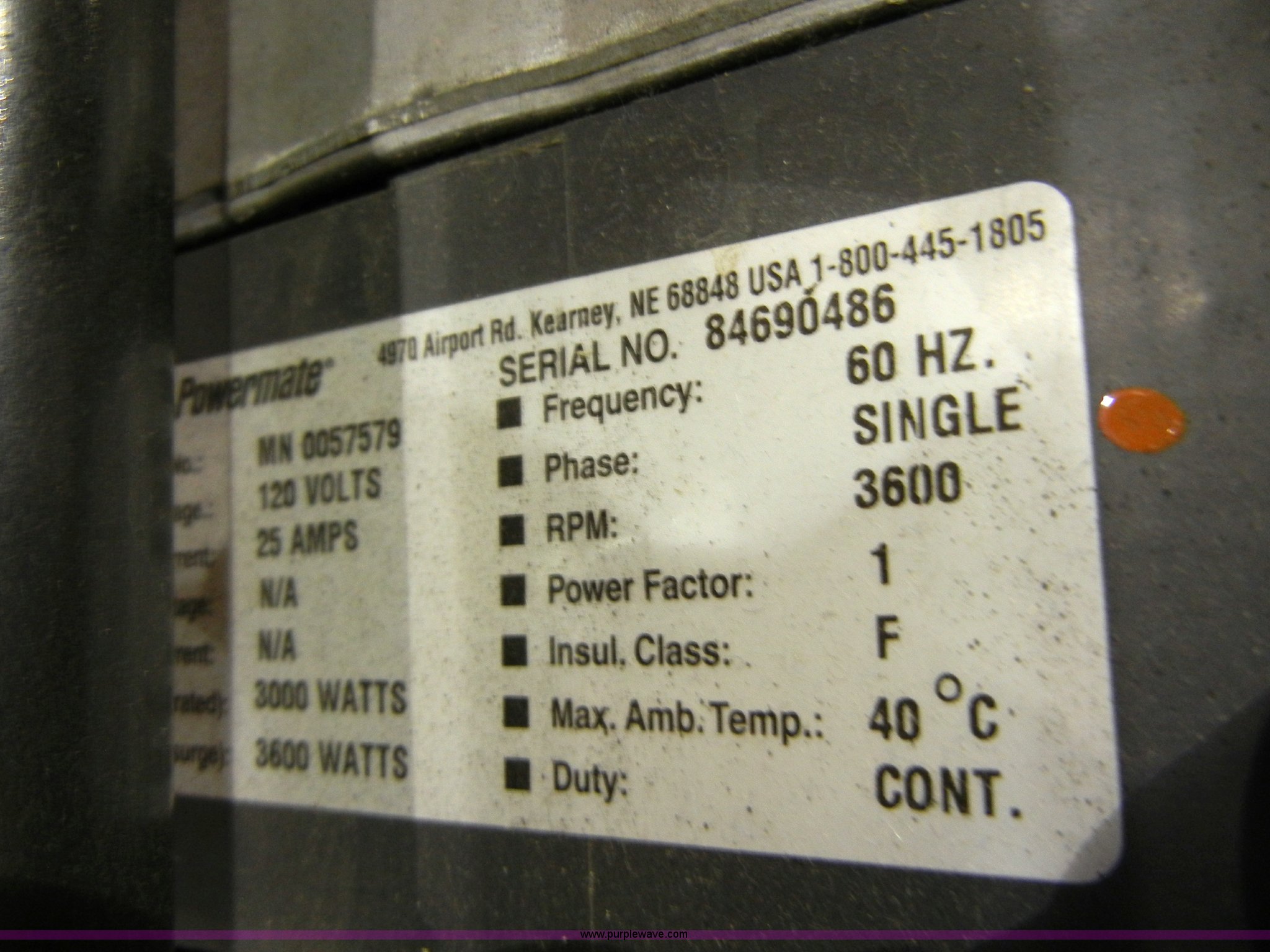 Purple Wave is selling a used Generator Set in Kansas. This item is a Coleman Powermate dual power air compressor and generator with the following: Honda 11 HP engine, 3,000 watt generator, 3,600 watt max surge, Six gallon air compressor, 11.2 CFM at 40 psi, 9.3 CFM at 90 psi, Single phase, Never been used, Model MN0057579, Serial 84690486