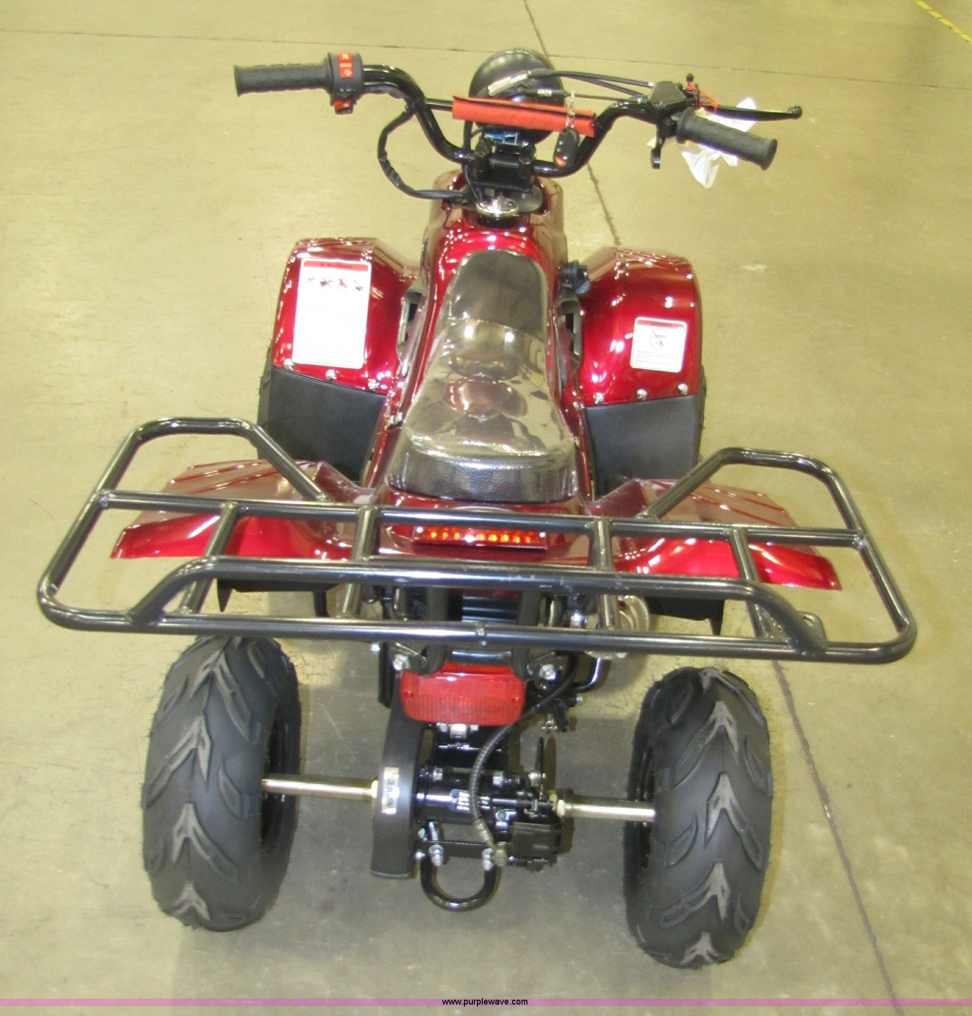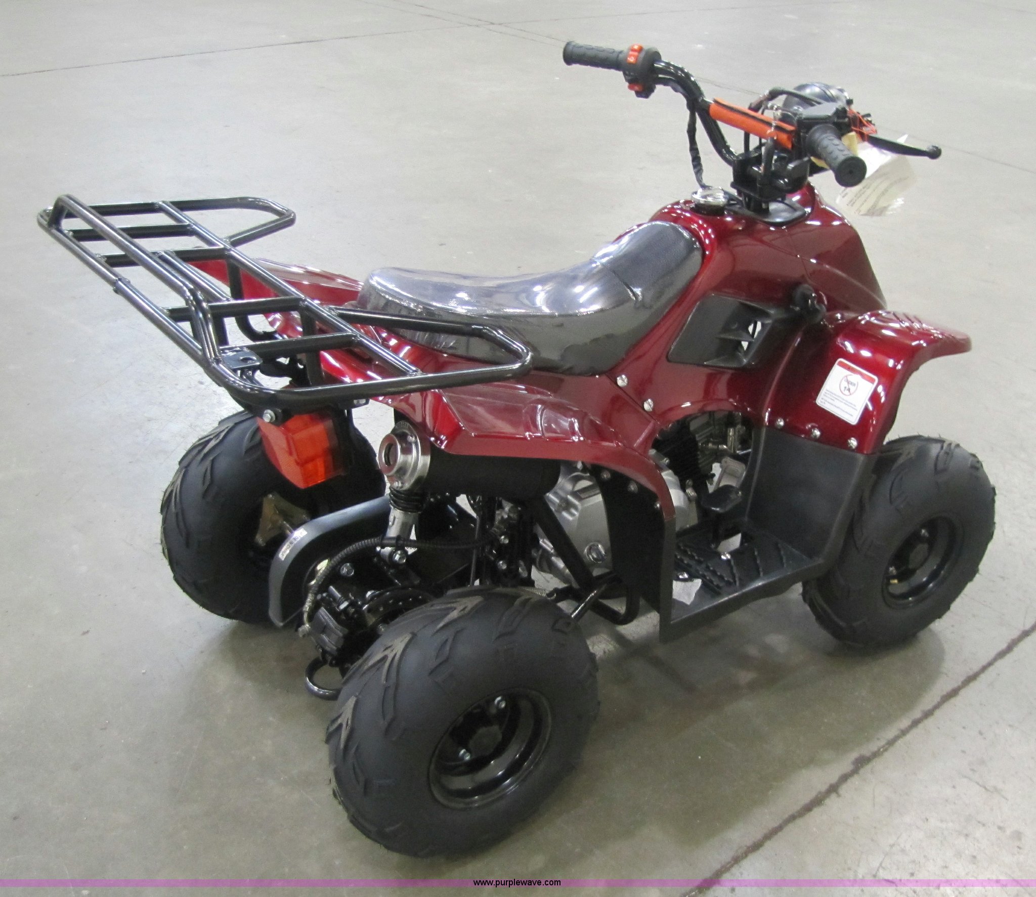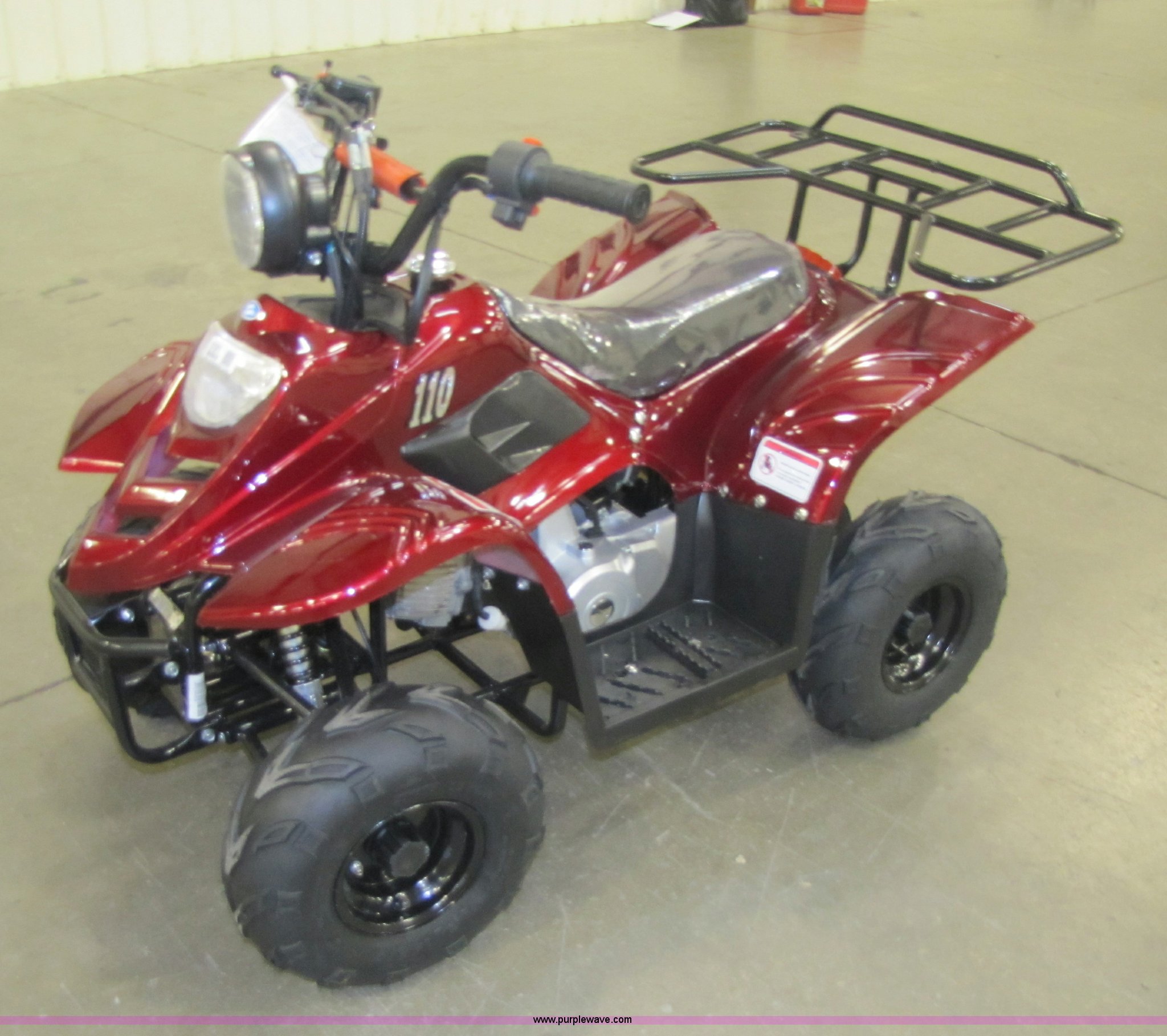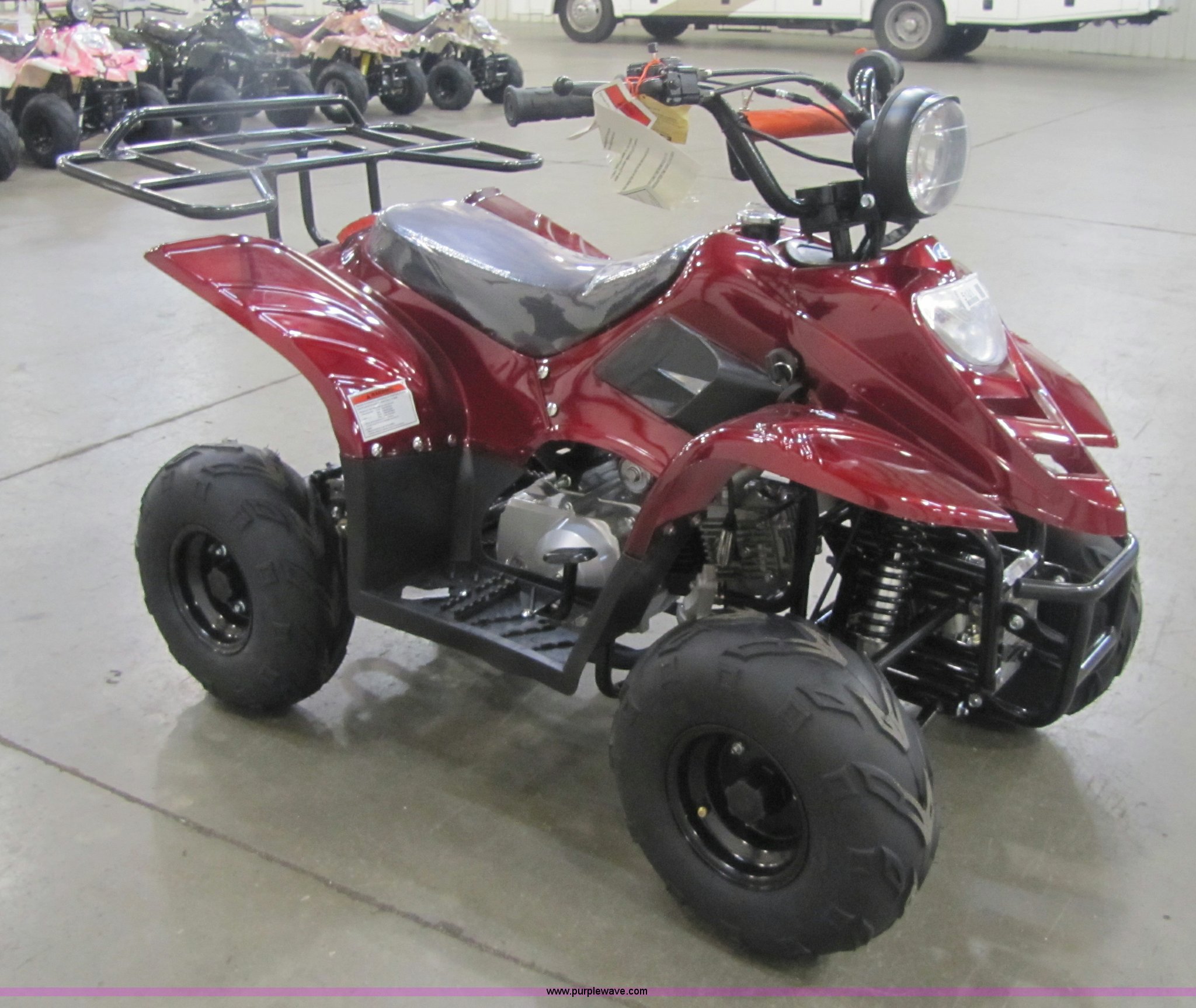 Purple Wave is selling a used ATV in Kansas. This item is a Tao Tao ATA110-B ATV with the following: 107cc four-stroke engine, Automatic transmission, Electric start, Remote control starter and kill switch, Air cooled, Gross weight 242 lbs, Overall size 45.7" x 28" x 33.3", Manufactured 2010-07, Red, Unit unassembled in crate, Seized