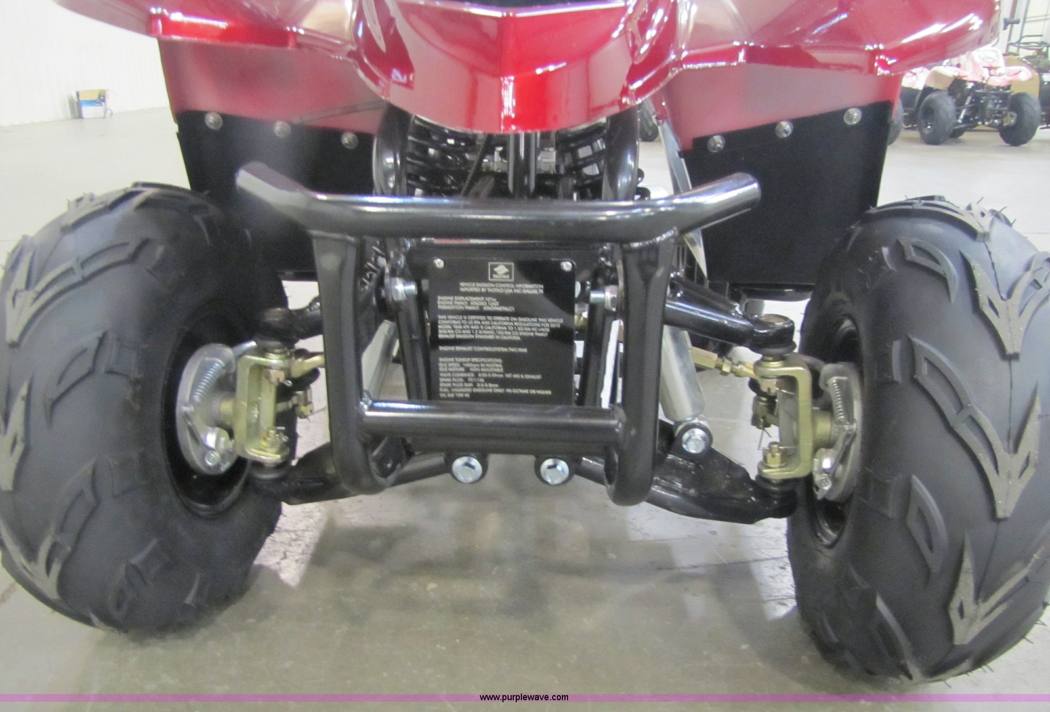 Tao Tao ATA110-B ATV. 107cc four-stroke engine, Automatic transmission, Electric start, Remote control starter and kill switch, Air cooled, Gross weight 242 lbs, Overall size 45.7" x 28" x 33.3", Manufactured 2010-07, Red, Unit unassembled in crate, Seized. Units are considered "toys" and not "non-highway vehicles" which require non-highway titles in Kansas. Representative photo. L5NATMCTXAT257326. Shipping quotes available. Kansas Highway Patrol Seized. 3501 NW US Hwy 24. Topeka, KS 66618