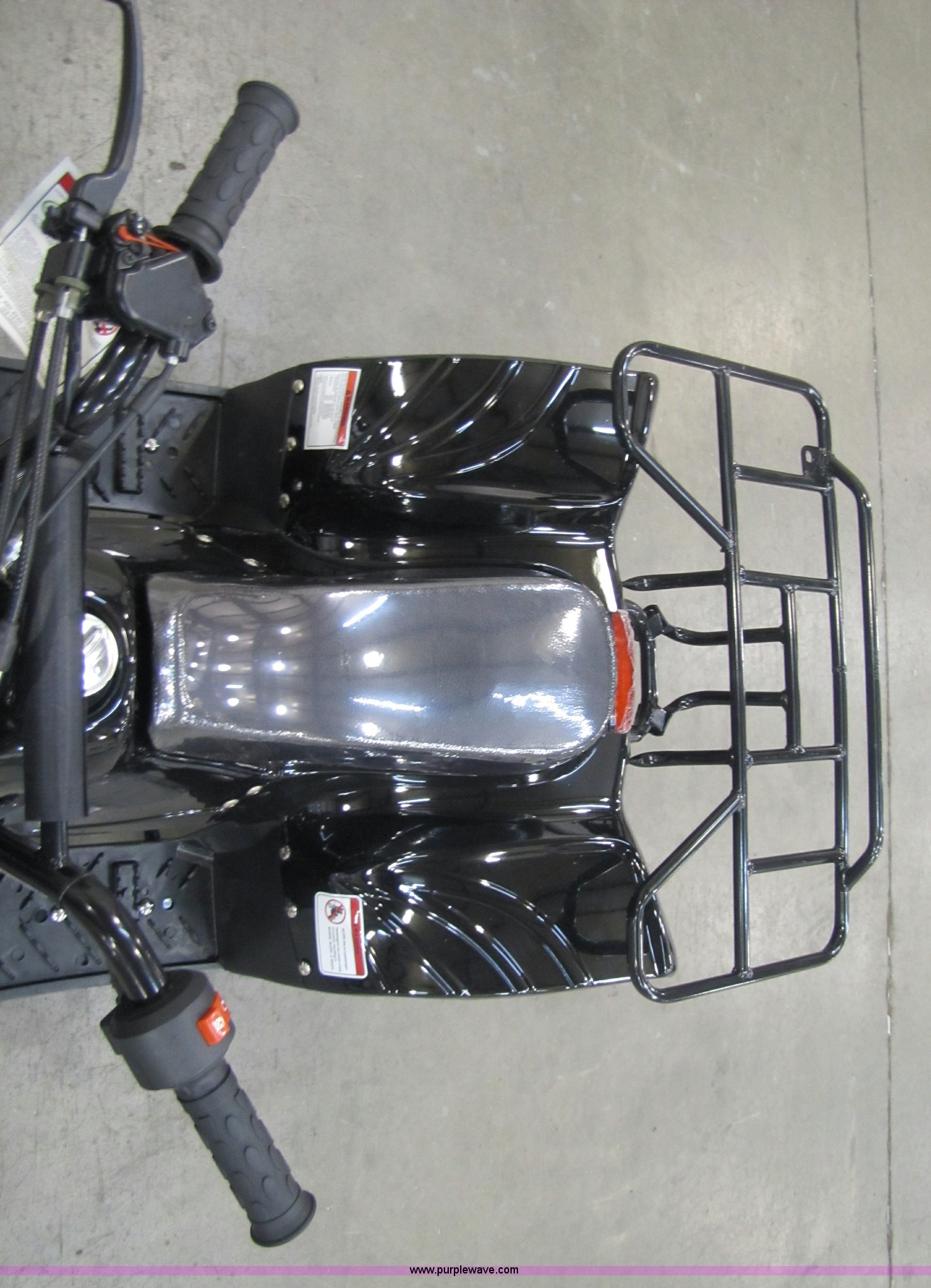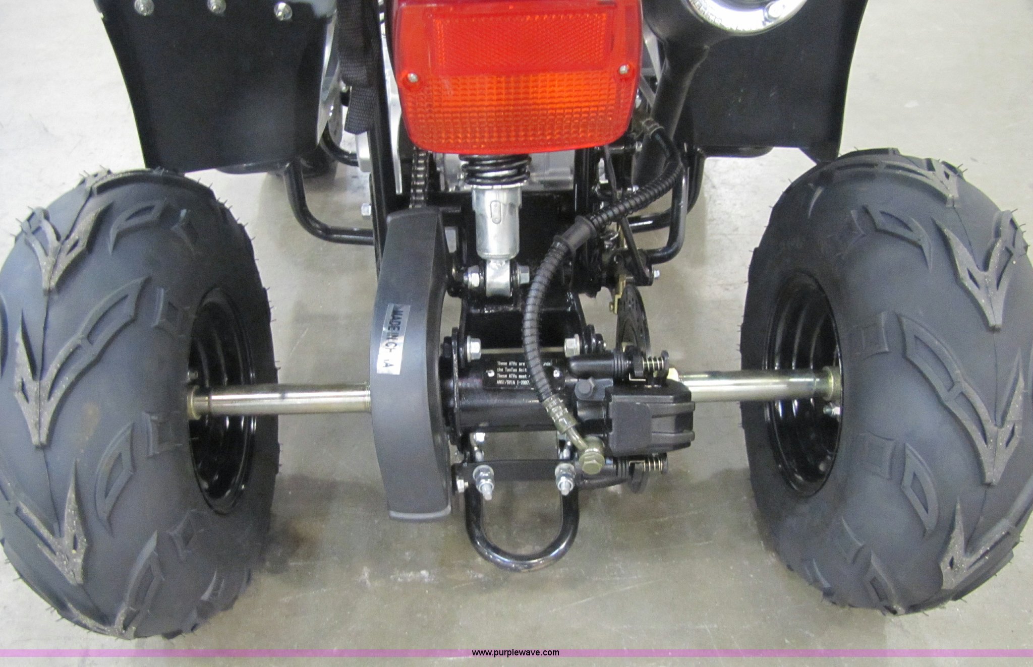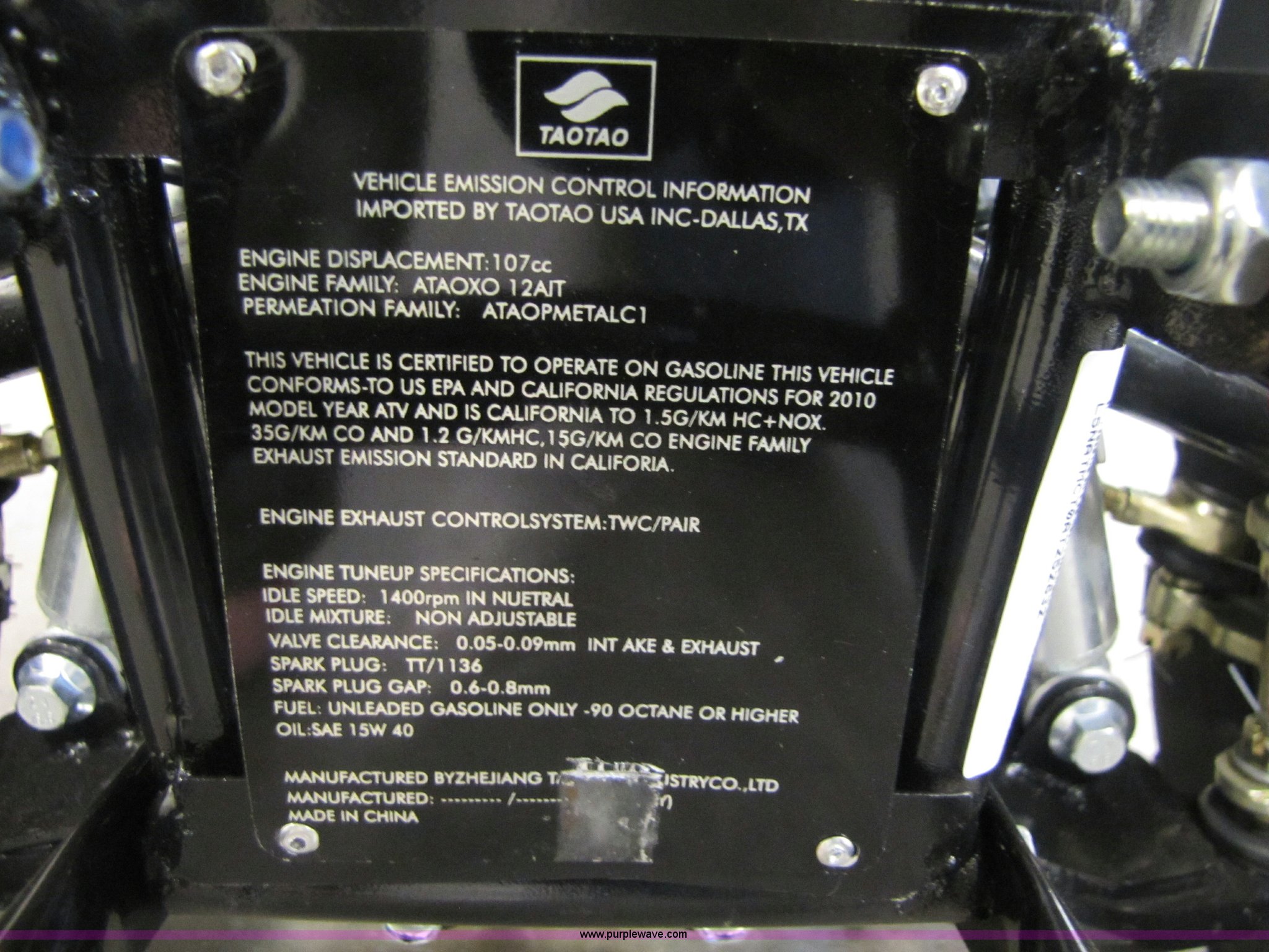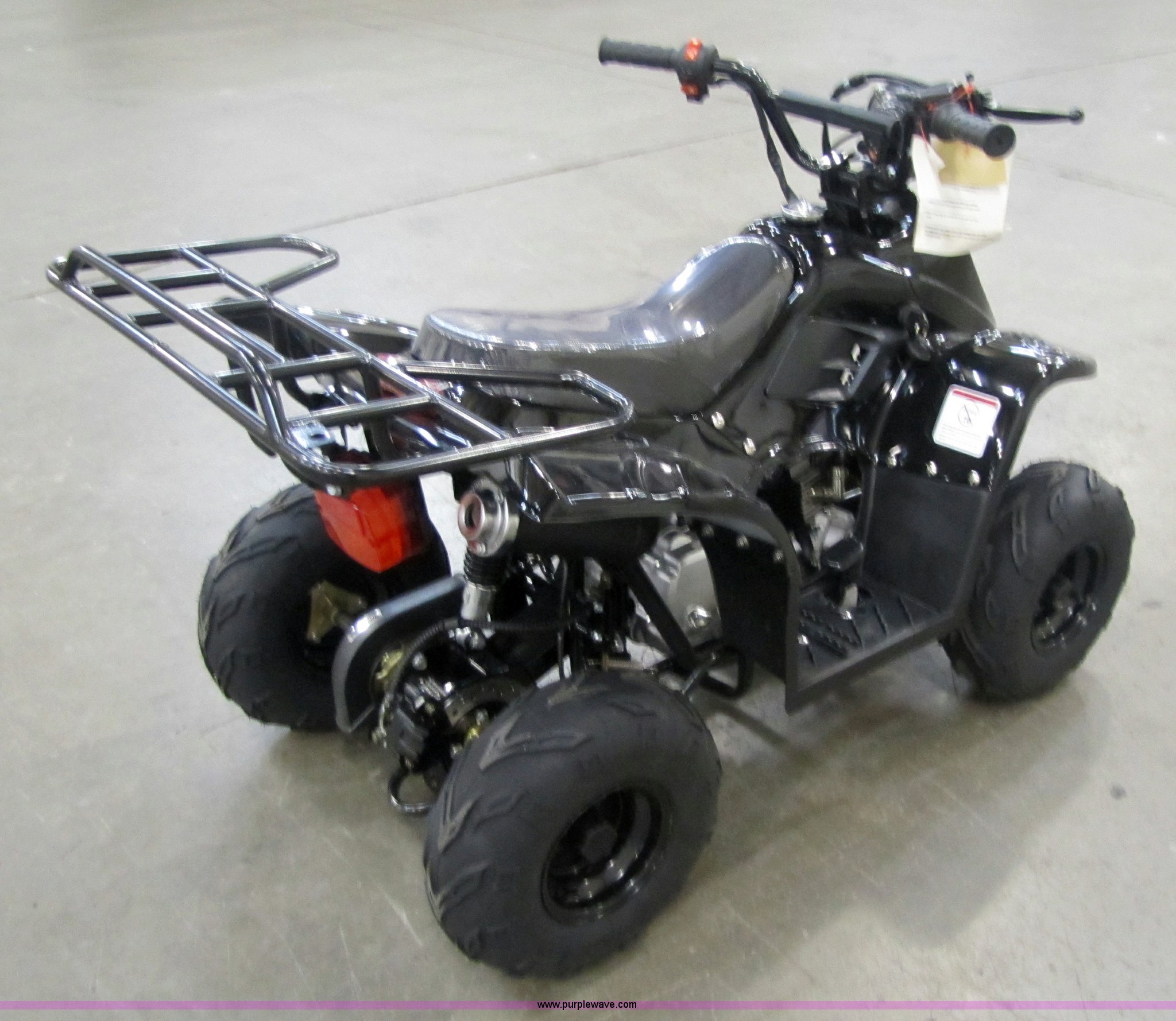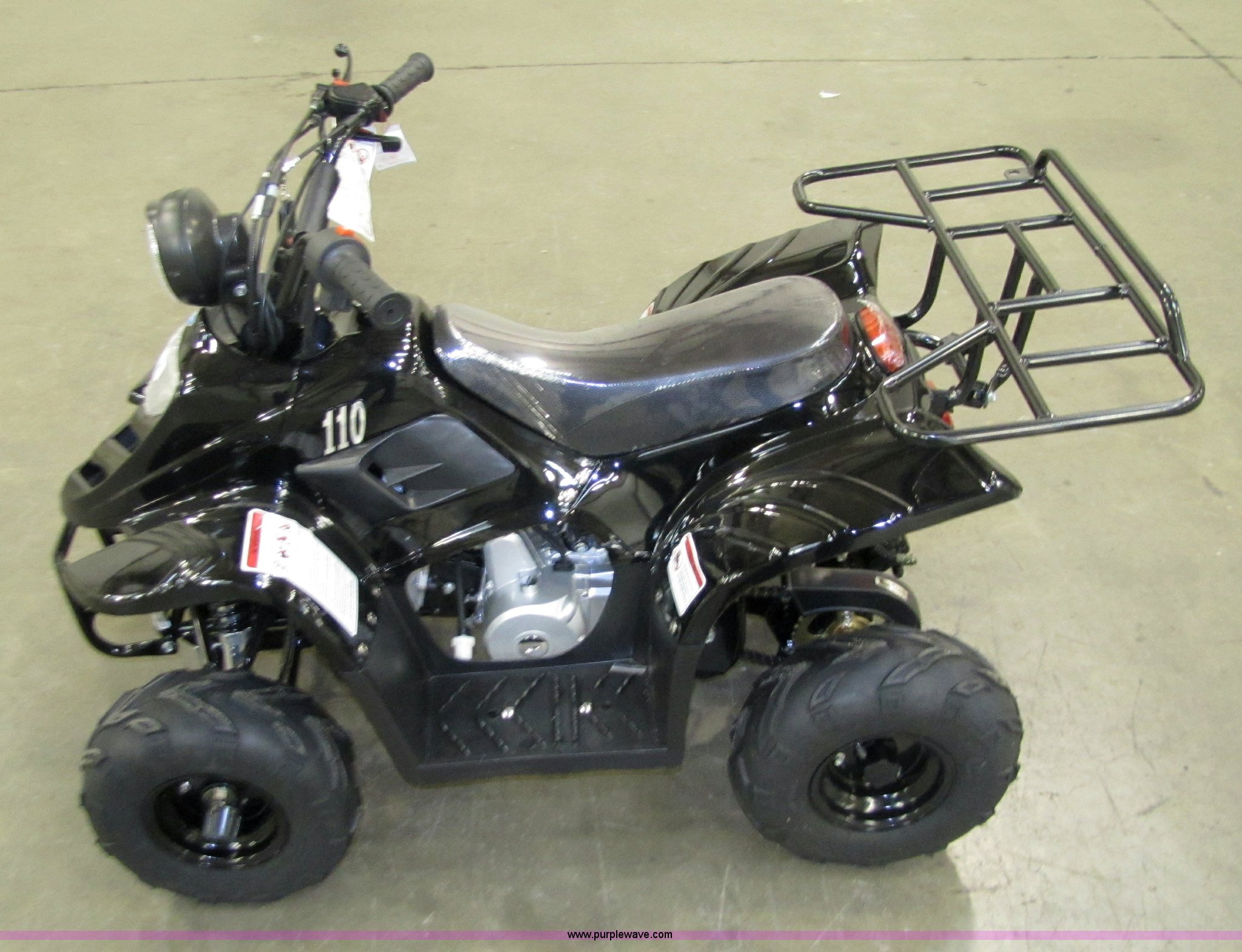 Purple Wave is selling a used ATV in Kansas. This item is a Tao Tao ATA110-B ATV with the following: 107cc four-stroke engine, Automatic transmission, Electric start, Remote control starter and kill switch, Air cooled, Gross weight 242 lbs, Overall size 45.7" x 28" x 33.3", Manufactured 2010-07, Black, Unit assembled and needs professional inspection before use, Seized