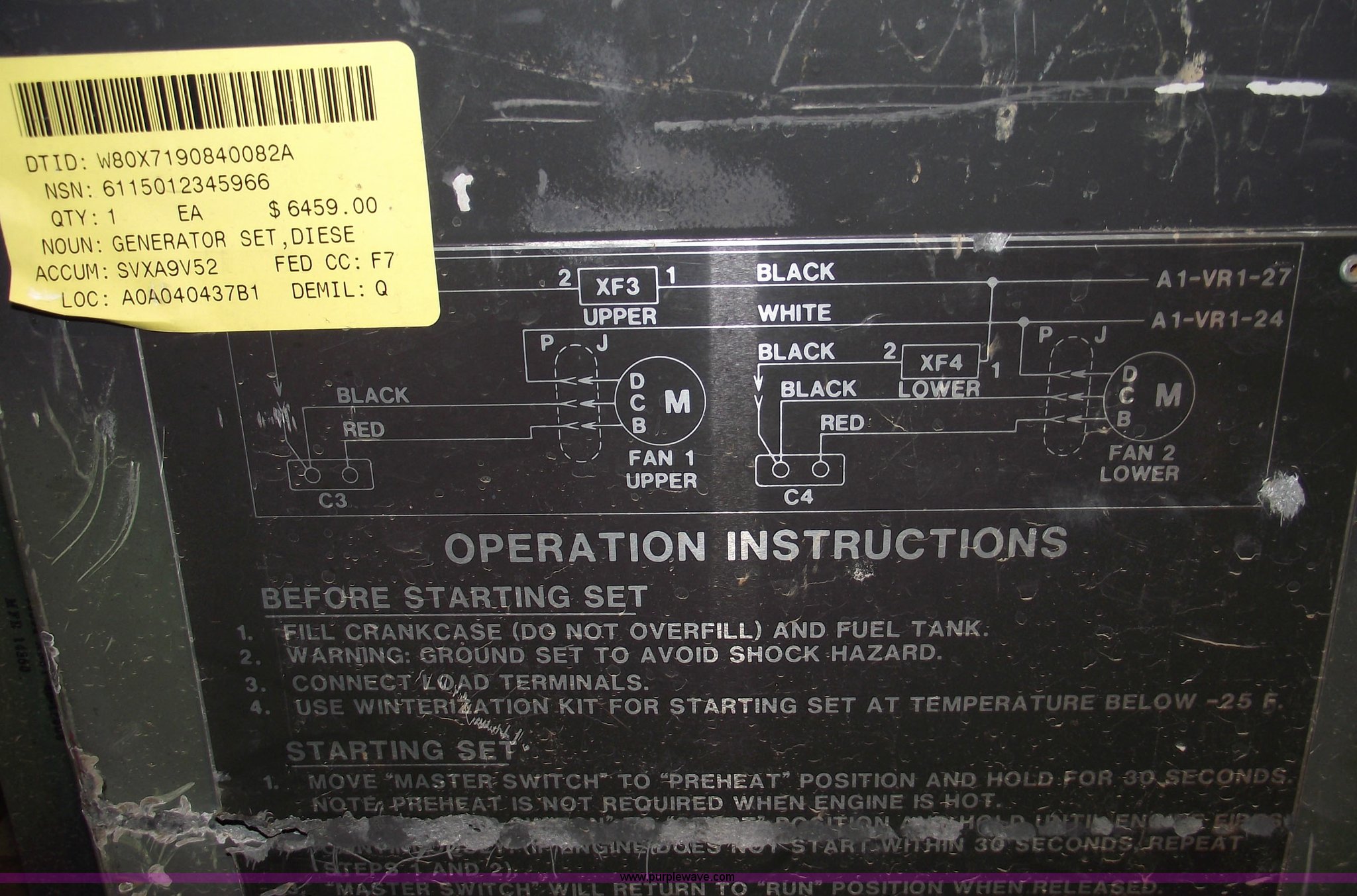 Take a look at this used Military diesel generator being sold on February 23rd, 2011 in the SOLD! February 23 Midwest Internet Auction. Take a look at all of the item information below or take a look at similar auctions for Generators and Light Plants.
