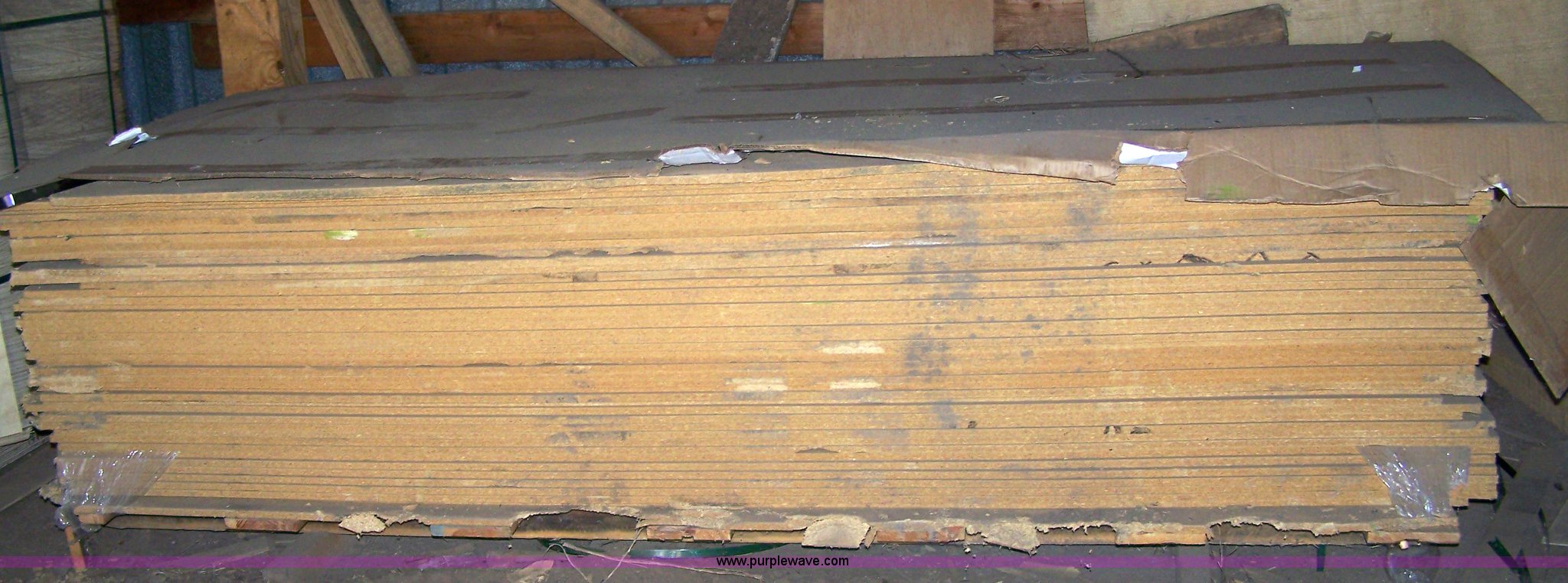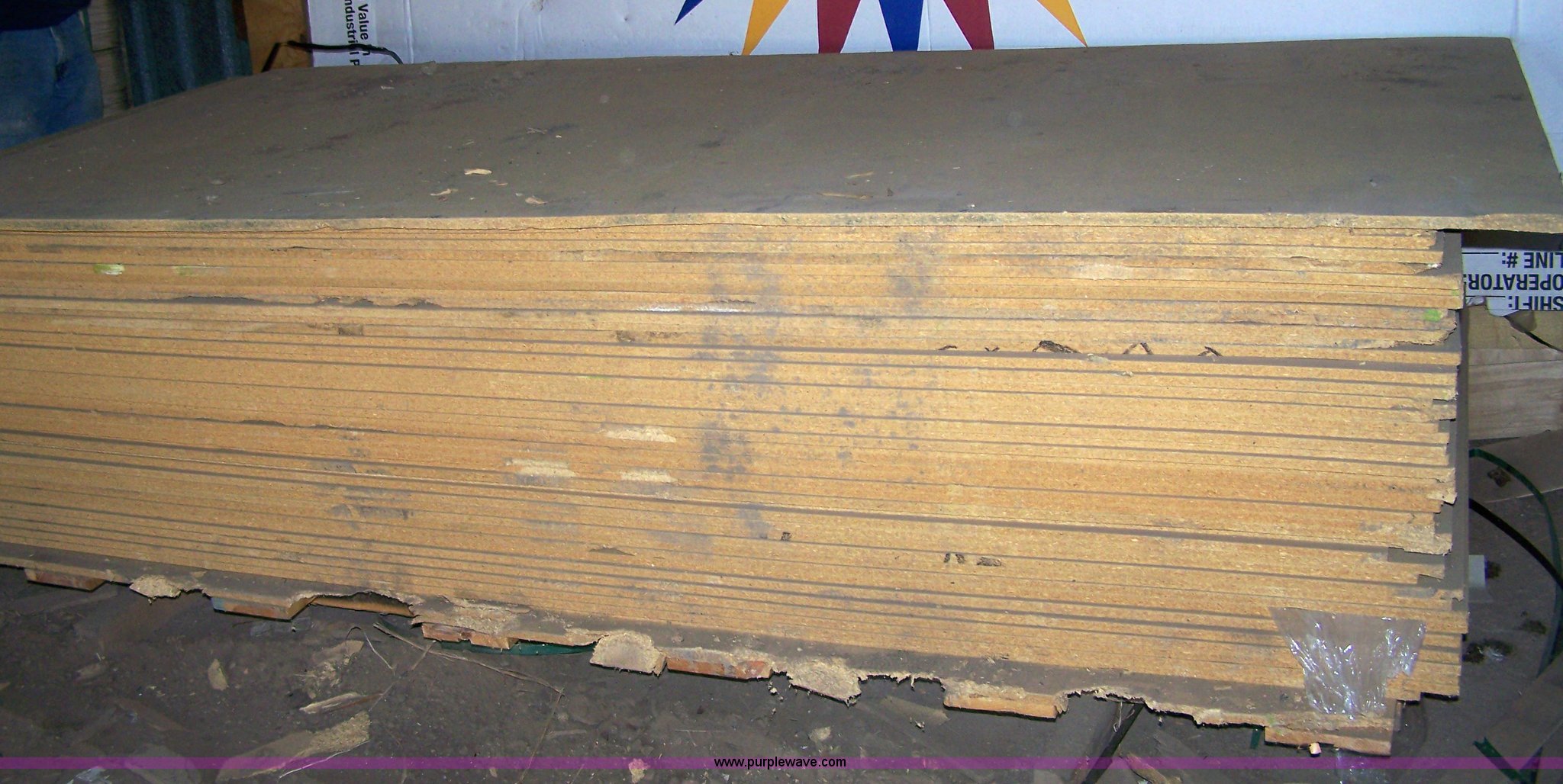 Purple Wave is selling a used Home Improvement in Kansas. This item is a 63 pieces of 1/2" x 49" x 97" particle board with the following: Some damage to corners and edges