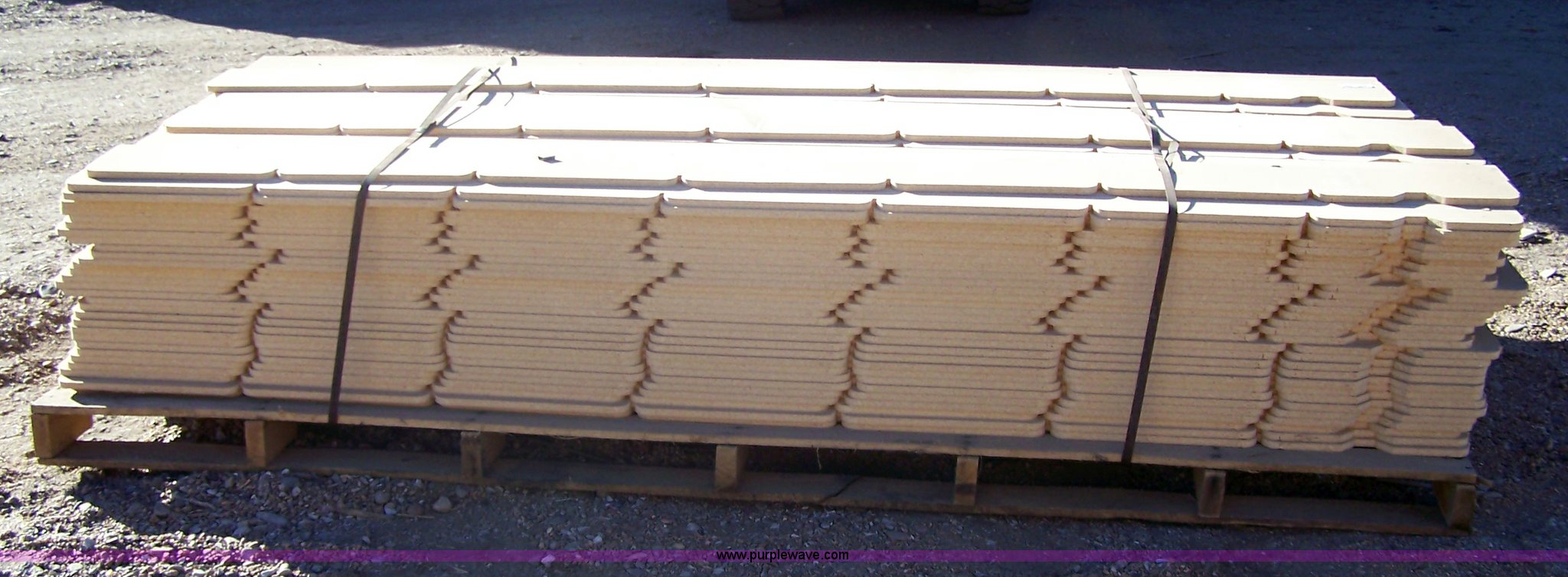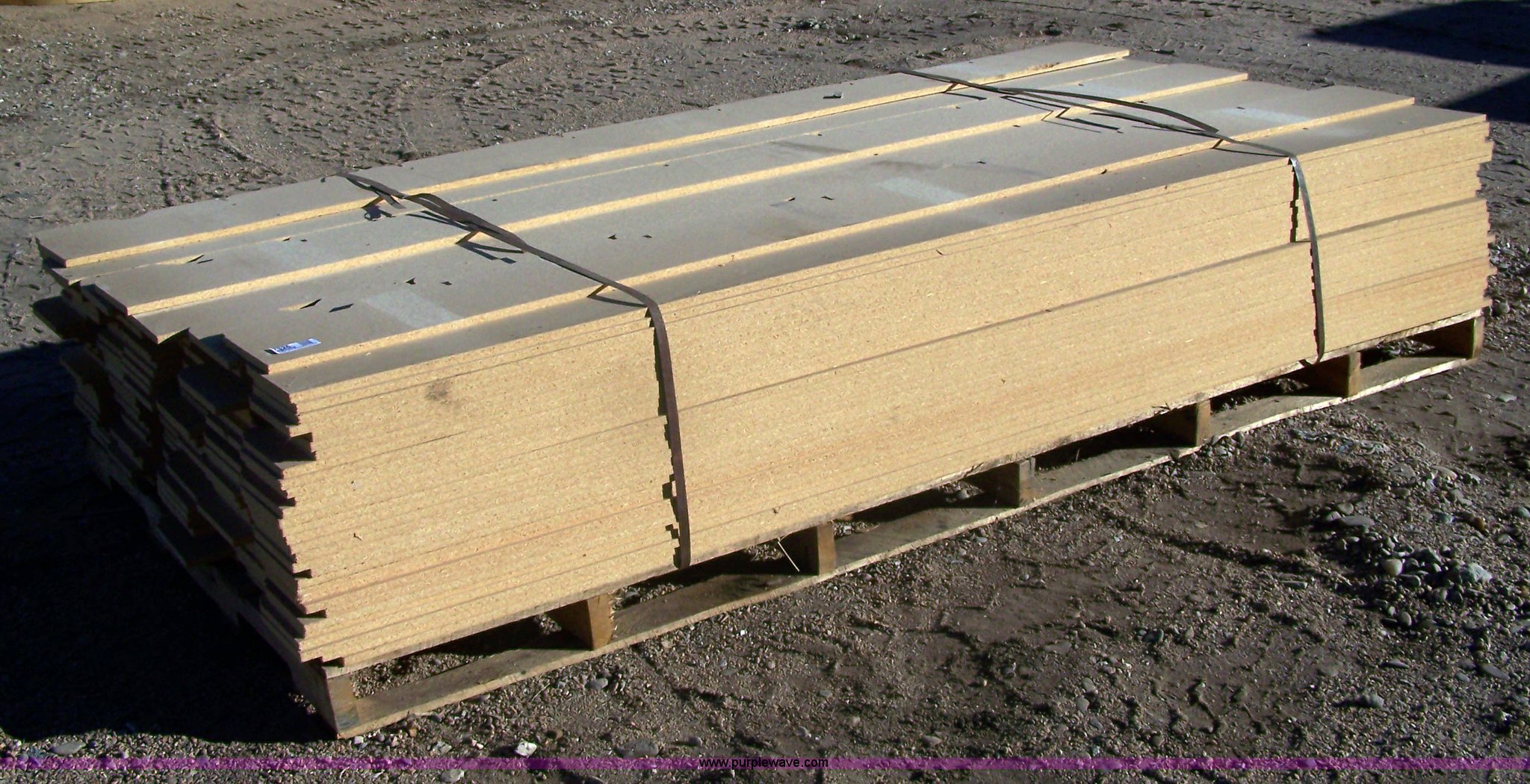 Purple Wave is selling a used Home Improvement in Kansas. This item is a 2,500 pieces of 7.25"W x 97"L x 1/2"thick particle board with the following: Drop strip, Not all pieces pictures