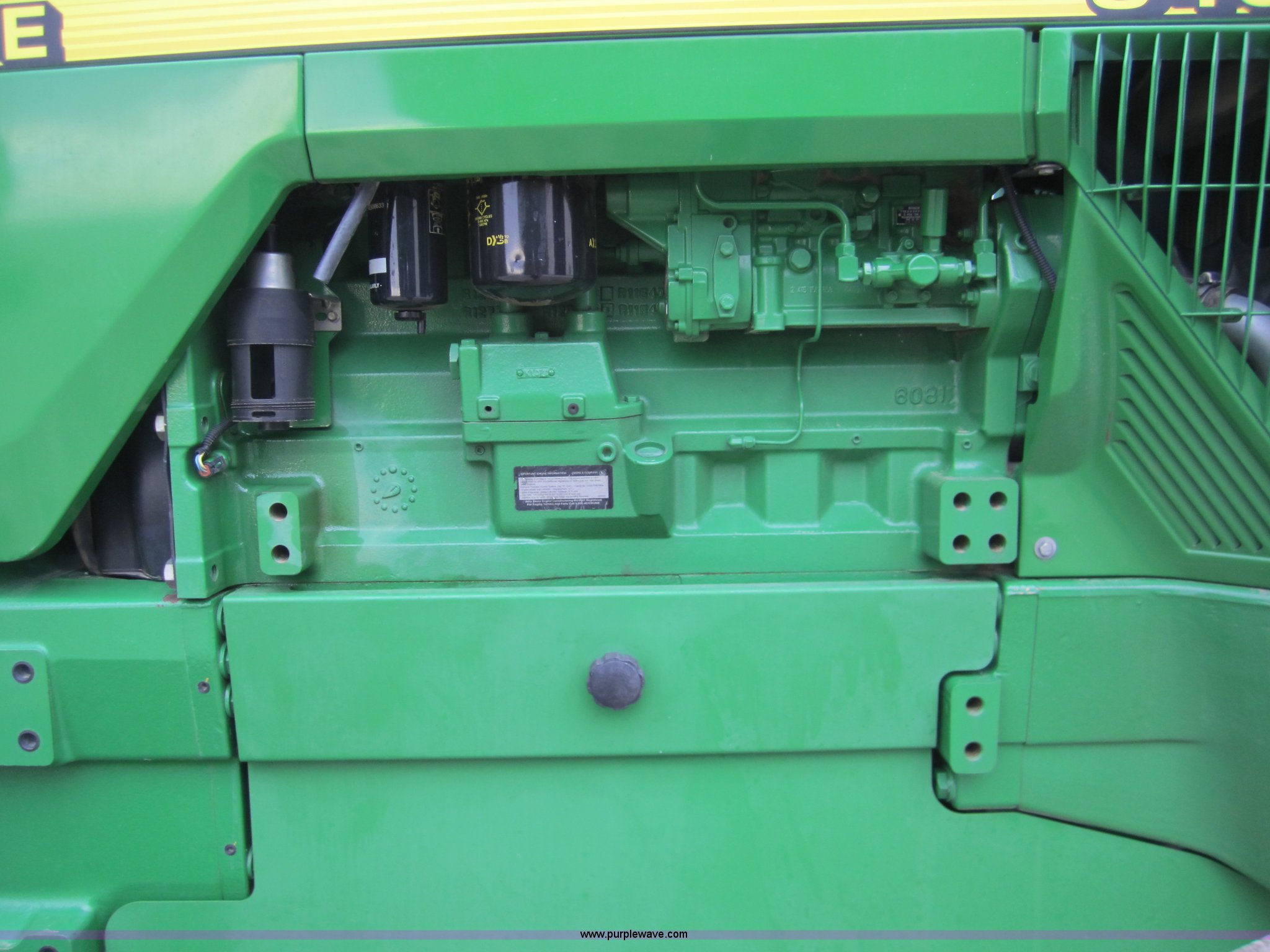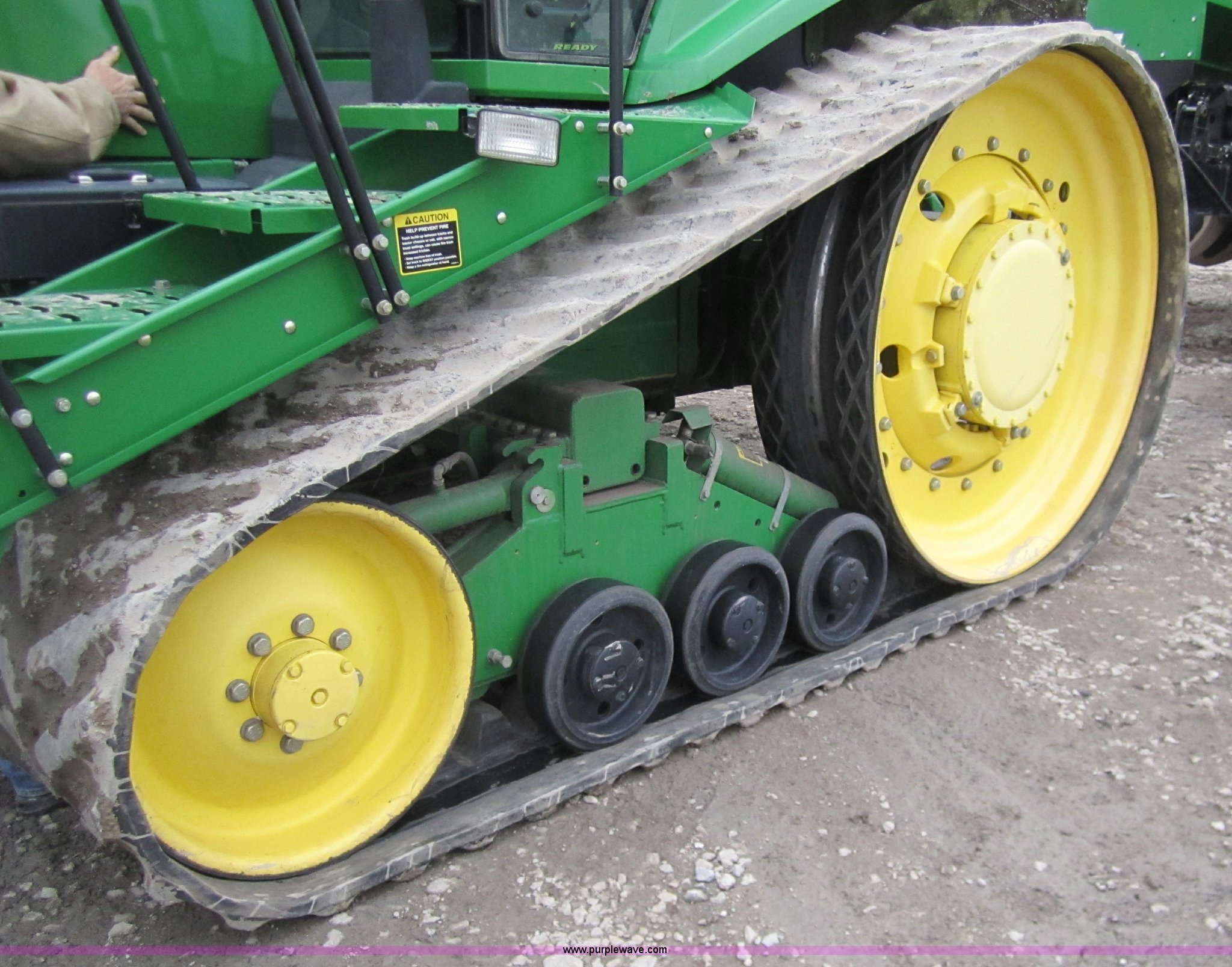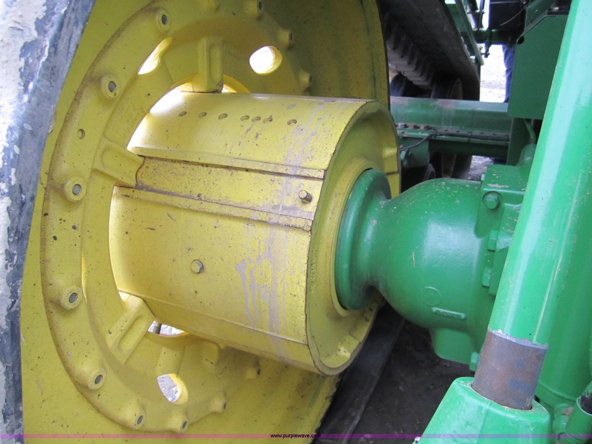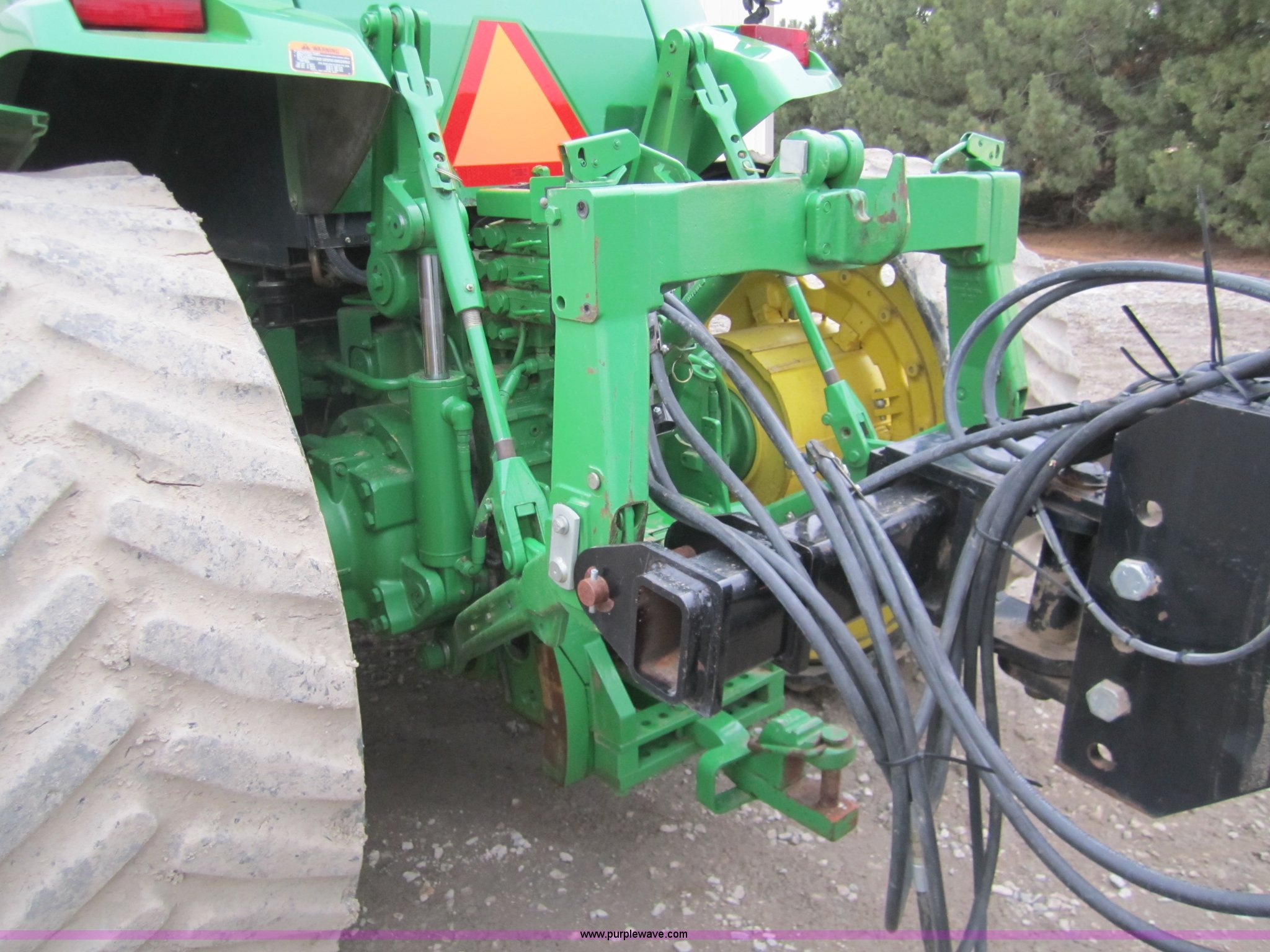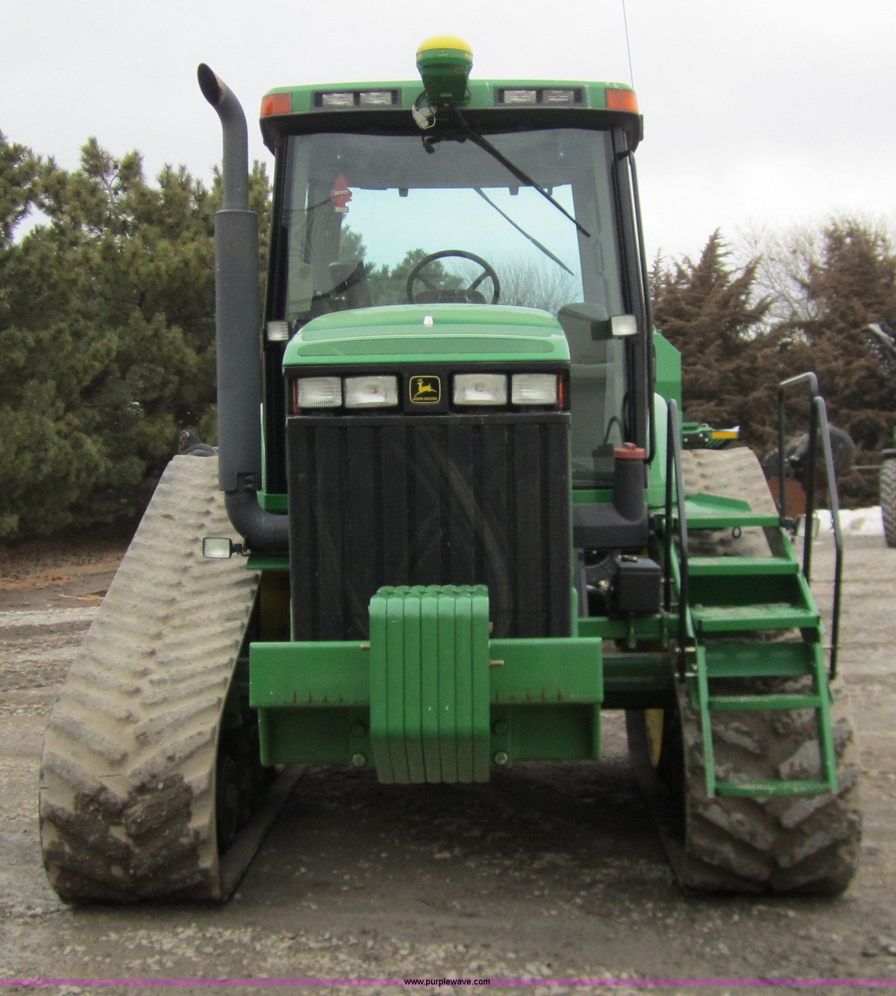 Purple Wave is selling a used Track Tractor in Kansas. This item is a 1997 John Deere 8400T track tractor with the following: 4,123 hours on meter, Six cylinder (496 CID) 360hp engine, Model 6081HRW03, Serial RG6081H41437, Powershift transmission, Air conditioning and heat, AM/FM radio, Instructors seat, Tilt steering wheel, Greenstar guidance system with Starfire iTC reciever, Three point with quick hitch, Drawbar, Large 1000 PTO, Three rear hydraulic remotes, Seven front suitcase weights, 24" wide tracks, 87" center to center track base, New Batteries, Serial ROAG8BT001260
