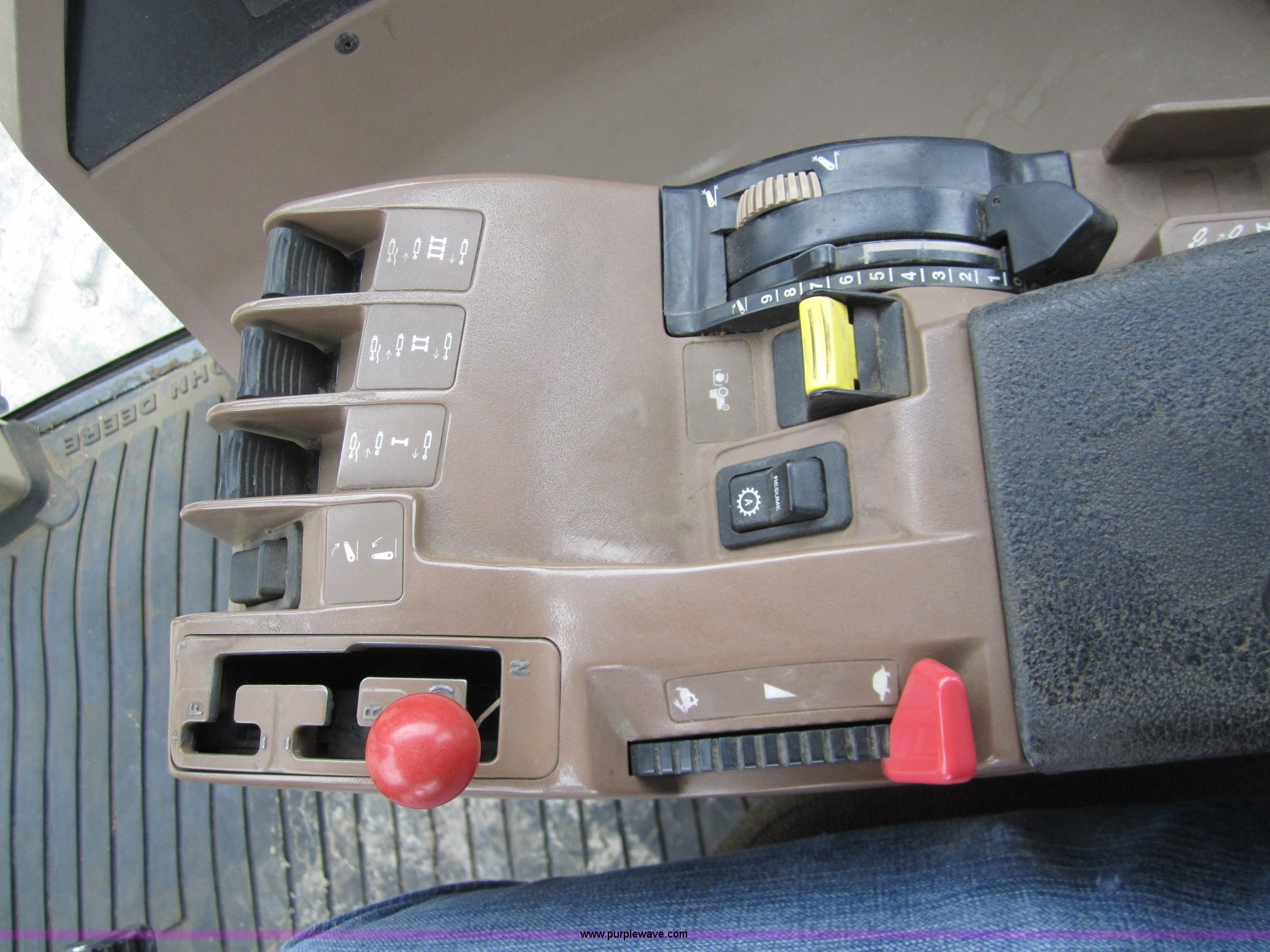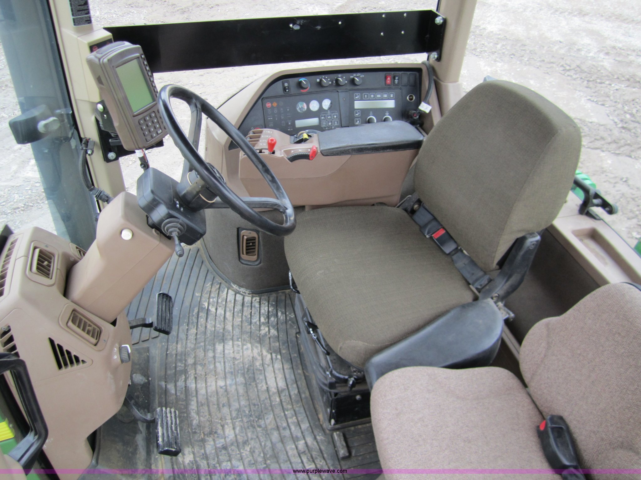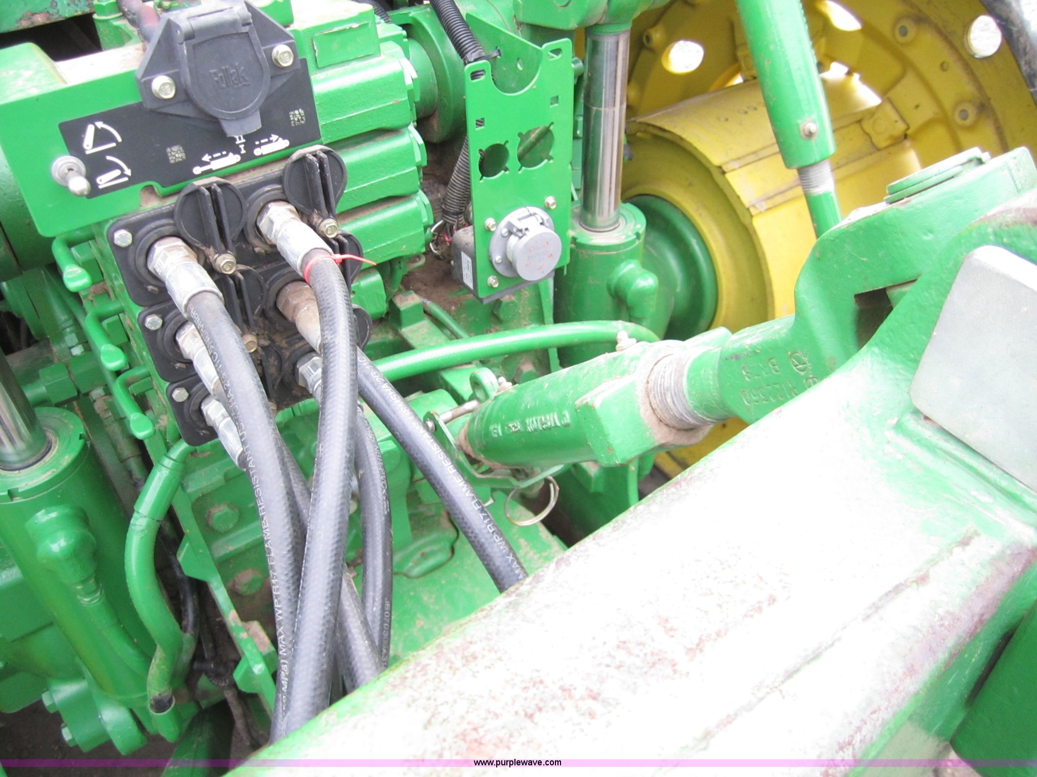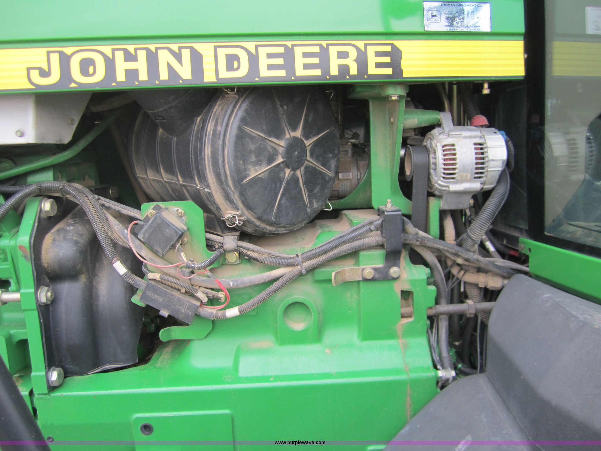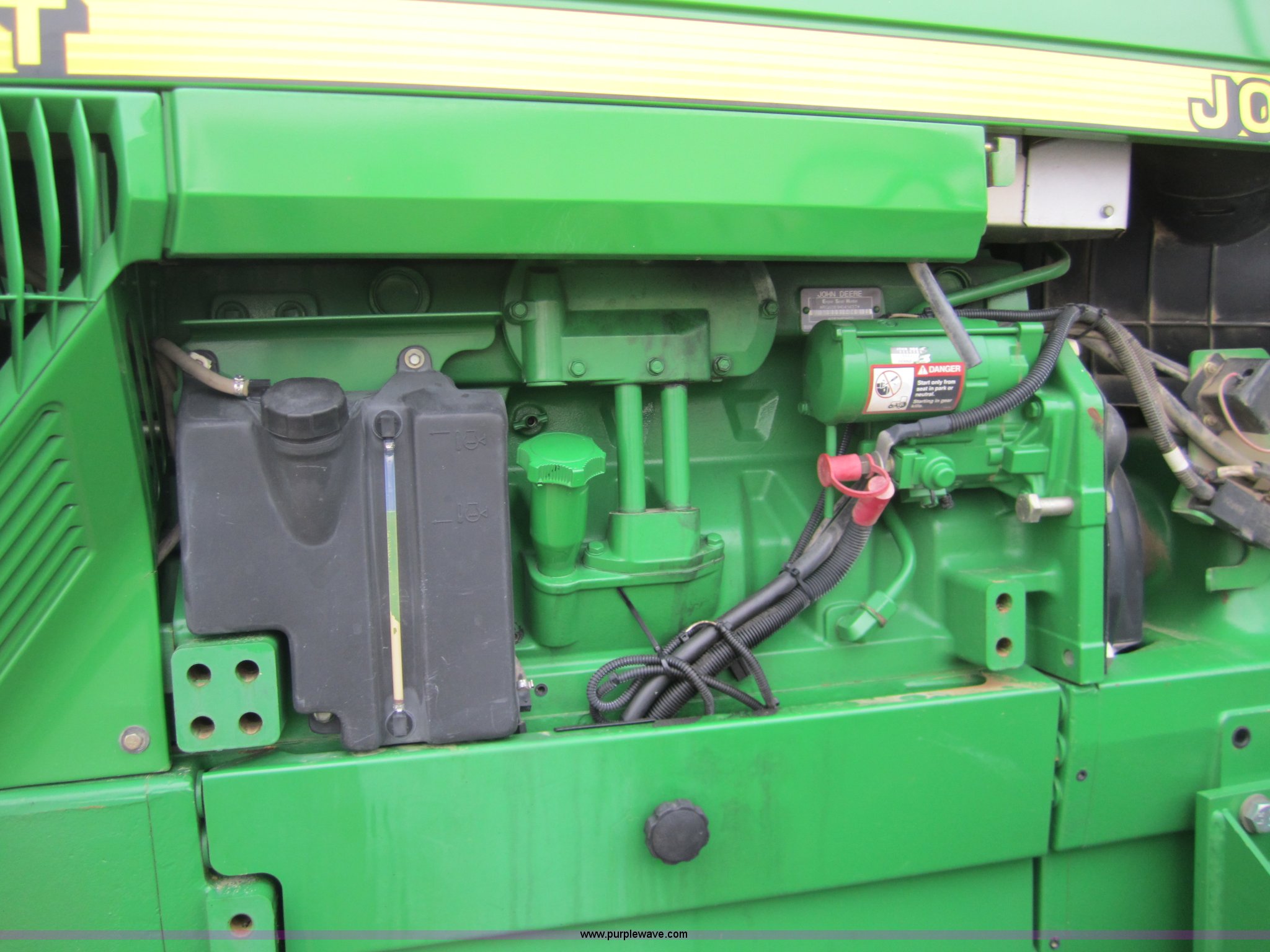Purple Wave is selling a used Track Tractor in Kansas. This item is a 1997 John Deere 8400T track tractor with the following: 4,123 hours on meter, Six cylinder (496 CID) 360hp engine, Model 6081HRW03, Serial RG6081H41437, Powershift transmission, Air conditioning and heat, AM/FM radio, Instructors seat, Tilt steering wheel, Greenstar guidance system with Starfire iTC reciever, Three point with quick hitch, Drawbar, Large 1000 PTO, Three rear hydraulic remotes, Seven front suitcase weights, 24" wide tracks, 87" center to center track base, New Batteries, Serial ROAG8BT001260
