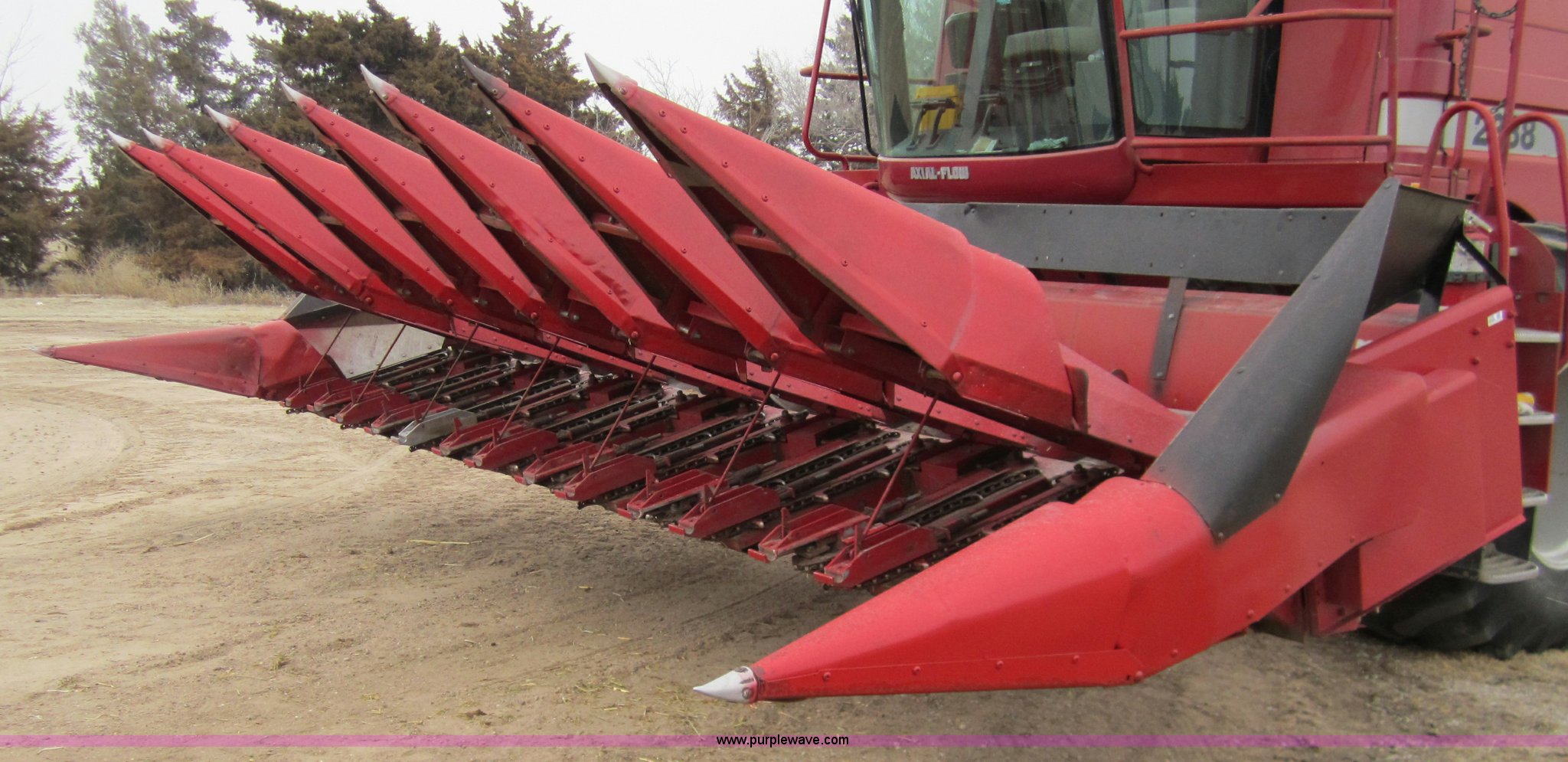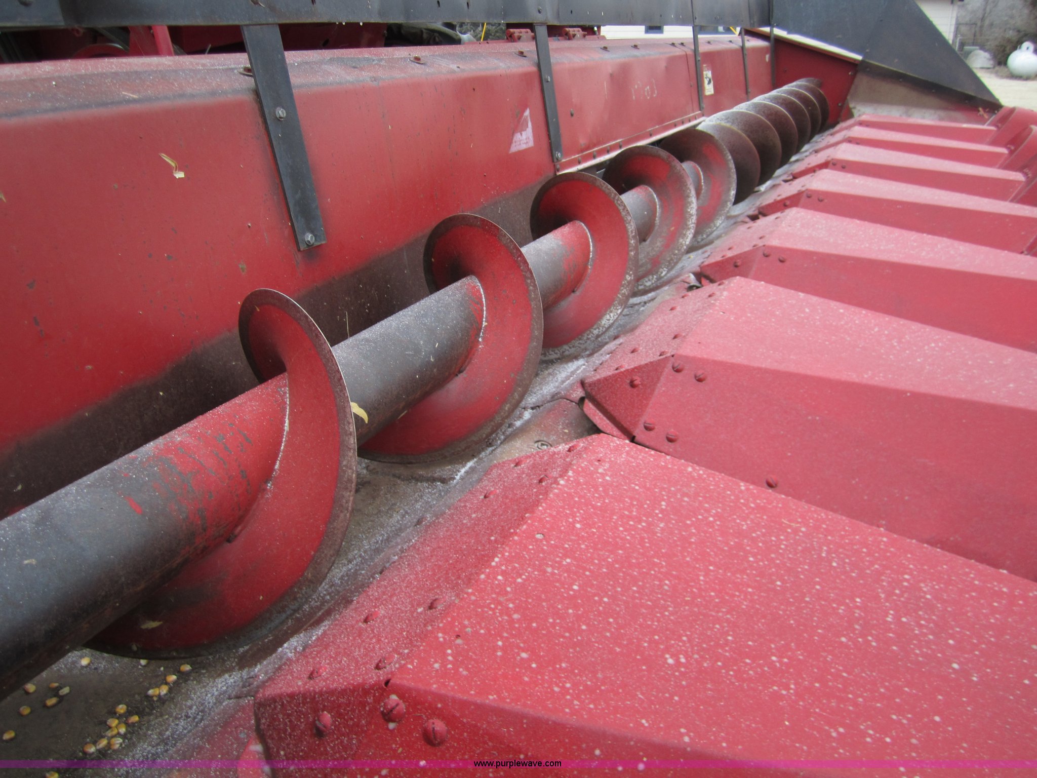 Purple Wave is selling a used Corn or Row Head in Kansas. This item is a 1989 Case 1083 eight row corn head with the following: 30" spacings, Chains replaced before 2010 season, Several stalk rolls recently replaced, Serial JJC0069384