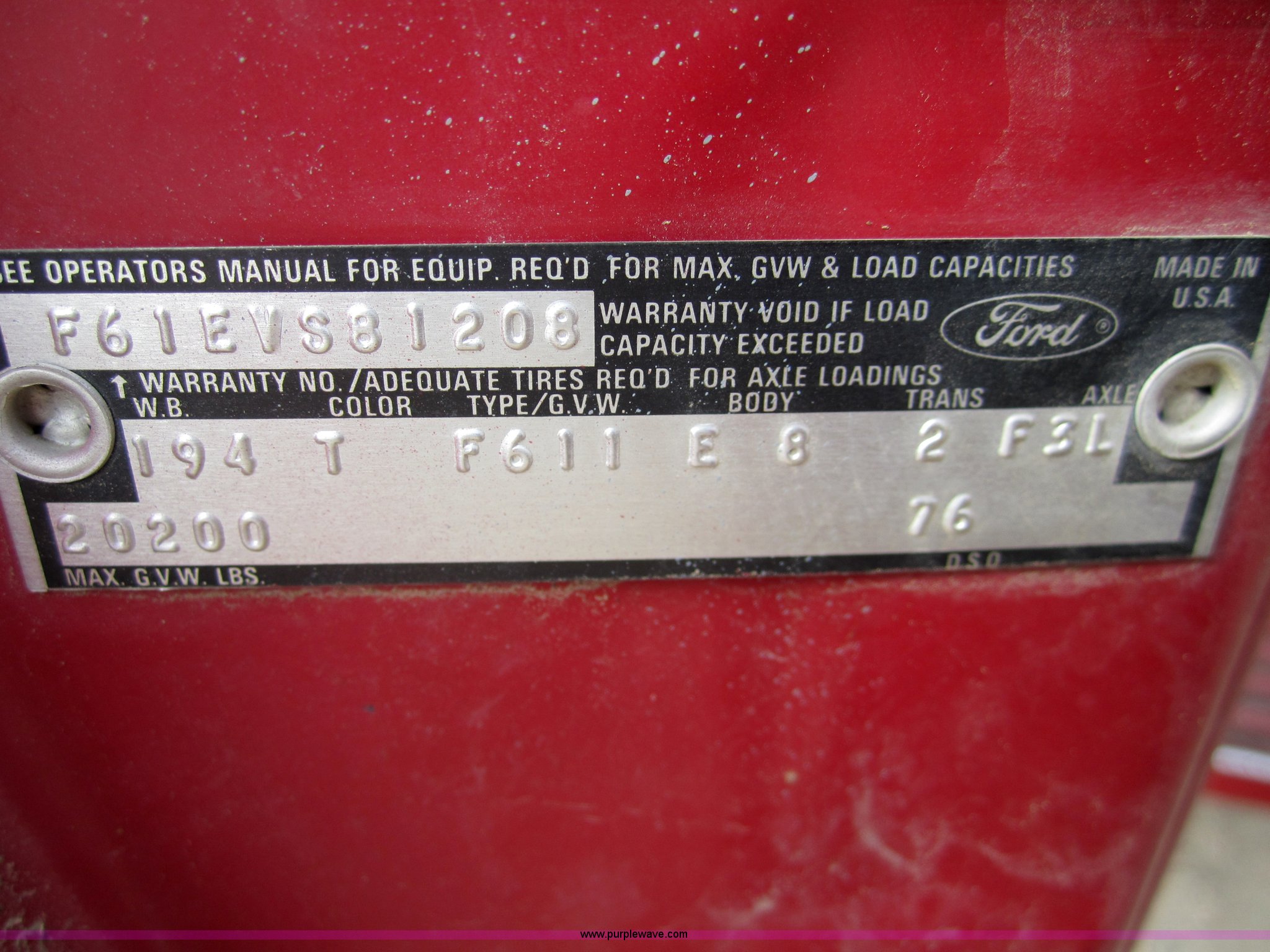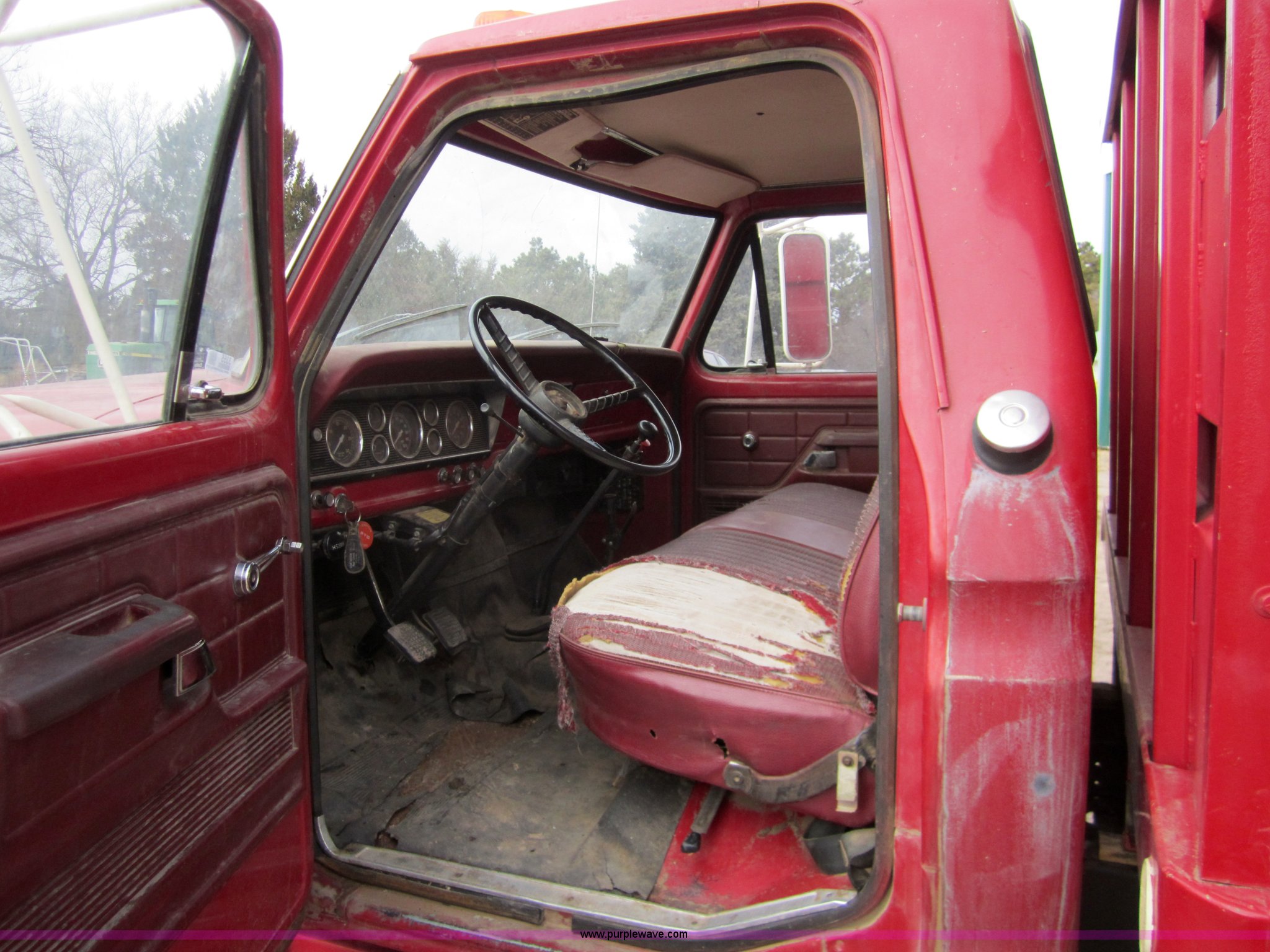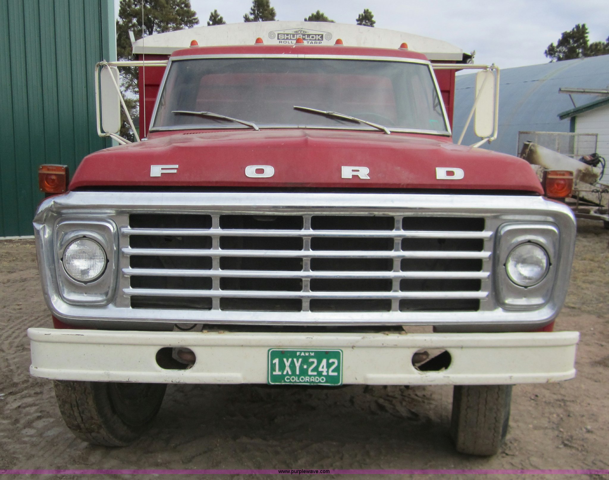 Purple Wave is selling a used Grain Truck in Colorado. This item is a 1974 Ford F600 grain truck with the following: 53,936 miles on odometer, Ford 361 gas engine, Five speed manual transmission with Hi-Low axle, 16' bed, Roll over tarp, Wood floor, Single axle, 9.00 - 20 tires