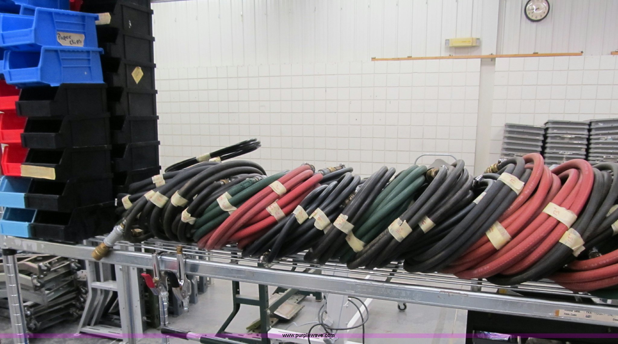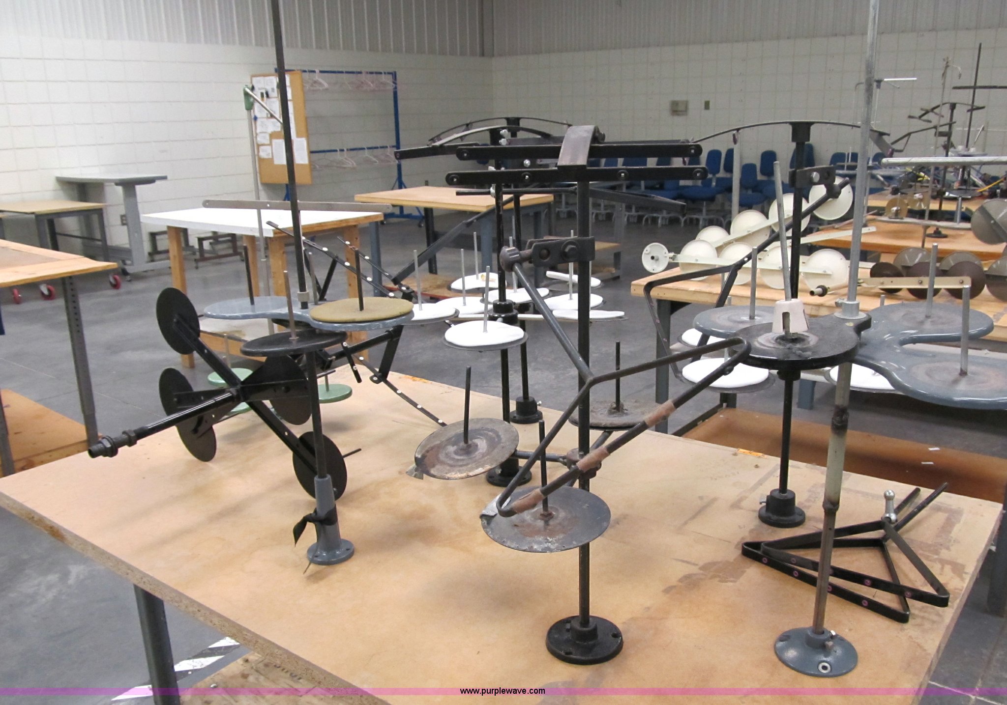 Purple Wave is selling a used Tools in Iowa. This item is a Miscellaneous items with the following: Pace Setter printer, (2) can of air hoses approx 72, (17) brooms in plastic can, Approx (42) plastic dust pans, Approx (32) extension cords, Assorted screw drivers, Parts bins with assorted sewing machine parts, Approx (34) air hoses, Stand not included, (2) office phones, Assorted bins, Office tape roller dispensers, Approx (20) clipboards, Approx (154) plastic tubs, Office lights, Sewing stands, Approx (30) tables, Approx (30) padded chairs, (5) tables with sewing equipment, Assorted plastic garbage cans