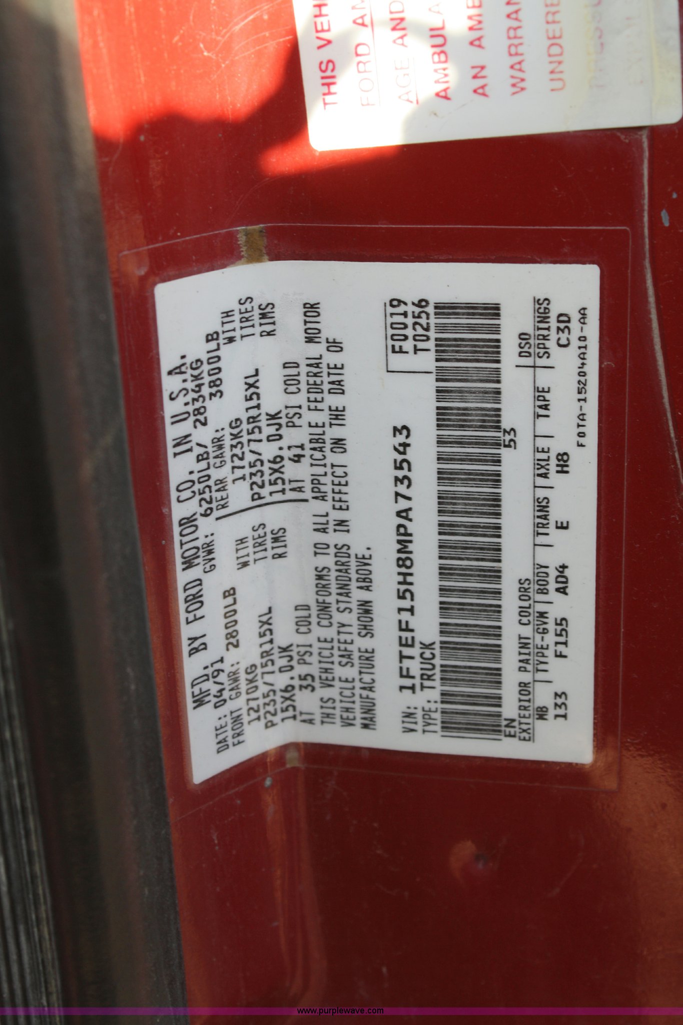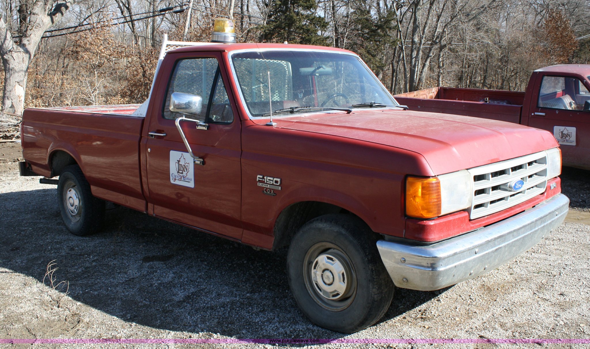 Purple Wave is selling a used Passenger Vehicle in Kansas. This item is a 1991 Ford F150 Custom pickup truck with the following: 73,105 miles on odometer, 5.8L V8 EFI gas engine, Automatic transmission, Two wheel drive, AC and heat, AM/FM/Cassette, Manual windows and locks, Pickup bed, 235/75R15 tires, Small windshield crack