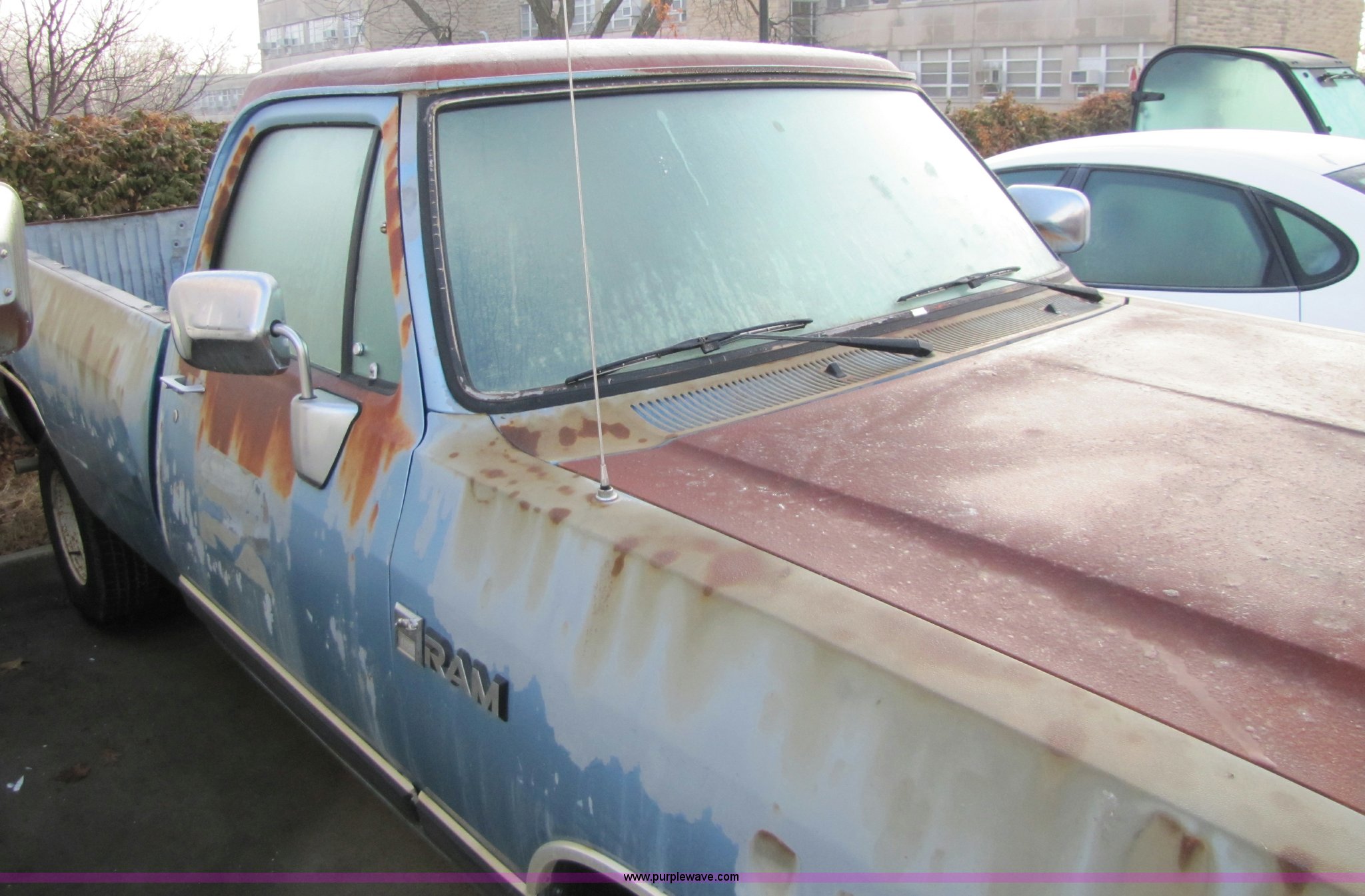 Purple Wave is selling a used Passenger Vehicle in Kansas. This item is a 1988 Dodge Ram D-100 pickup truck with the following: 126,281 miles on odometer, 3.9L V6 TBI gas engine, Automatic transmission, Heat, AM/FM, Manual windows and locks, Rust and body damage, Uses fluids, Motor mounts broken, Will need to be towed, Cracked frame, Steering problems