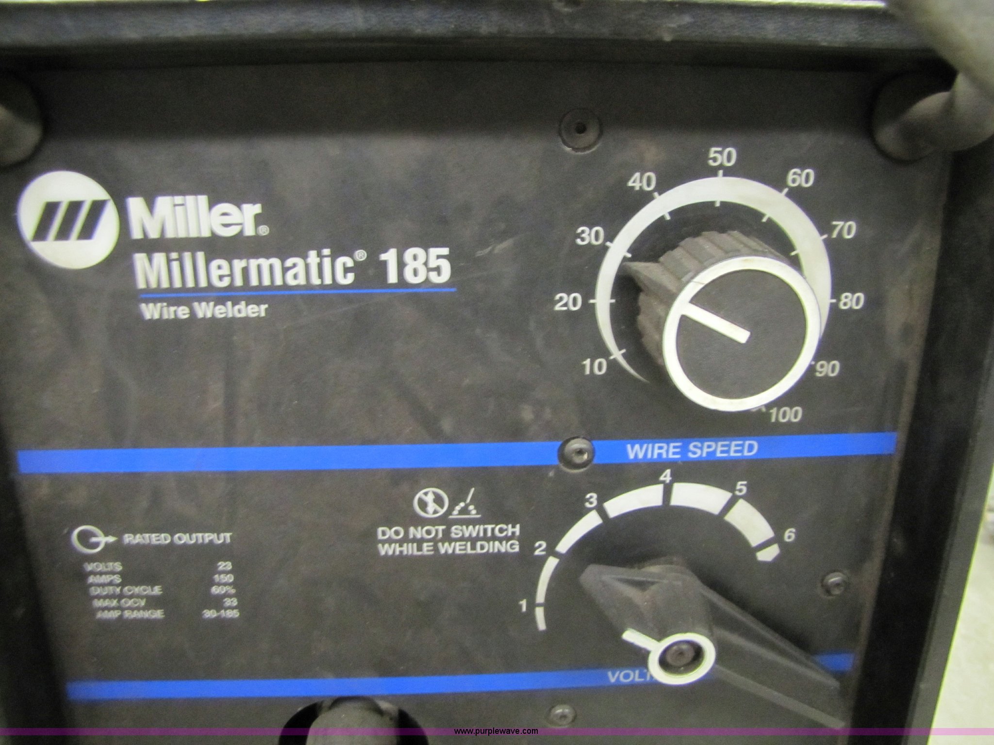 Purple Wave is selling a used Welder (Manual) in Kansas. This item is a Miller Millermatic 185 wire welder with the following: 150 amps, 60% duty cycle, 33 max OCV, 30 to 185 amp range, 230 volts, Serial LA284085