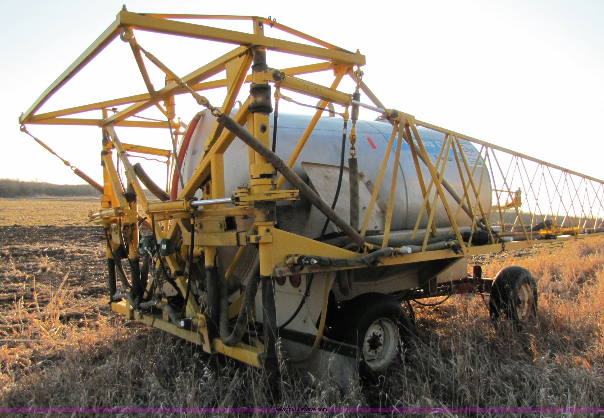 Purple Wave is selling a used Applicator Attach. in Kansas. This item is a Sprayer with 65' boom with the following: 1,600 gallon stainless steel tank, Hydraulic fold, Air shut off, 30" spacing, Removed from Mertz sprayer, Tank has been welded, no leaks at welds, Tank has small hole, Sprayer tips not included, Trailer not included