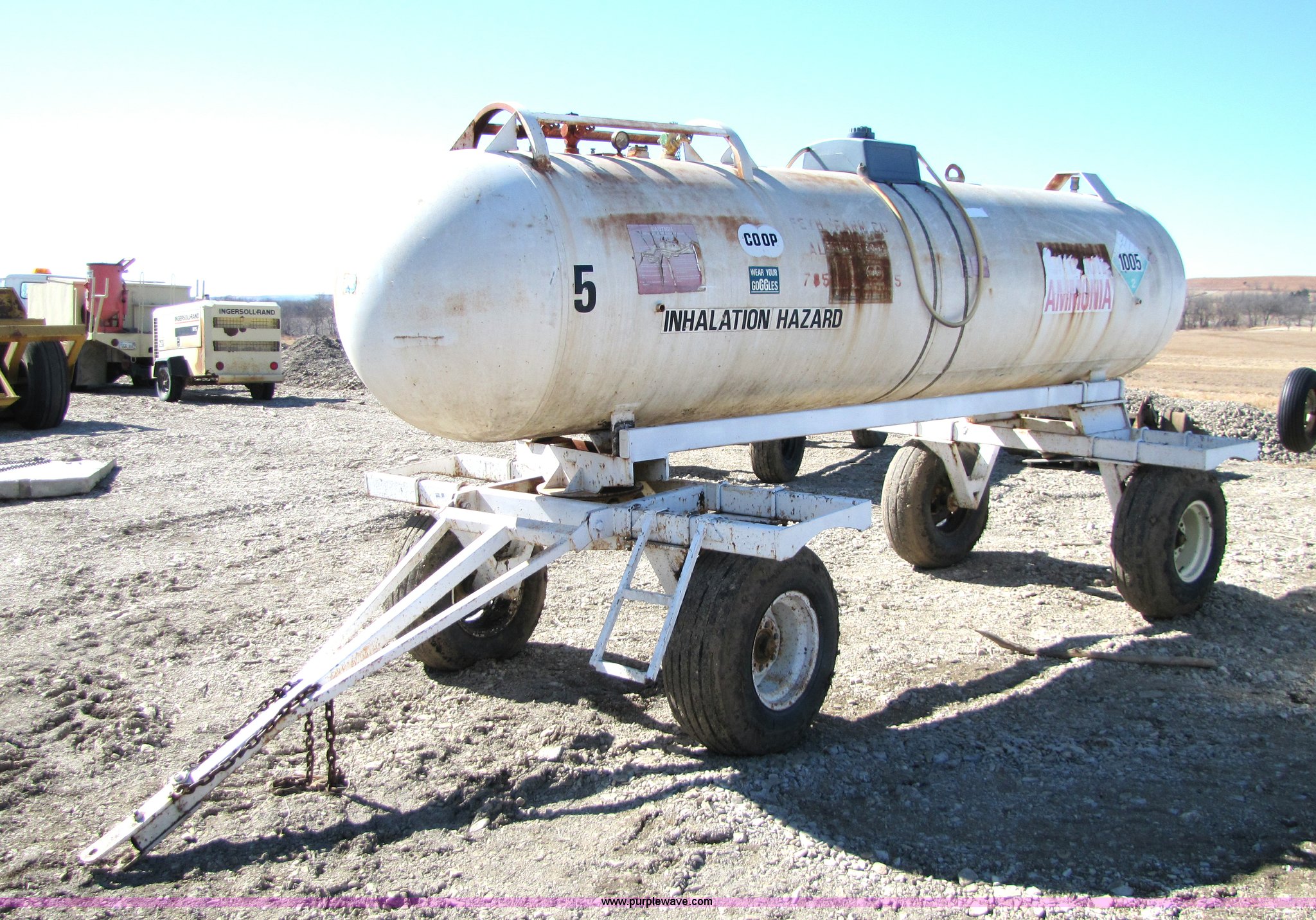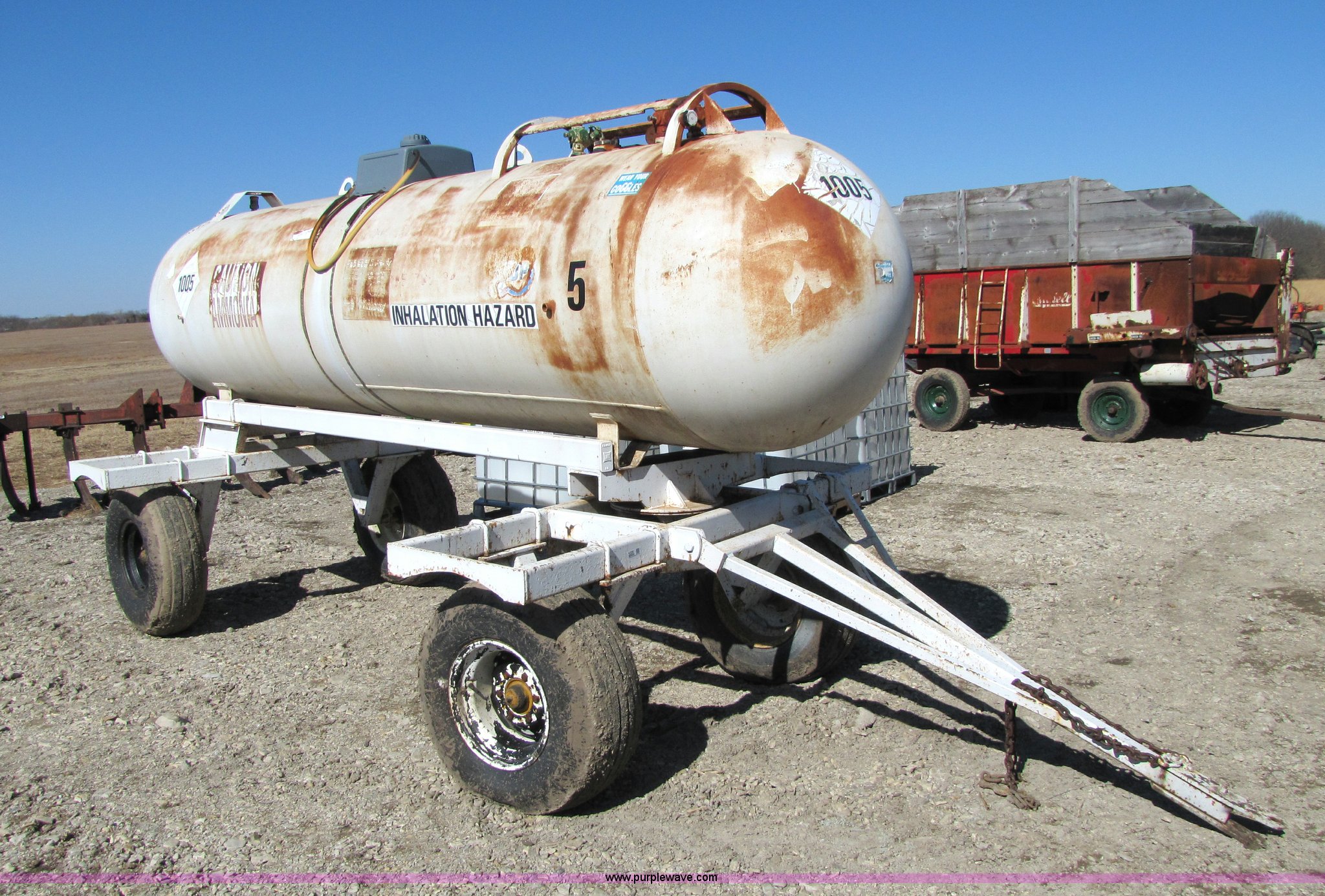 This Hamby 1,000 gallon anhydrous tank on trailer will sell to the highest bidder regardless of price.