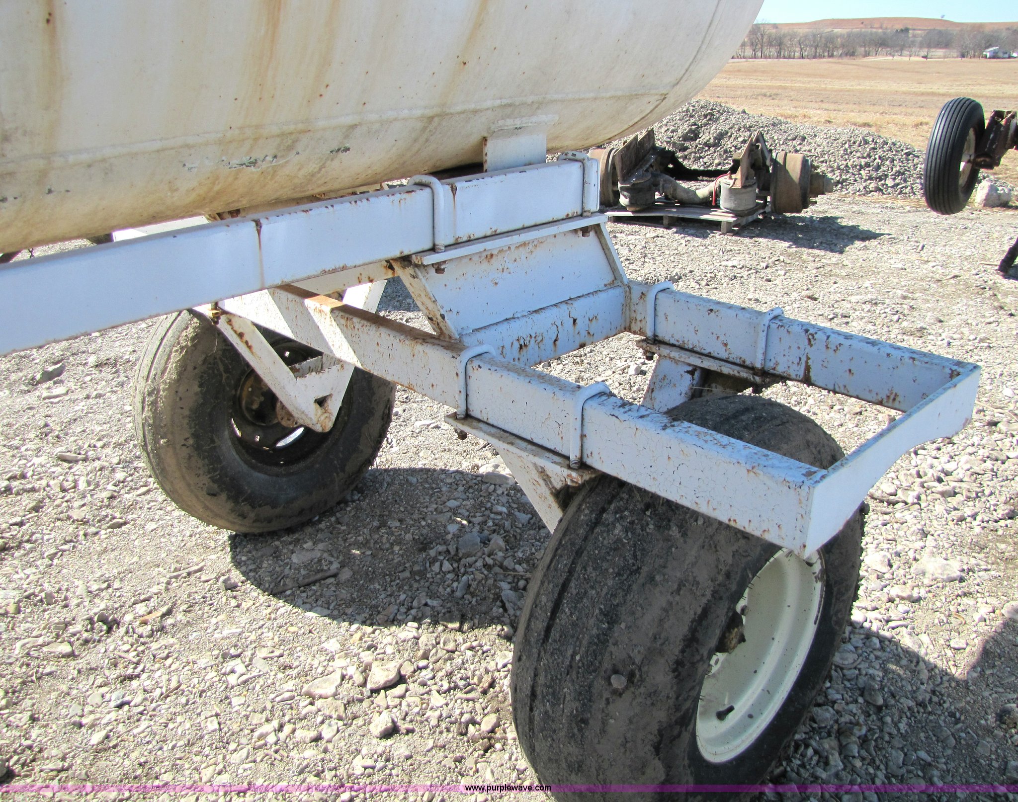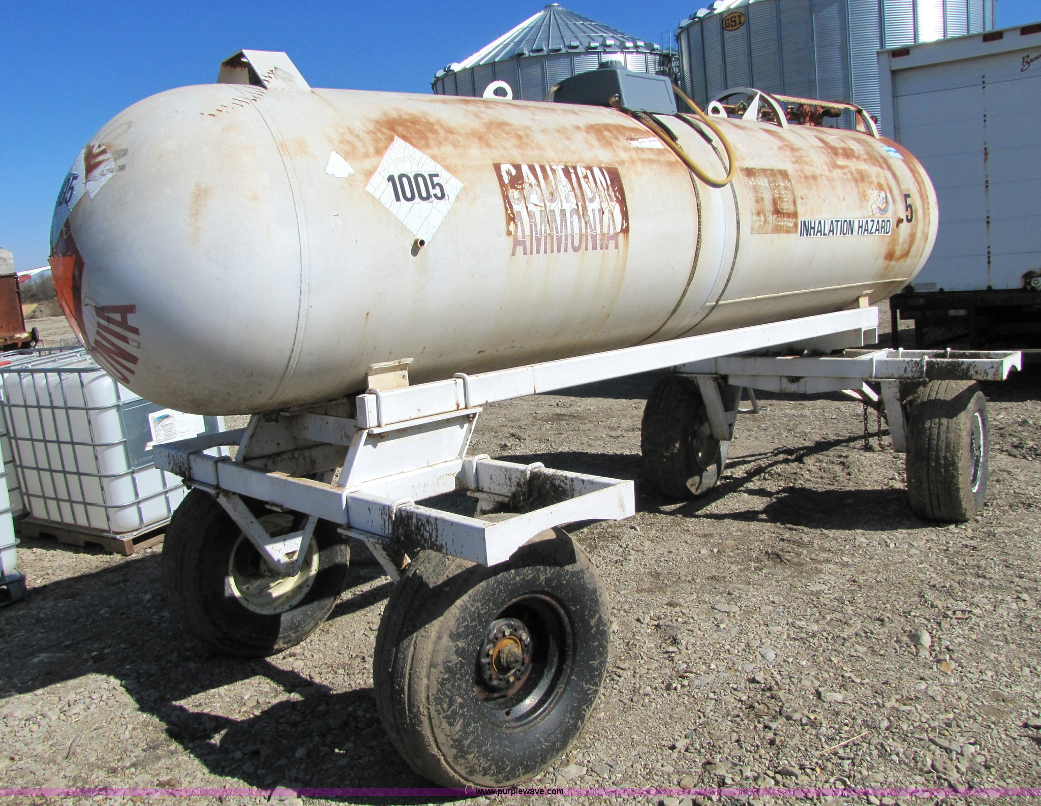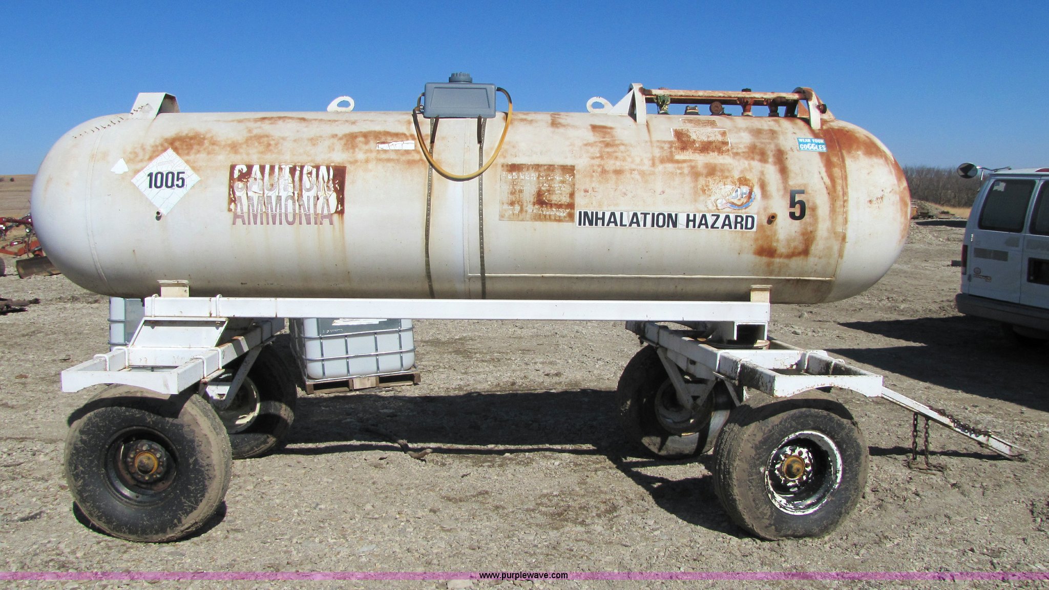 Purple Wave is selling a used Applicator Attach. in Kansas. This item is a Hamby 1,000 gallon anhydrous tank on trailer with the following: Pin hitch, 12.5L-15 tires