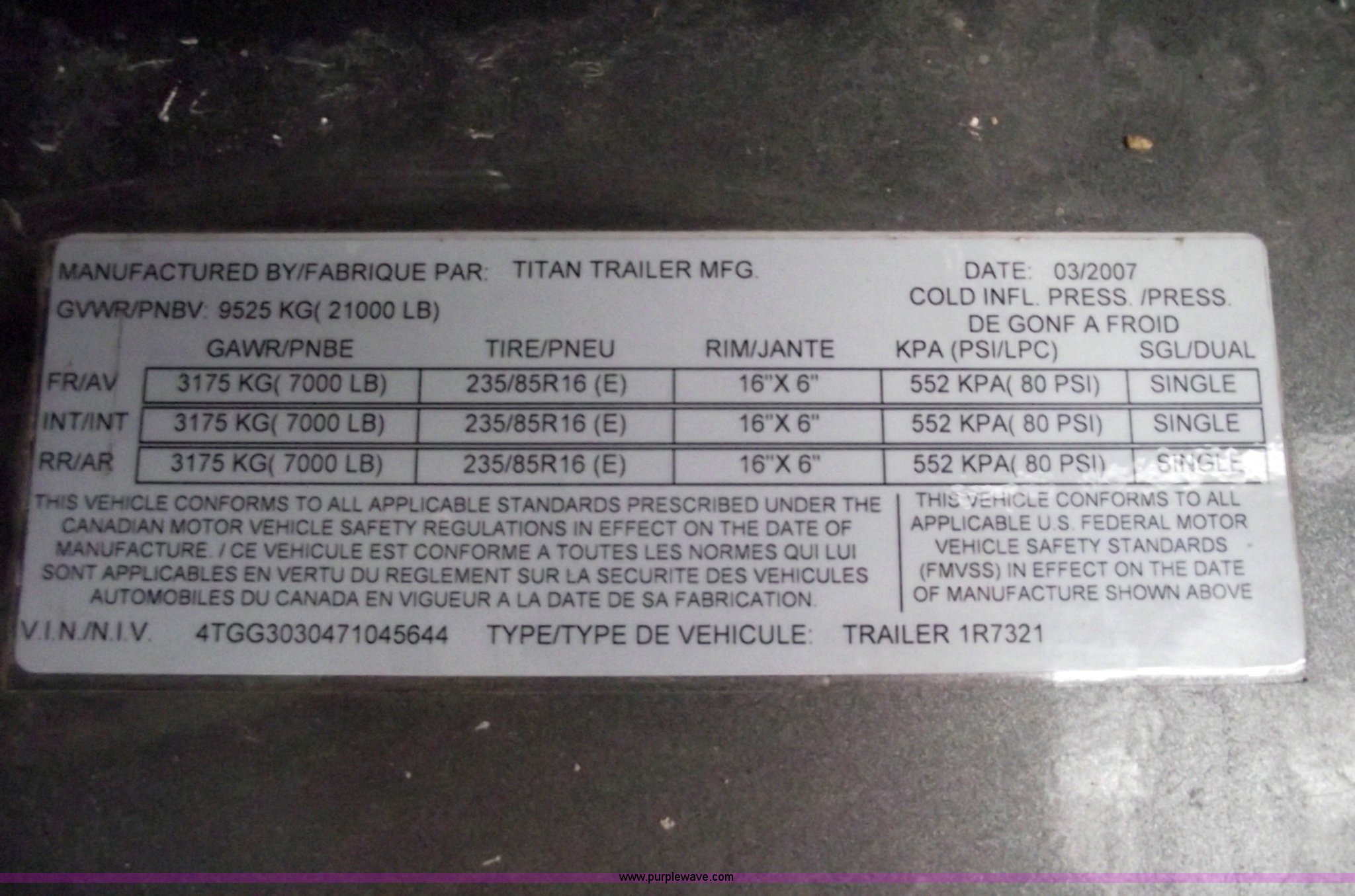 Take a look at this used 2007 Titan triple axle stock trailer being sold on March 9th, 2011 in the SOLD! March 9 Ag Equipment Internet Auction made by Titan. Take a look at all of the item information below or take a look at similar auctions for Ag Trailers.