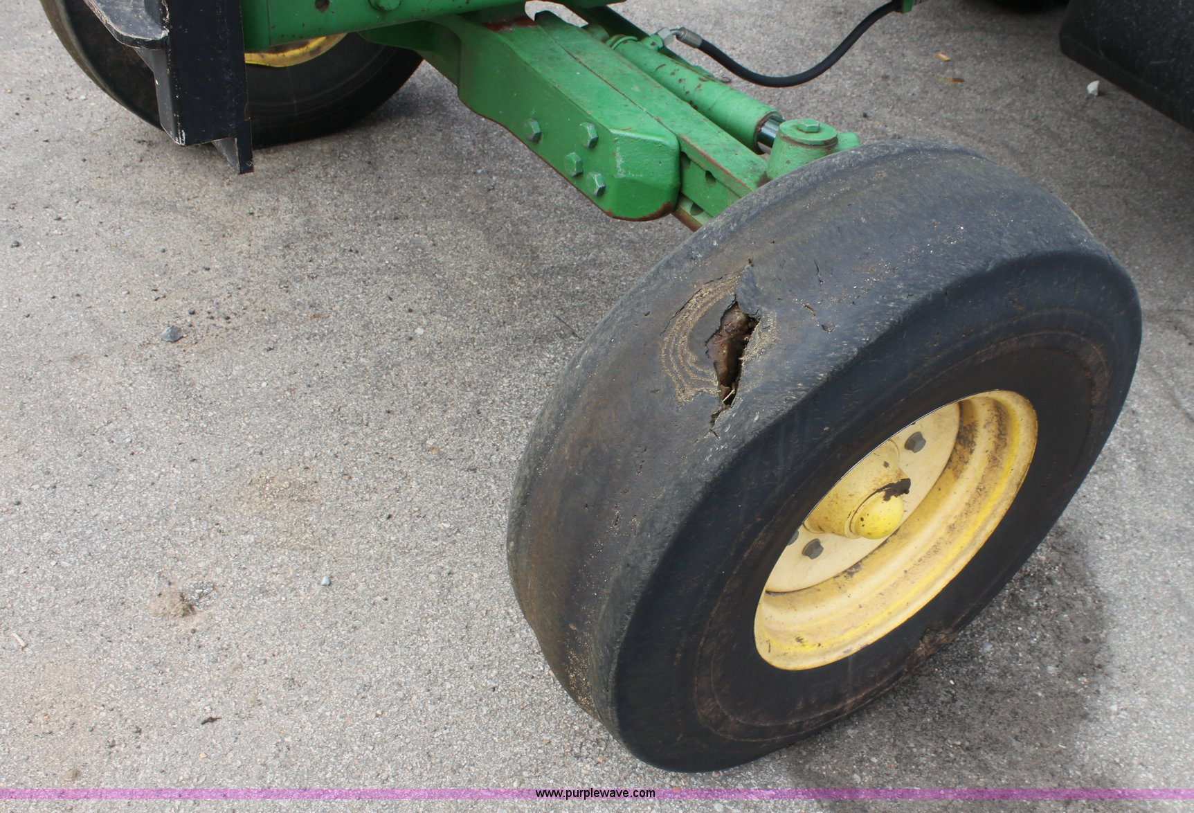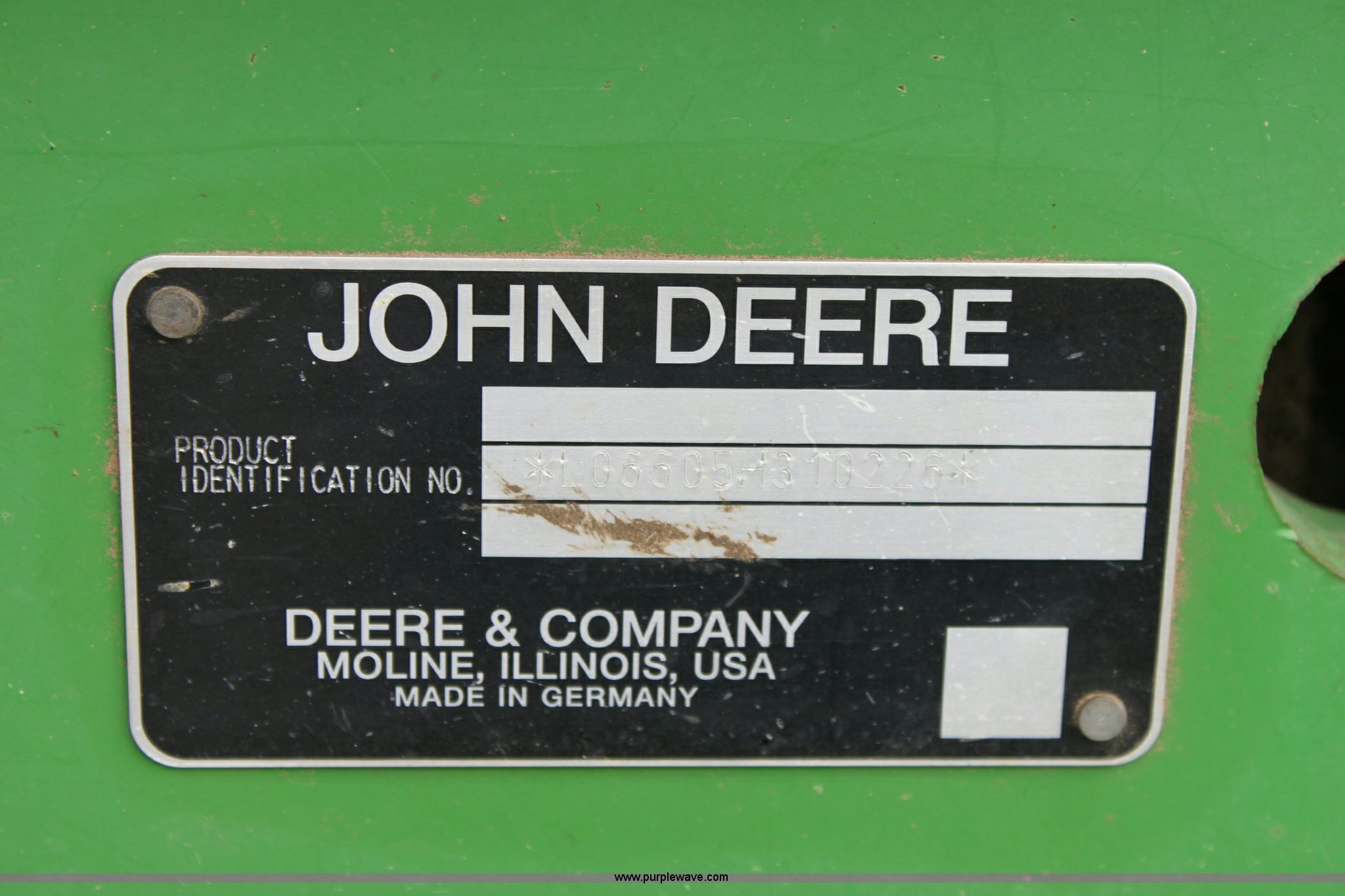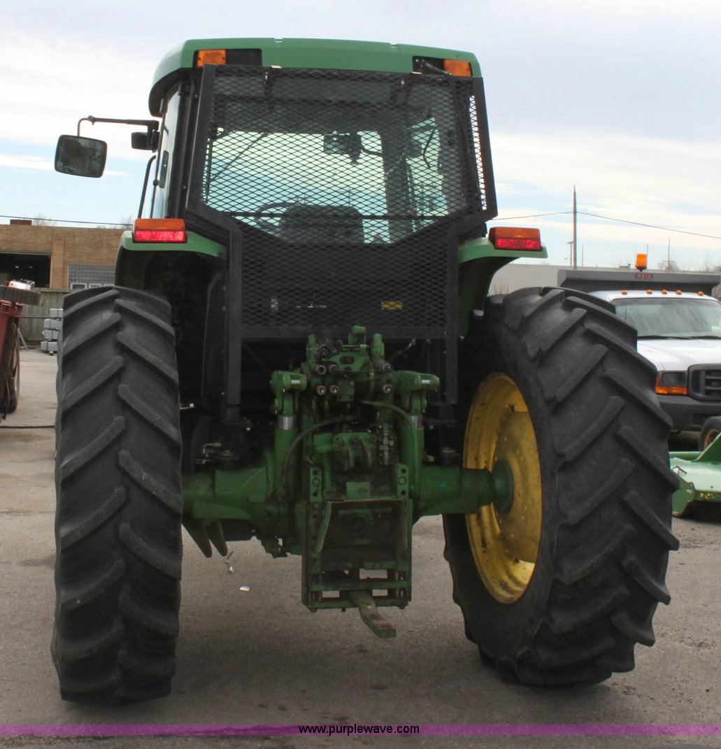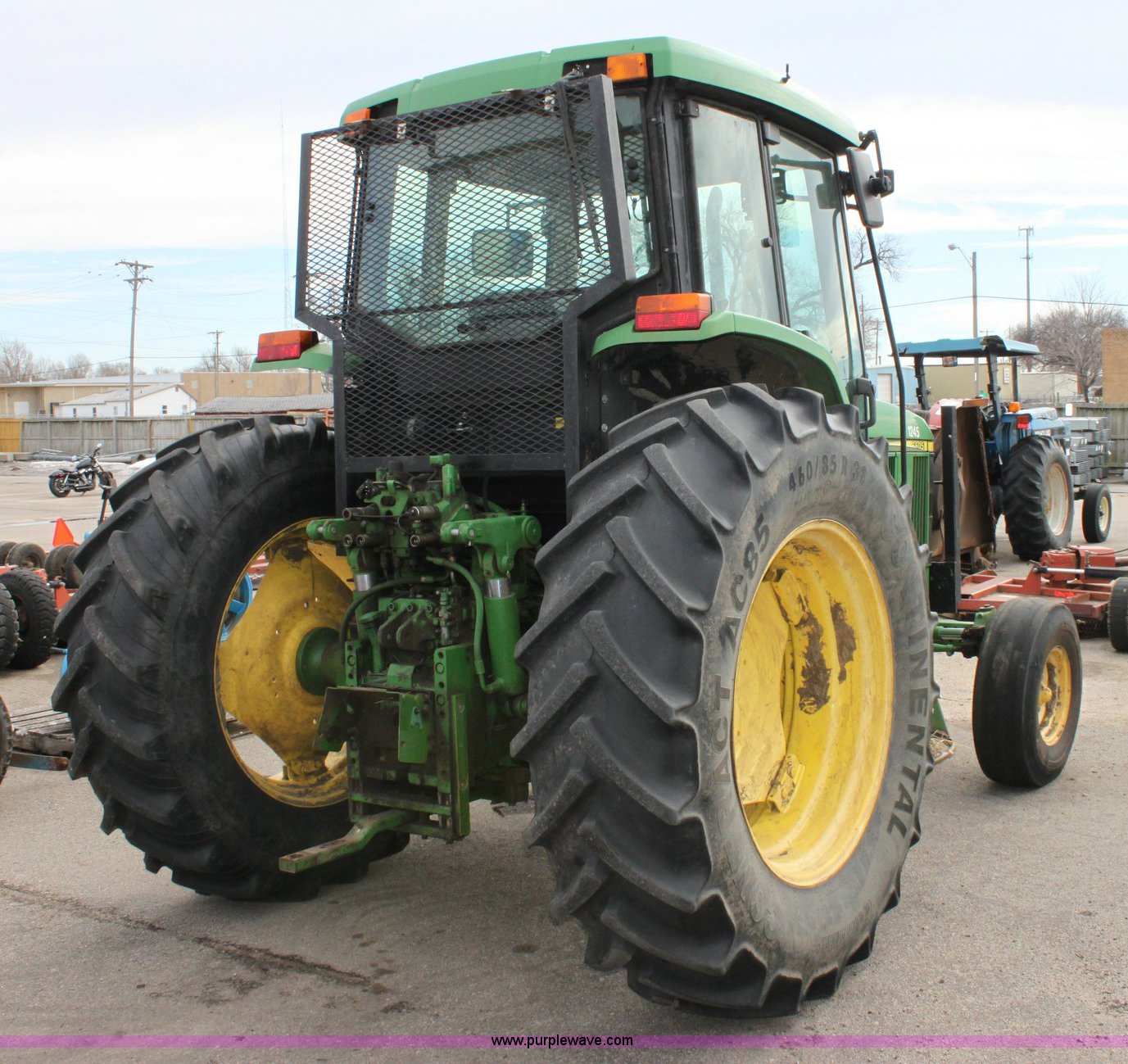 Purple Wave is selling a used Tractor in Kansas. This item is a John Deere 6605 tractor with the following: 1,065 hours on meter, Six cylinder diesel engine, CD6068T642070, Transmission, 12 forward and four reverse gears, AC and heat, AM/FM, Suspension seat, Windshield wiper, Front work lights, (3) sets of hydraulic remotes, PTO shaft is broken, 10.00-16 front tires, 18.4R38 rear tires, Serial L06605A310226, Equipment# 1245