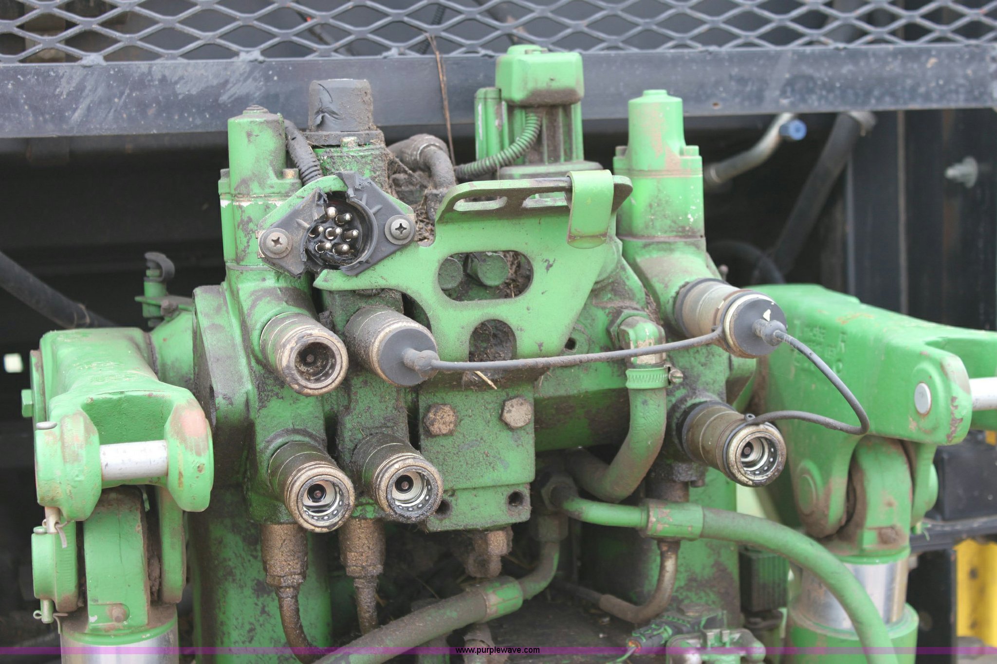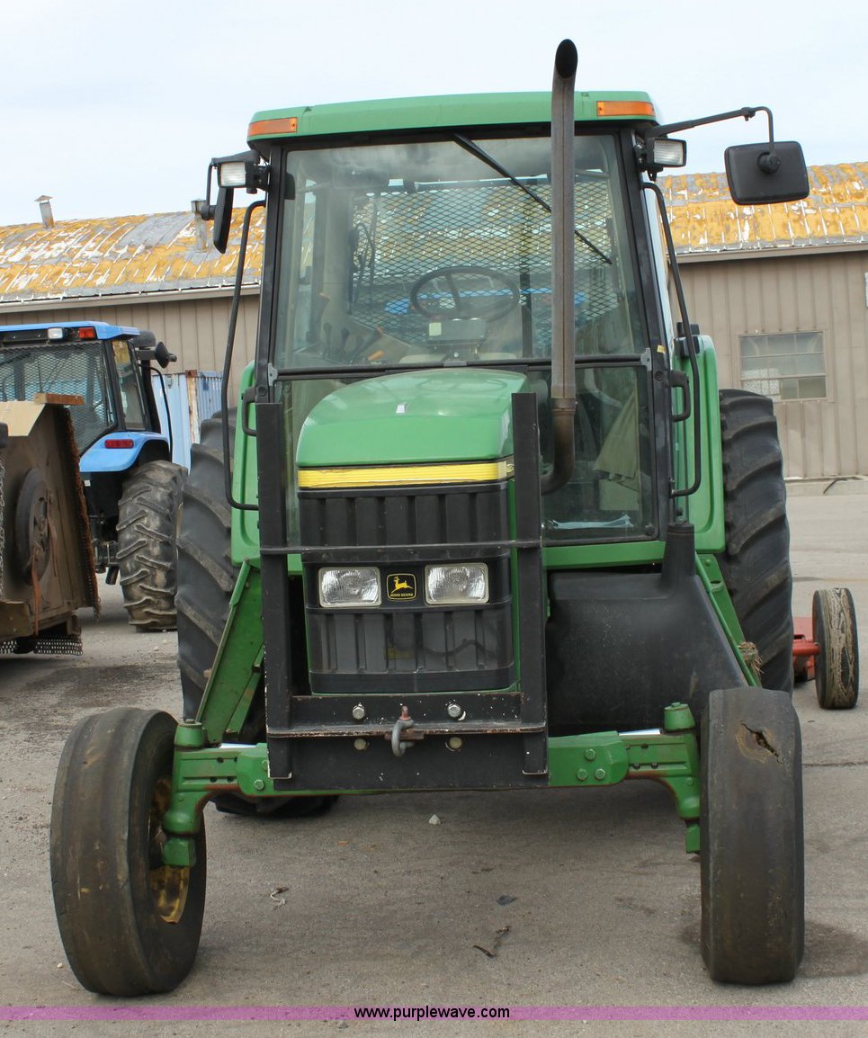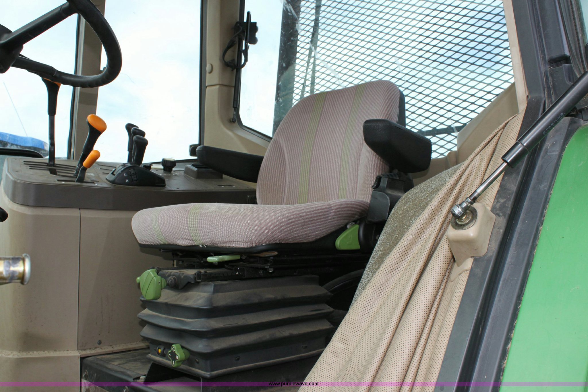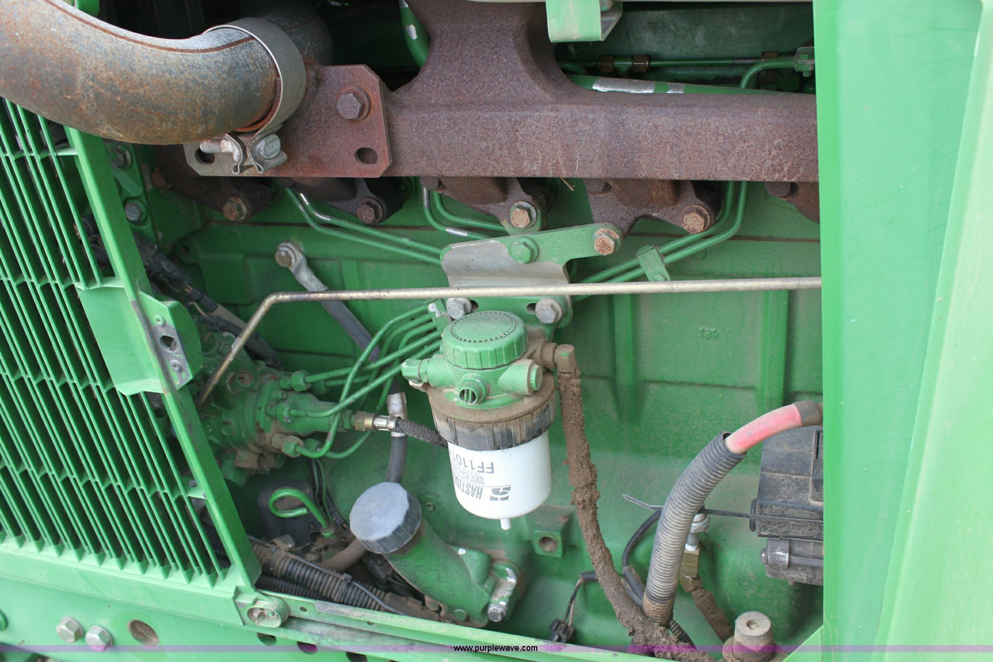 Purple Wave is selling a used Tractor in Kansas. This item is a John Deere 6605 tractor with the following: 1,065 hours on meter, Six cylinder diesel engine, CD6068T642070, Transmission, 12 forward and four reverse gears, AC and heat, AM/FM, Suspension seat, Windshield wiper, Front work lights, (3) sets of hydraulic remotes, PTO shaft is broken, 10.00-16 front tires, 18.4R38 rear tires, Serial L06605A310226, Equipment# 1245