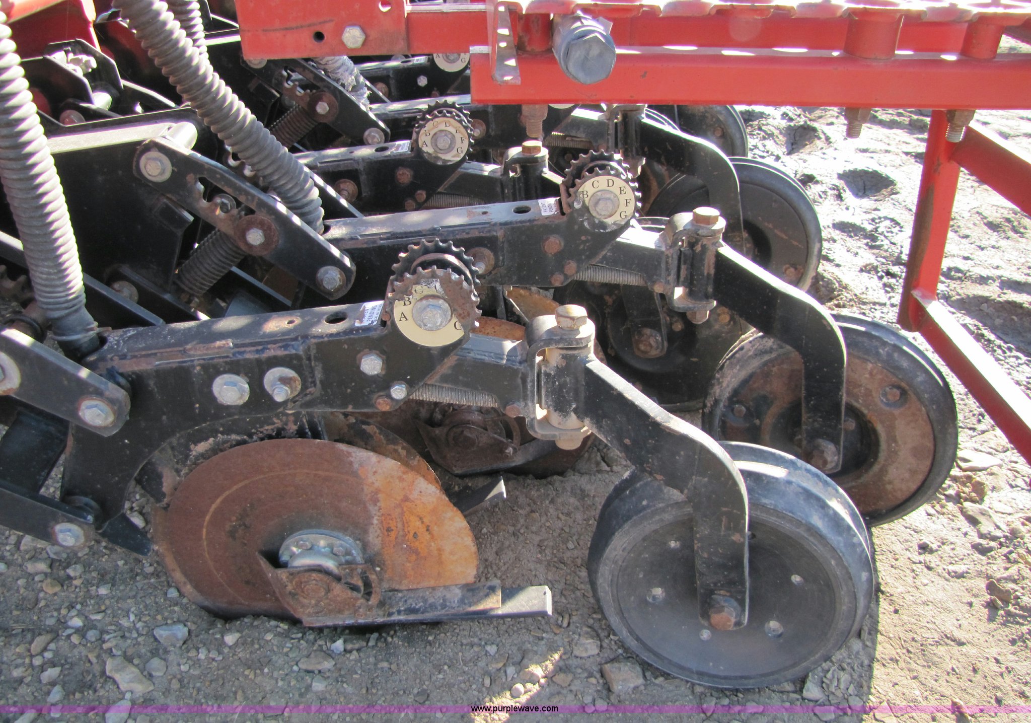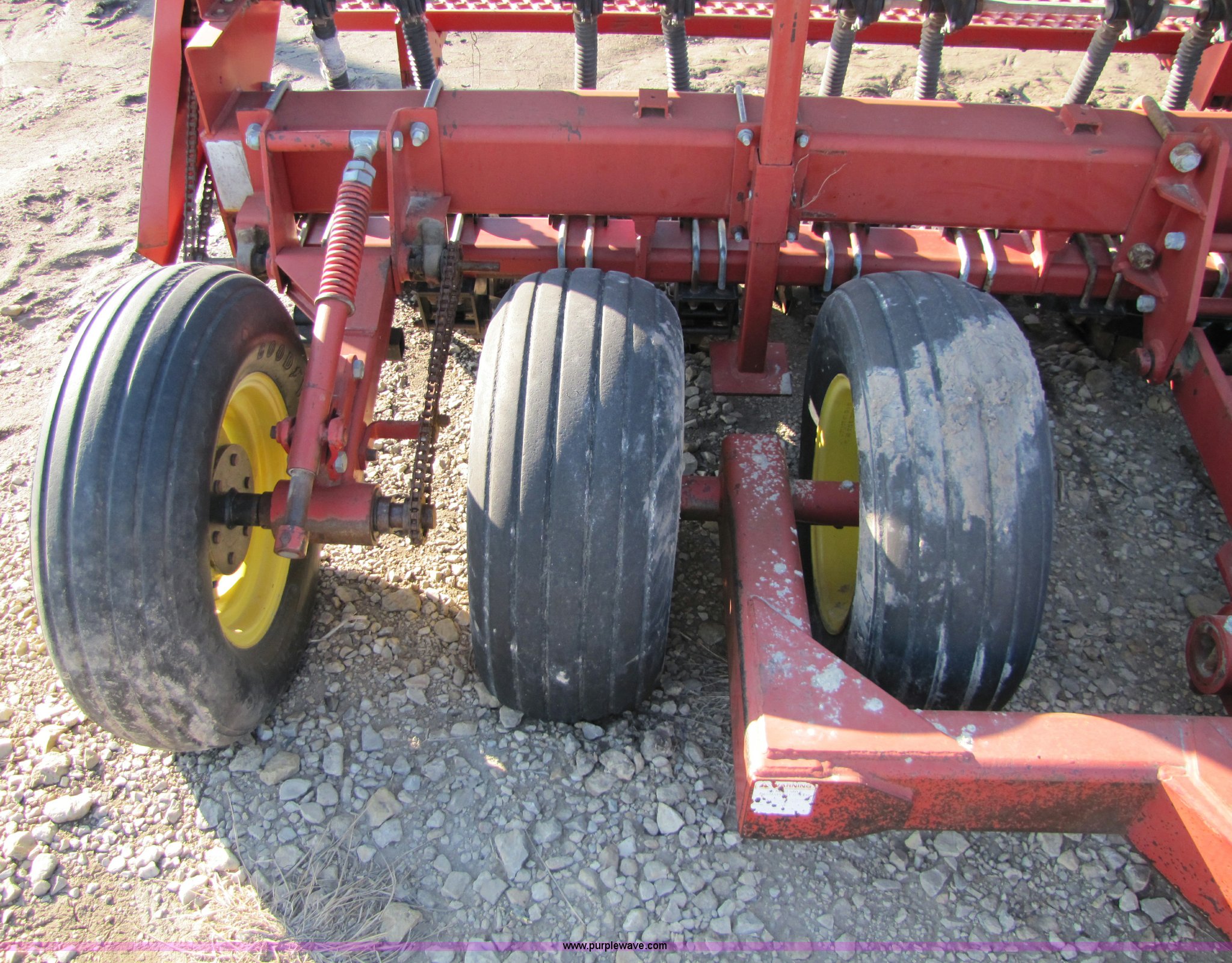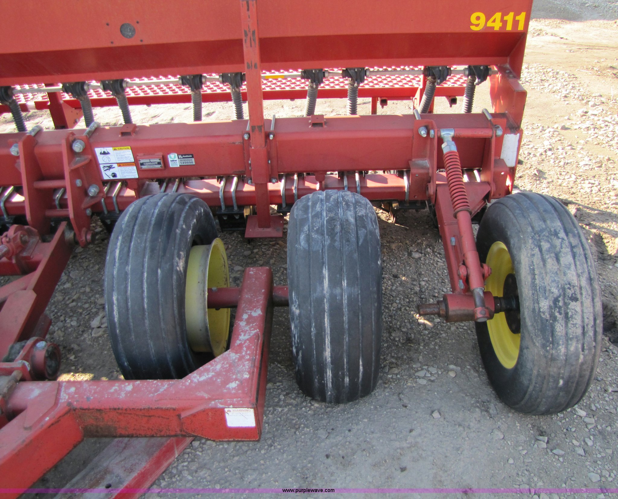 Purple Wave is selling a used Grain Drill or Seeder in Kansas. This item is a Sunflower 9411-15 drill with the following: 18 hole, 15'W, 10" spacing, Double disk, Some press wheels and bearing replaced, Tires will be fixed by time of sale, Serial 9437-104