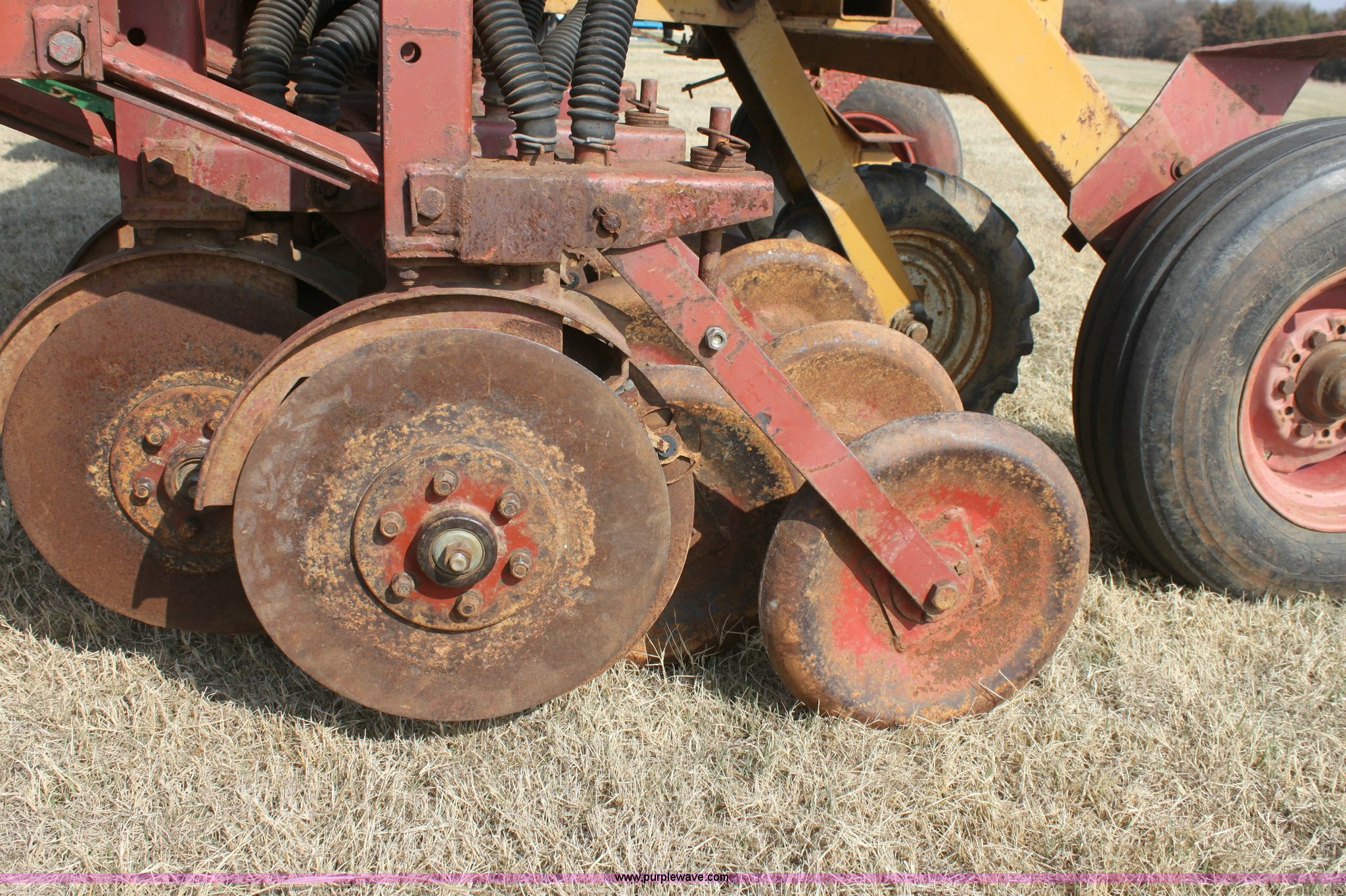 Purple Wave is selling a used Grain Drill or Seeder in Oklahoma. This item is a HayBuster 1000 no till drill with the following: 16" blades, 7.5" spacings, Grain and fertilizer boxes, 27x9.50-15 front tires, 9.5L-14.5 rear tires, Serial 86496