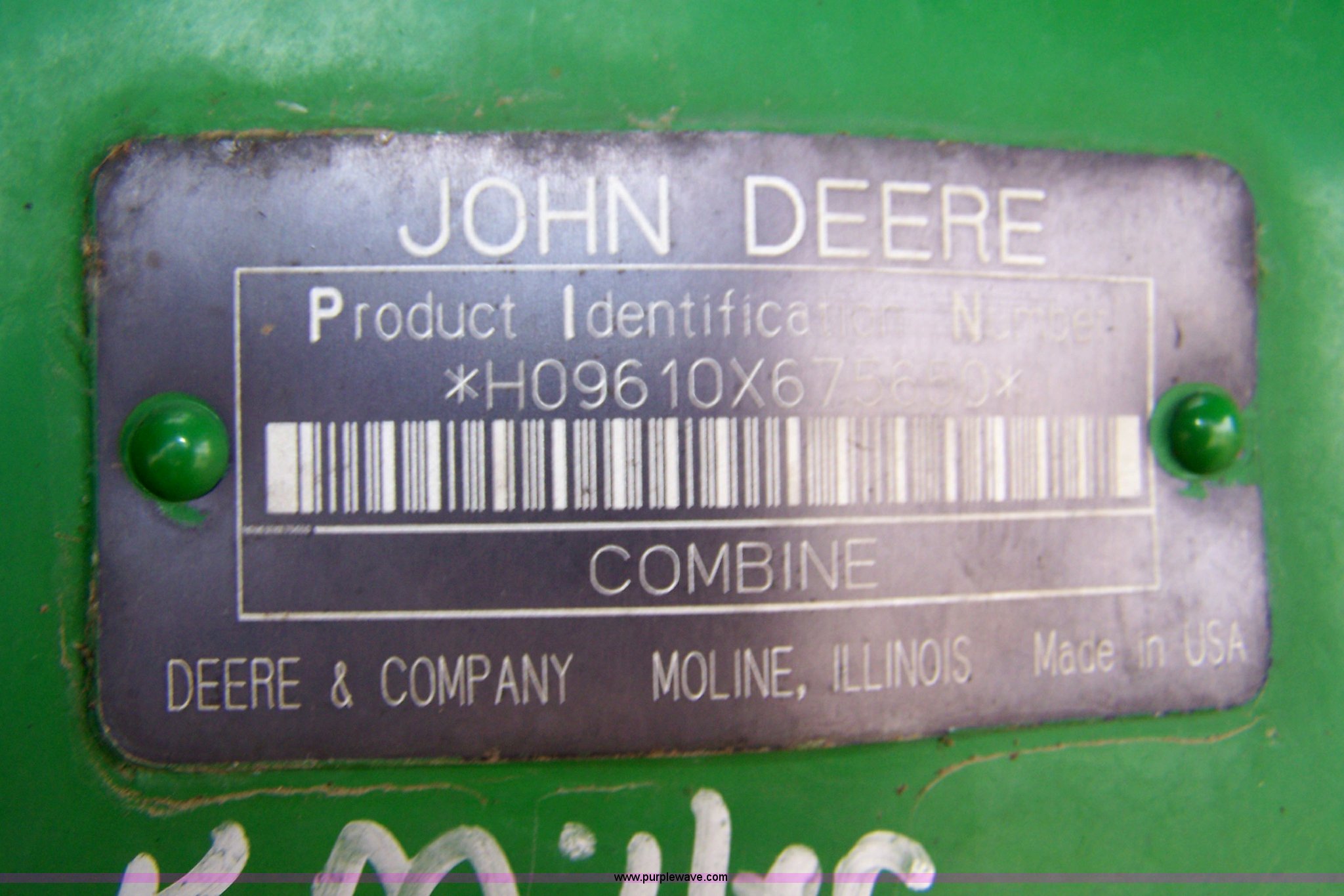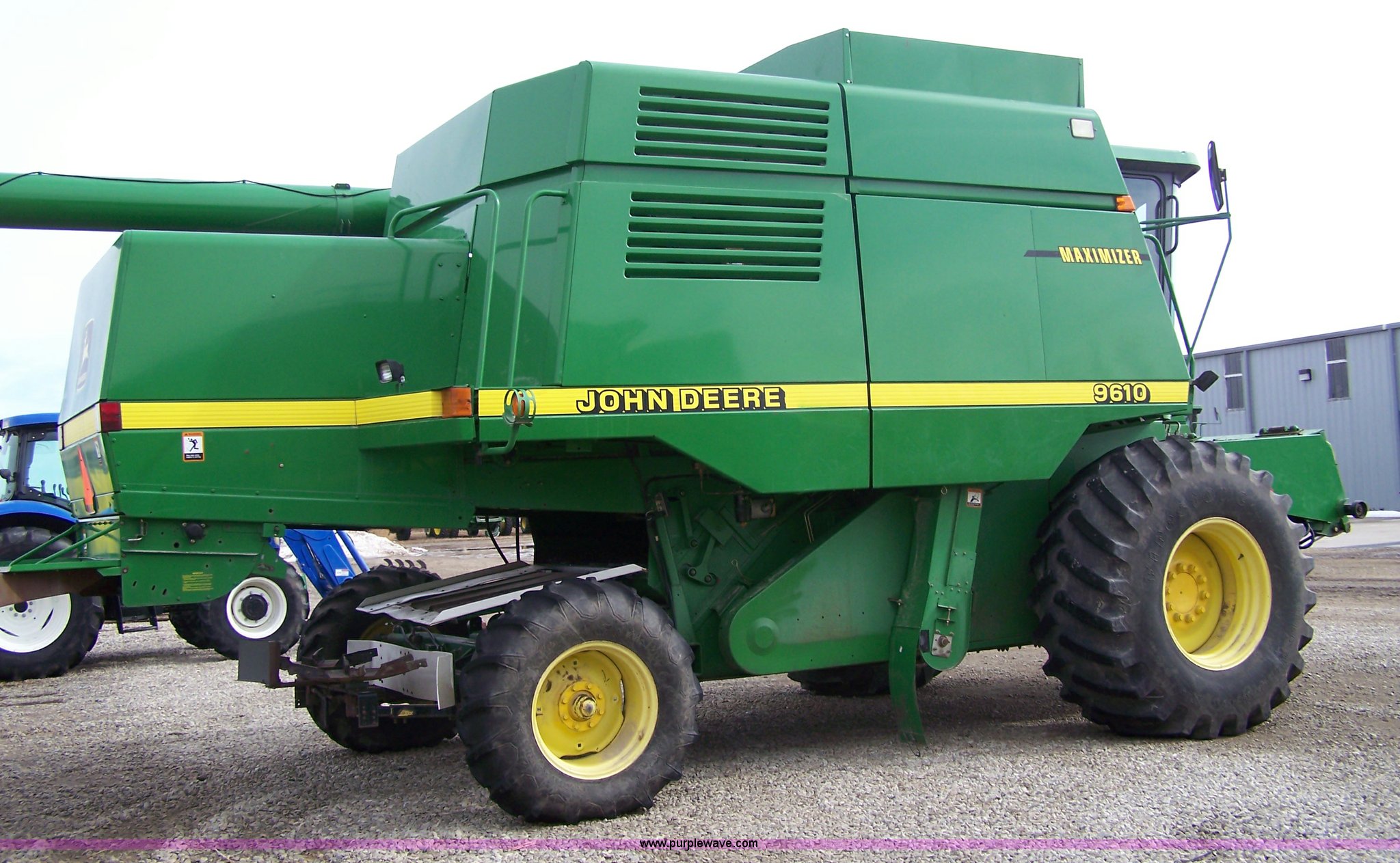 Purple Wave is selling a used Combine in Kansas. This item is a 1998 John Deere 9610 Maximizer combine with the following: 5,588 engine hours on meter, 3,758 separator hours on meter, Diesel engine, Hydrostat transmission, AC and heat, AM/FM, Instructor seat, Chopper with chaff spreader, 30.5L-32 front tires, 14.9-24 rear tires, Serial H09610X675650