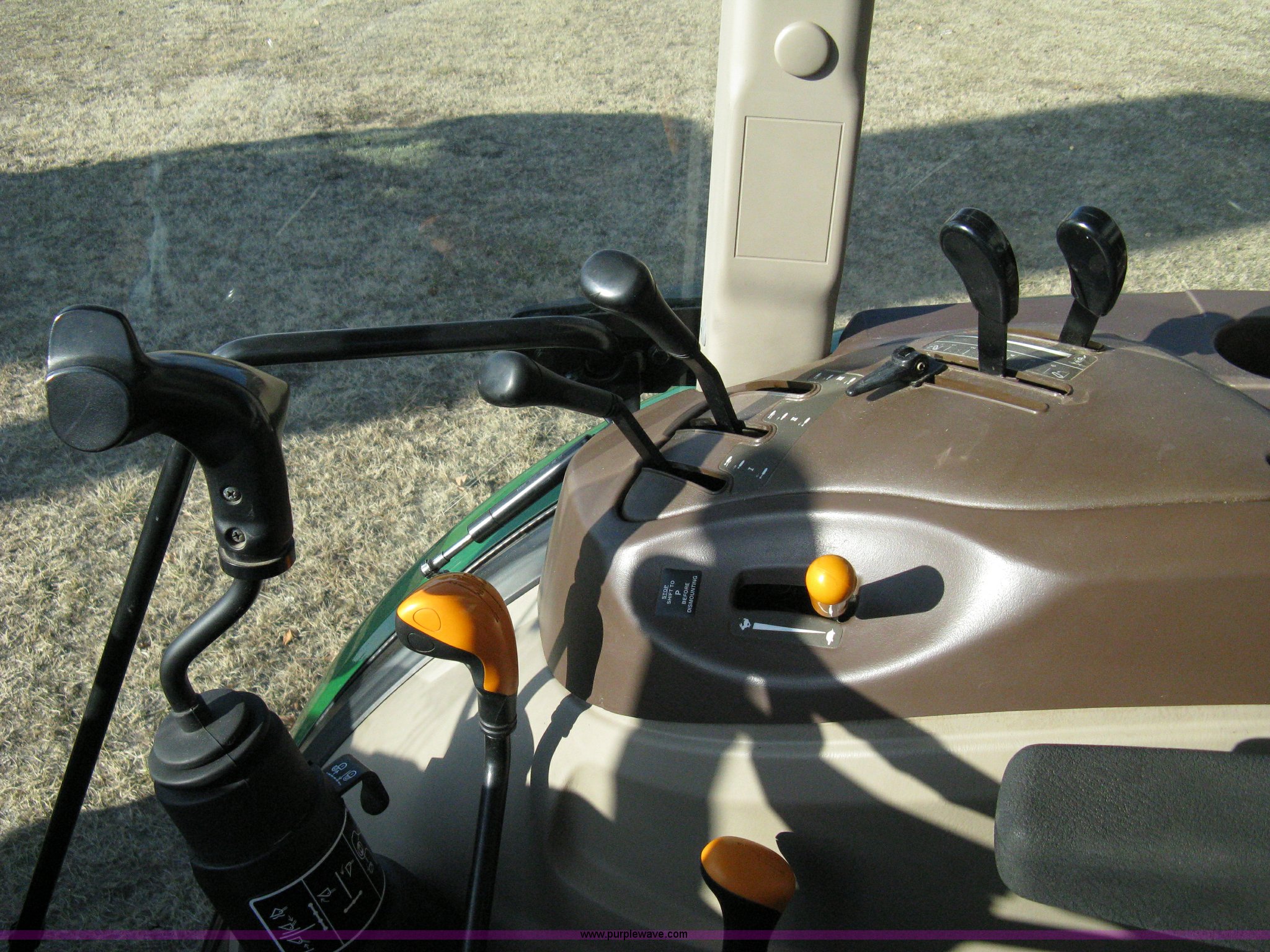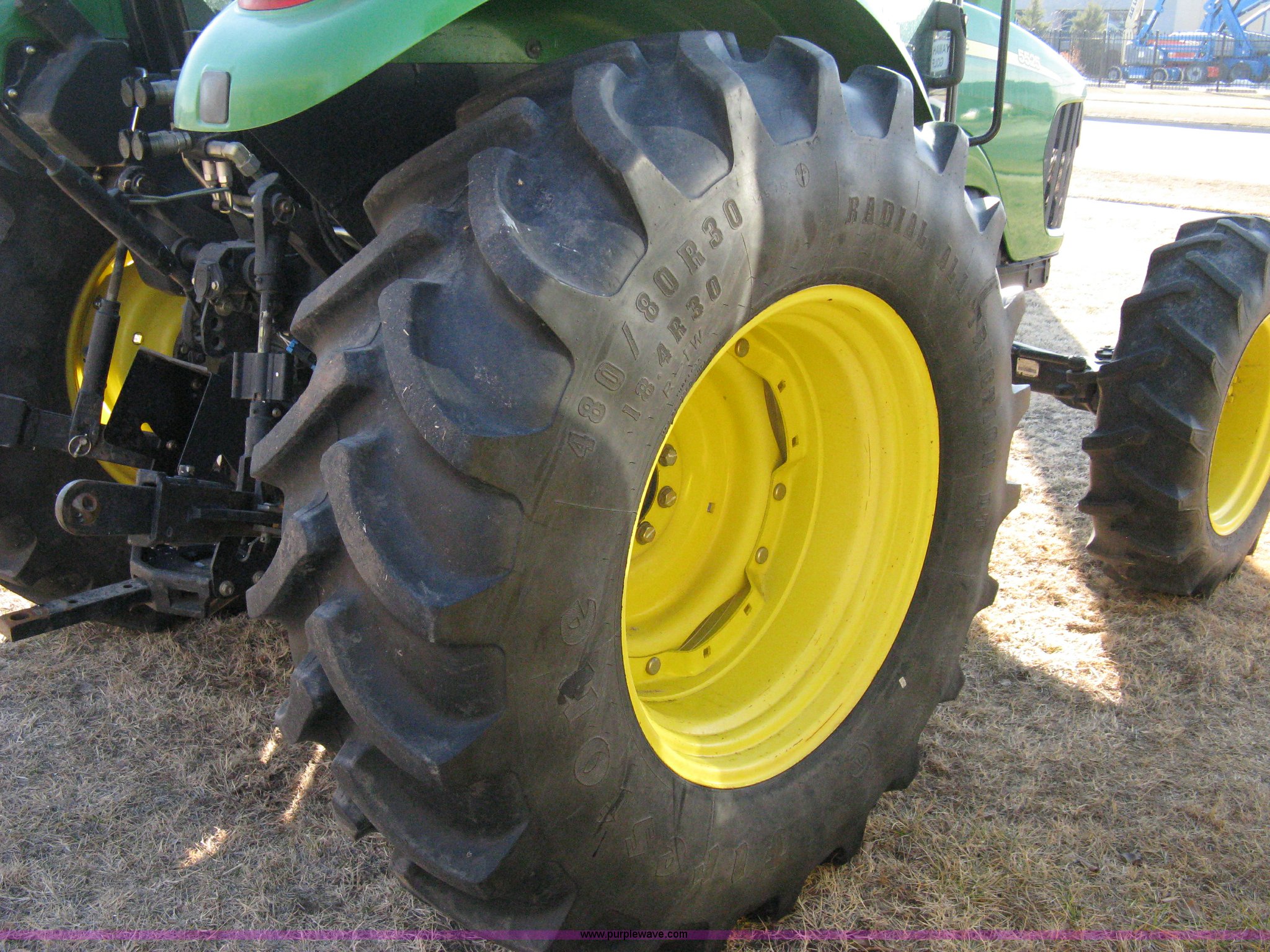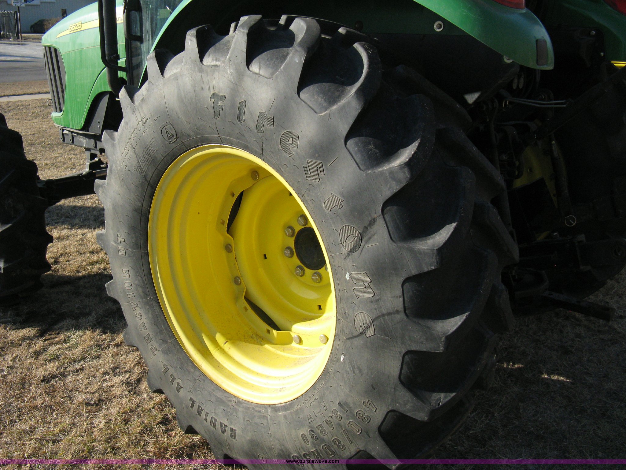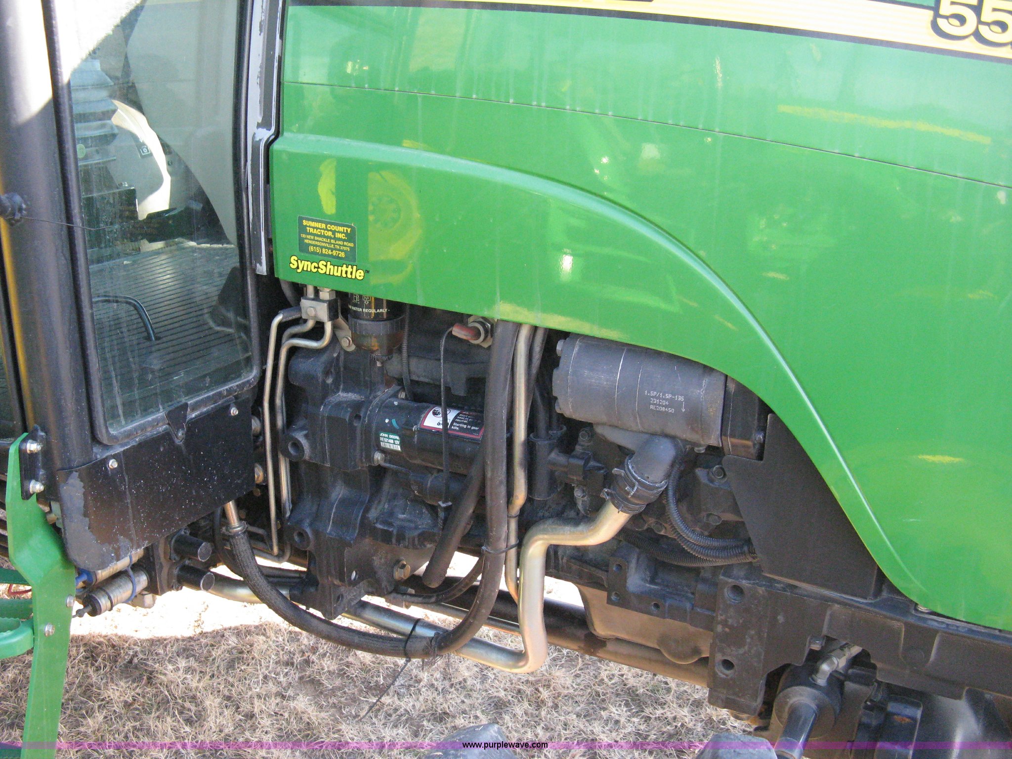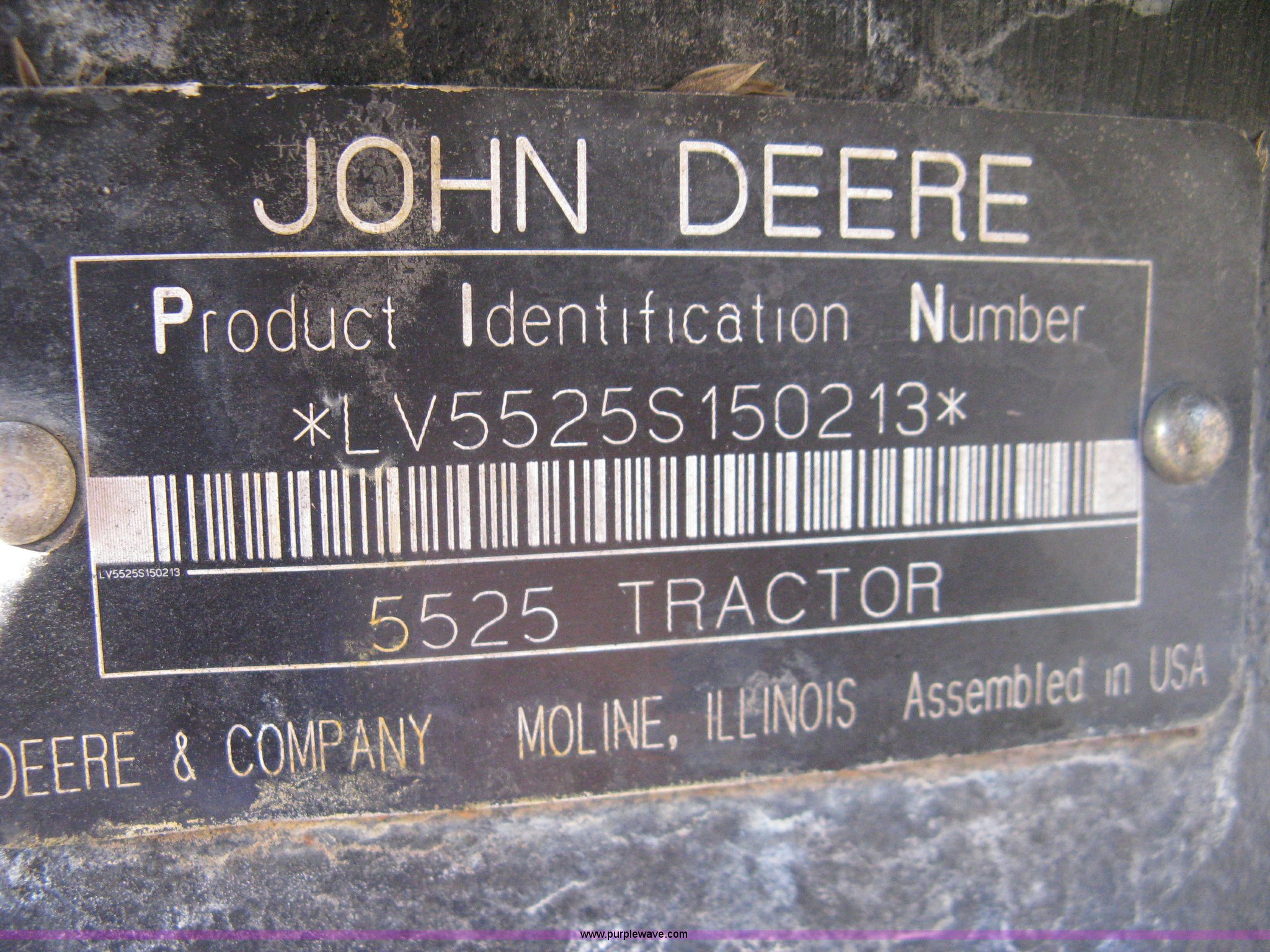 Purple Wave is selling a used Tractor in Kansas. This item is a 2005 John Deere 5525 MFWA tractor with the following: 795.5 hours on meter, Four cylinder 91 HP diesel engine, Sync Shuttle transmission, Front wheel assist, Enclosed cab with AC and heat, AM/FM/CD, Tilt steering wheel, Air ride seat, Tip out windows, Work lights, Turn signals, (2) hydraulic remotes, Auxiliary hydraulics under cab for loader, Three point, 540 PTO, 1000 PTO shaft insert, in cab, 12.4-24 front tires, 480/80R30 (18.4R30) rear tires, Serial LV5525S150213