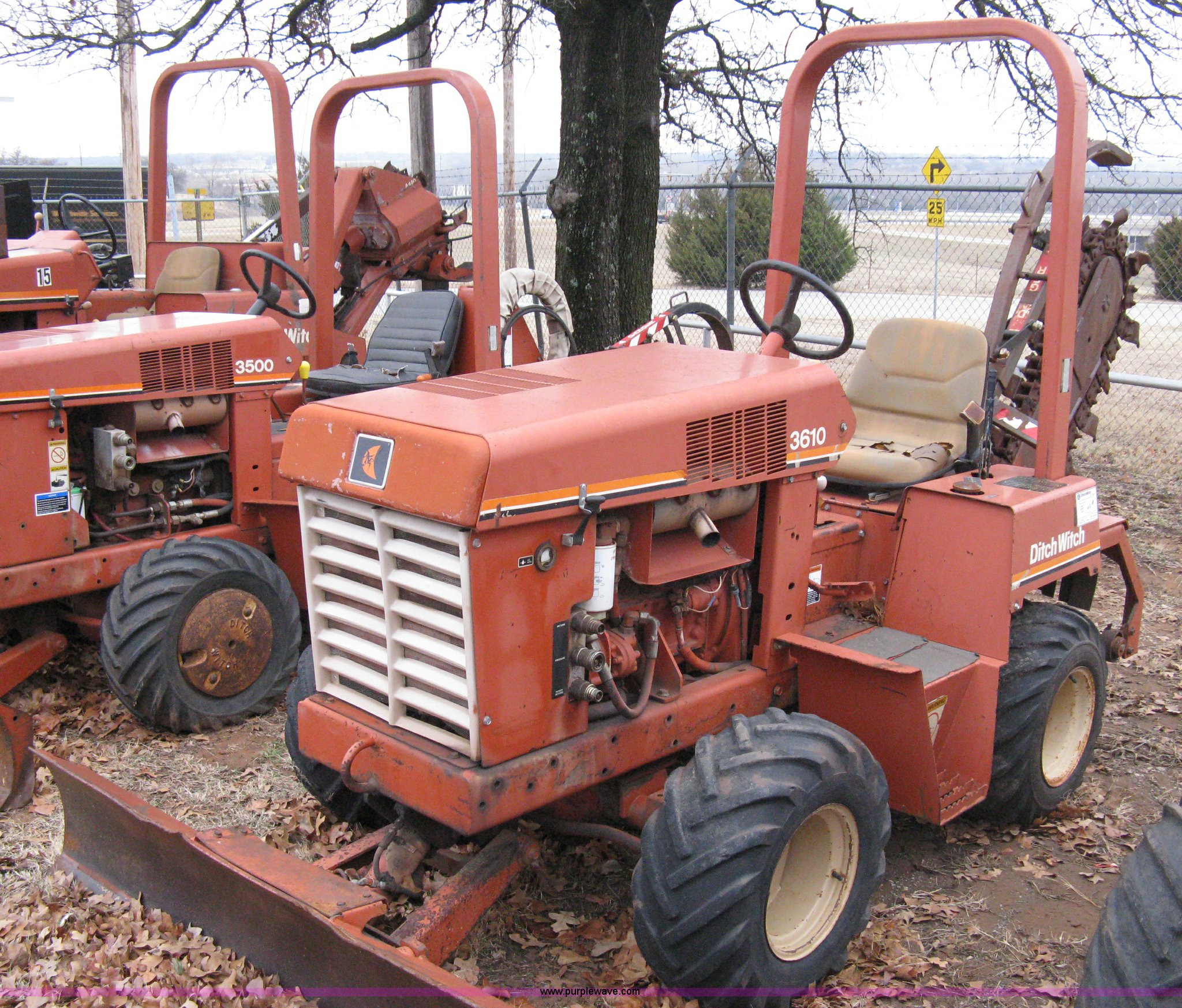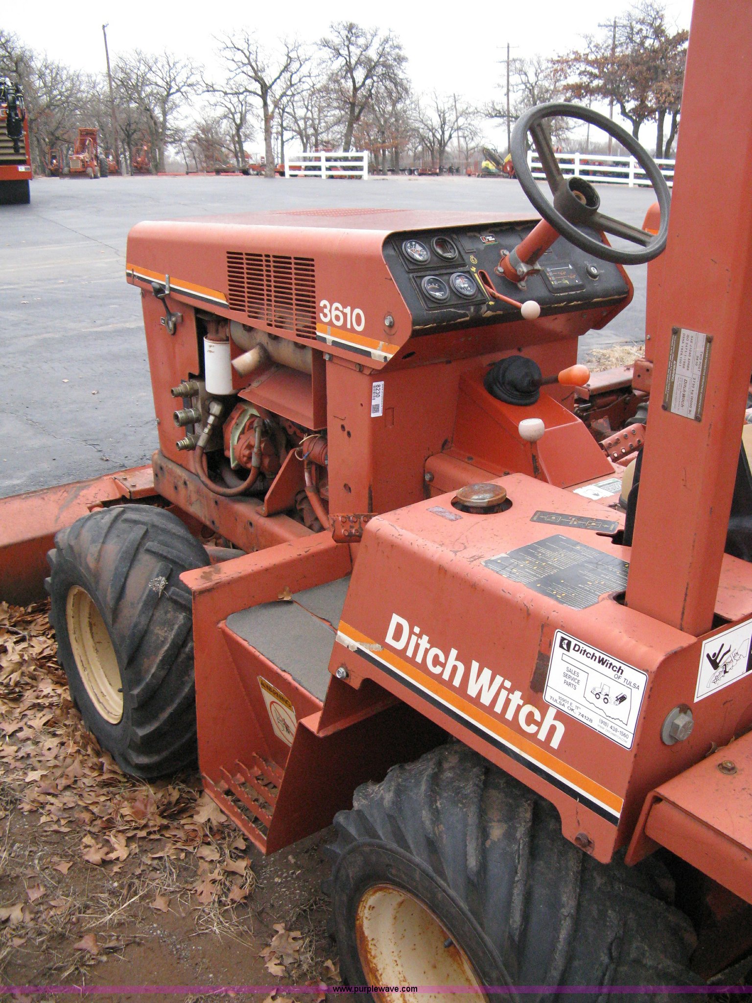 Purple Wave is selling a used Trencher or Rock Saw in Oklahoma. This item is a 1993 Ditch Witch 3610DD trencher with the following: 1,183 hours on meter, Diesel engine, Four wheel drive, Two-post roll bar, 64" push blade, 64" trencher length, Auxiliary hydraulics, Key start, Throttle on dash and foot pedal, 26x12.00-12NHS tires, Serial 3K0686