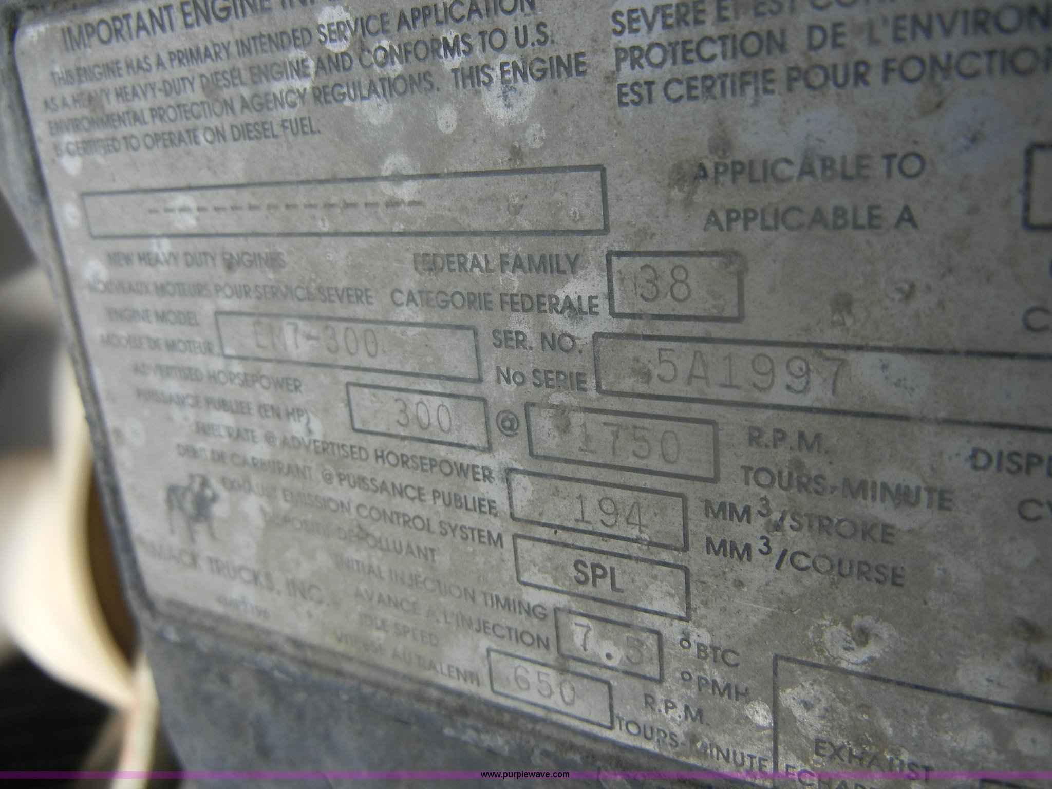 1995 Mack RD690S cement mixer truck. 147,746 miles on odometer, 19,140 hours on meter, Mack E7 L6, 12.0L (728 CID) diesel engine, Manual transmission, AC and heat, Tilt , AM/FM , Air suspension seat, Air ride cab, Manual windows and locks, Air brakes, PTO, 2002 McNeilus 11 cu.yd. mixer 150 gallon water tank, (3) 4' chute extensions, Single 56 gallon fuel tank, Steerable pusher axle, GVWR 74,000 lbs, 11R22.5 rear tires, 425/65R22.5 front tires, Maintenance records available , View oil sample records, GPS and backup camera system not included, Oil sample records available upon request, Unit # 95. 1M2P264C0SM018179. Shipping quotes available. Midwest Concrete Materials. 701 S. 4th St. Manhattan, KS 66505