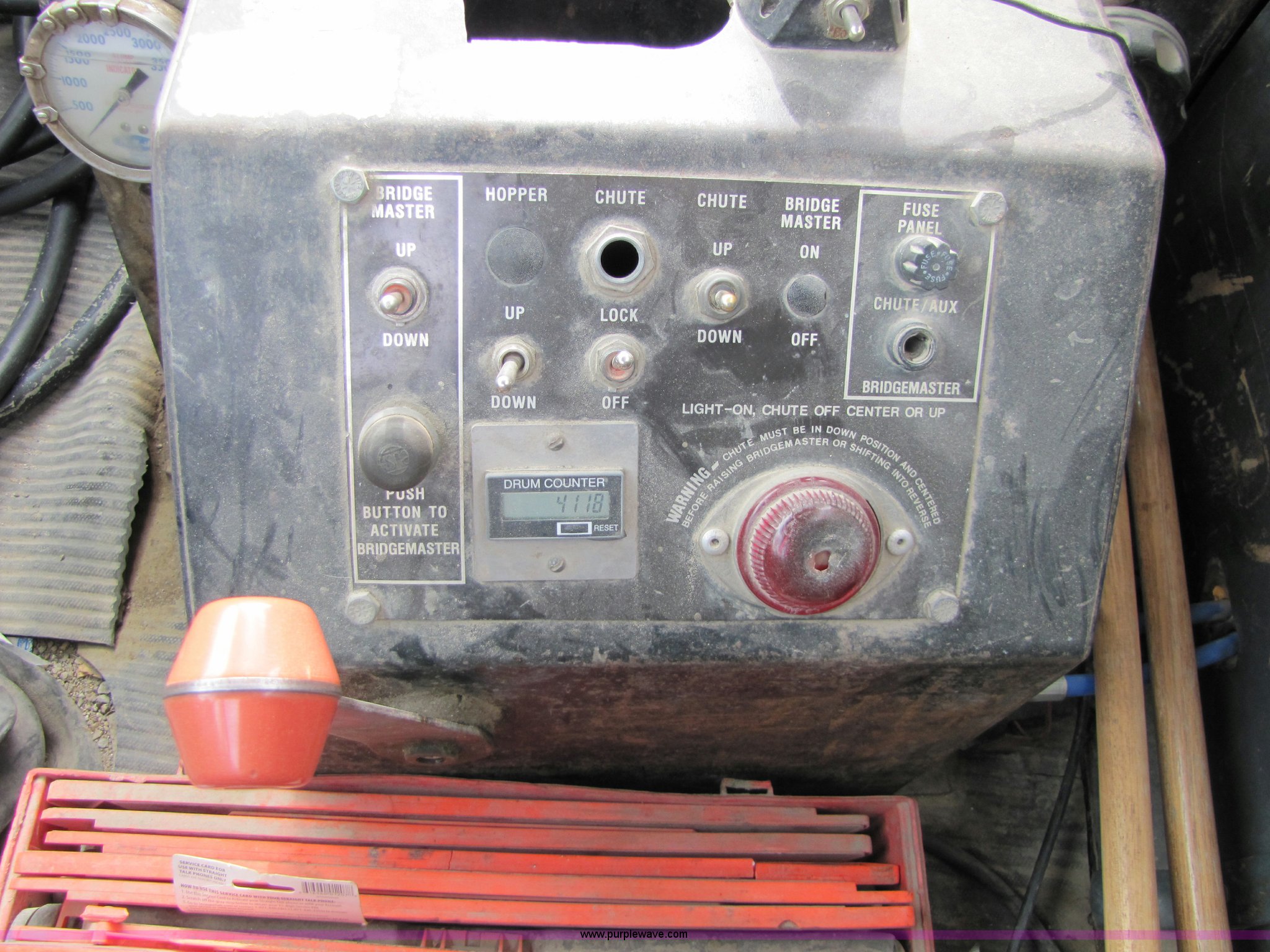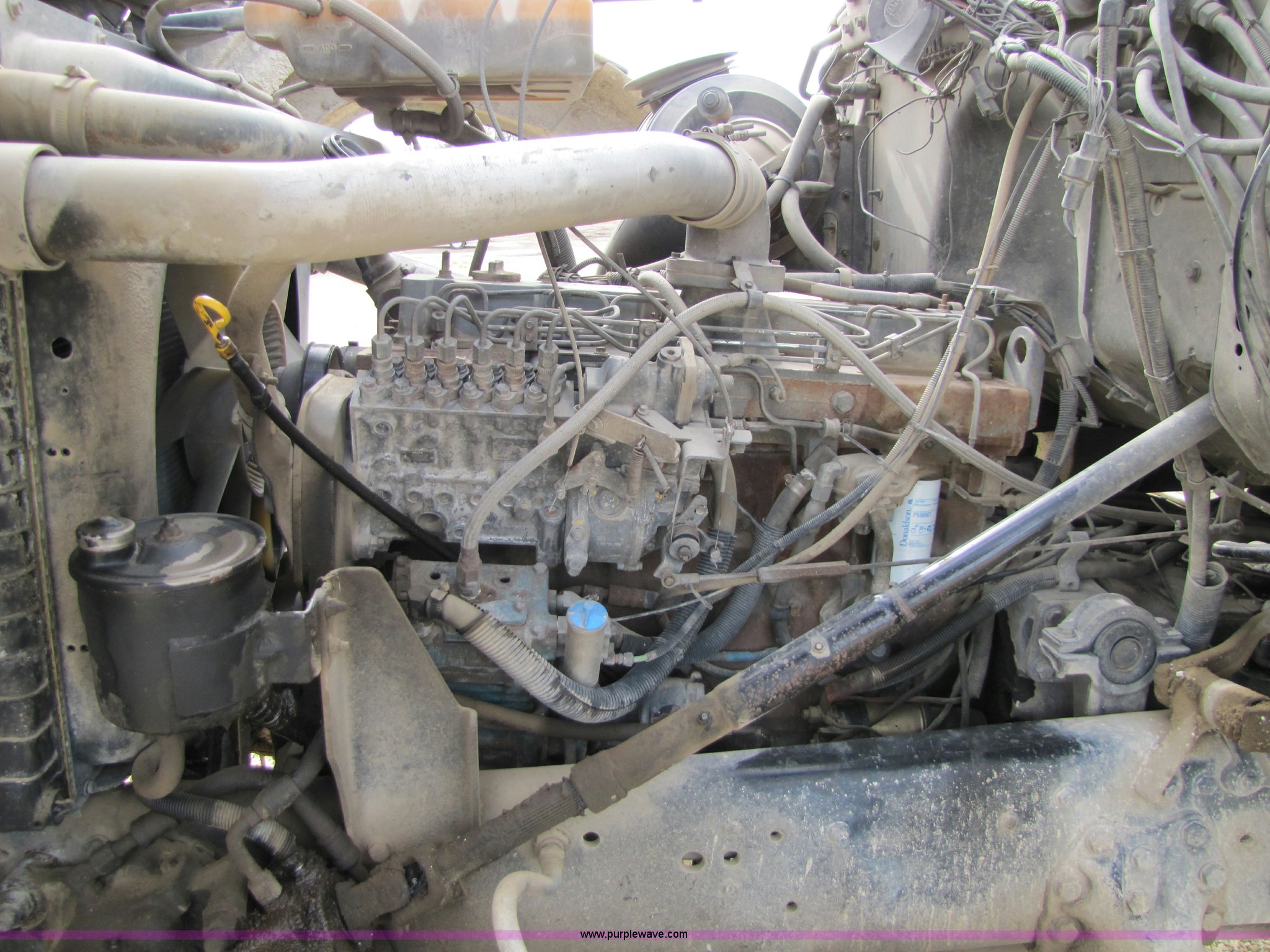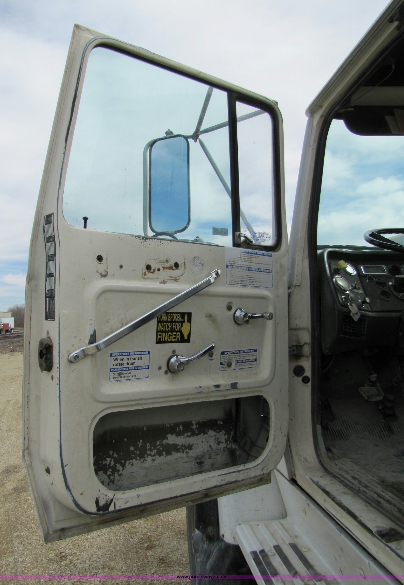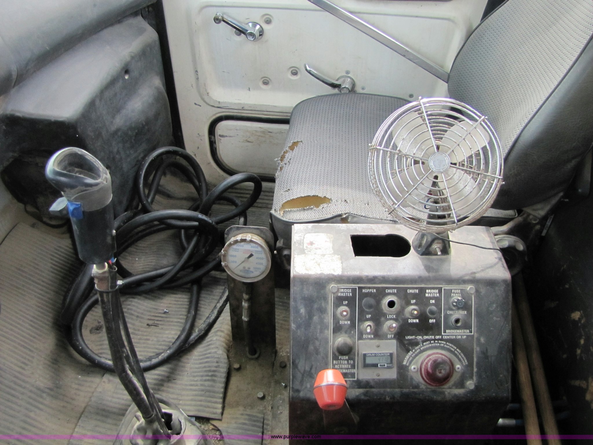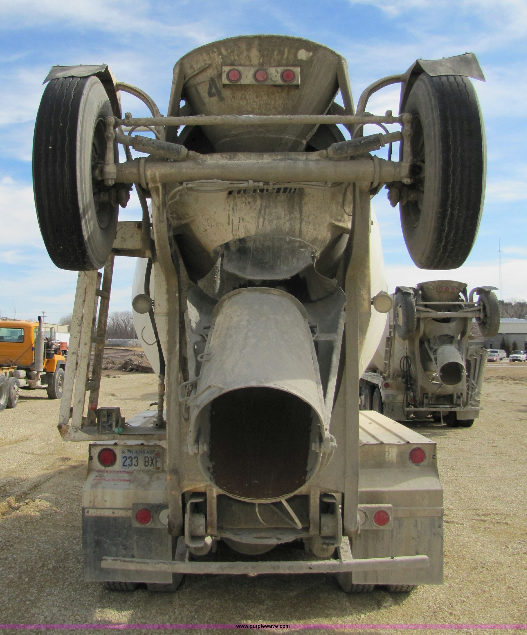 Purple Wave is selling a used Ready Mix or Pump Truck in Kansas. This item is a 1993 Ford LT8000 cement mixer truck with the following: 131,534 miles on odometer, 2,195 hours on meter, Cummins 8.3L L6 diesel engine, Road Ranger eight speed manual transmission, RTO-11708LL-14708LL, Twin screw, Differential lock, Manual windows and locks, Single stack, Air brakes, McNeilus 9.5 cu. yd. mixer, Serial 31106-03958, (3) 4' chute extensions, 125 gallon water tank, Bridge Master trailer axle, 425/65R22.5 front tires, 11R22.5 rear tires, Walking beam suspension, GVW 74M, Maintenance records available, View oil sample records, Unit# MT120