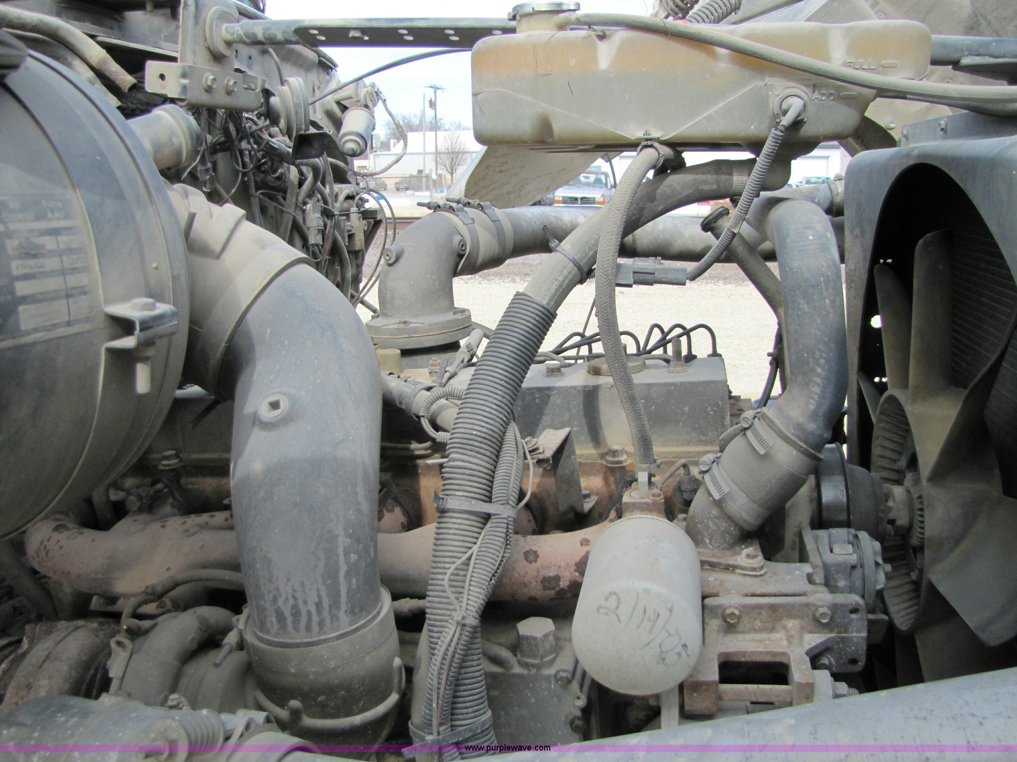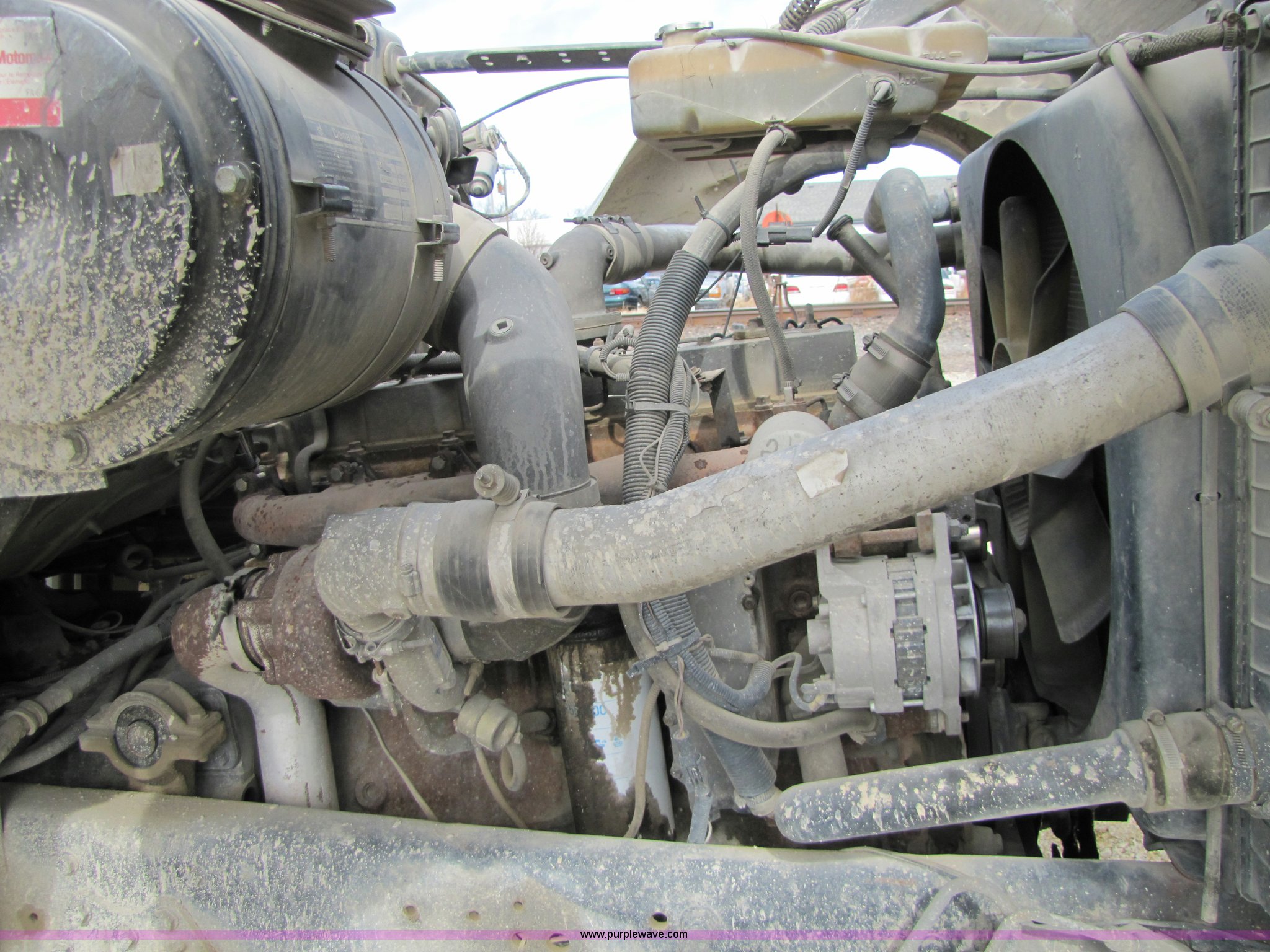1993 Ford LT8000 cement mixer truck. 131,534 miles on odometer, 2,195 hours on meter, Cummins 8.3L L6 diesel engine, Road Ranger eight speed manual transmission RTO-11708LL-14708LL, Twin screw, Differential lock, Manual windows and locks, Single stack, Air brakes, McNeilus 9.5 cu. yd. mixer Serial 31106-03958, (3) 4' chute extensions, 125 gallon water tank, Bridge Master trailer axle, 425/65R22.5 front tires, 11R22.5 rear tires, Walking beam suspension, GVW 74M, Maintenance records available, View oil sample records , Unit# MT120. 1FDZU82E2PVA27499. Shipping quotes available. Midwest Concrete Materials. 701 S. 4th St. Manhattan, KS 66505