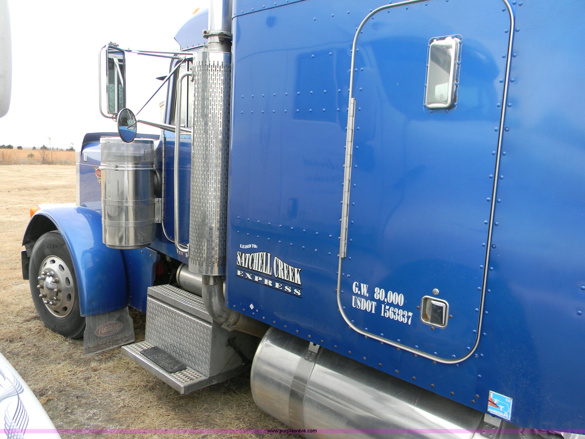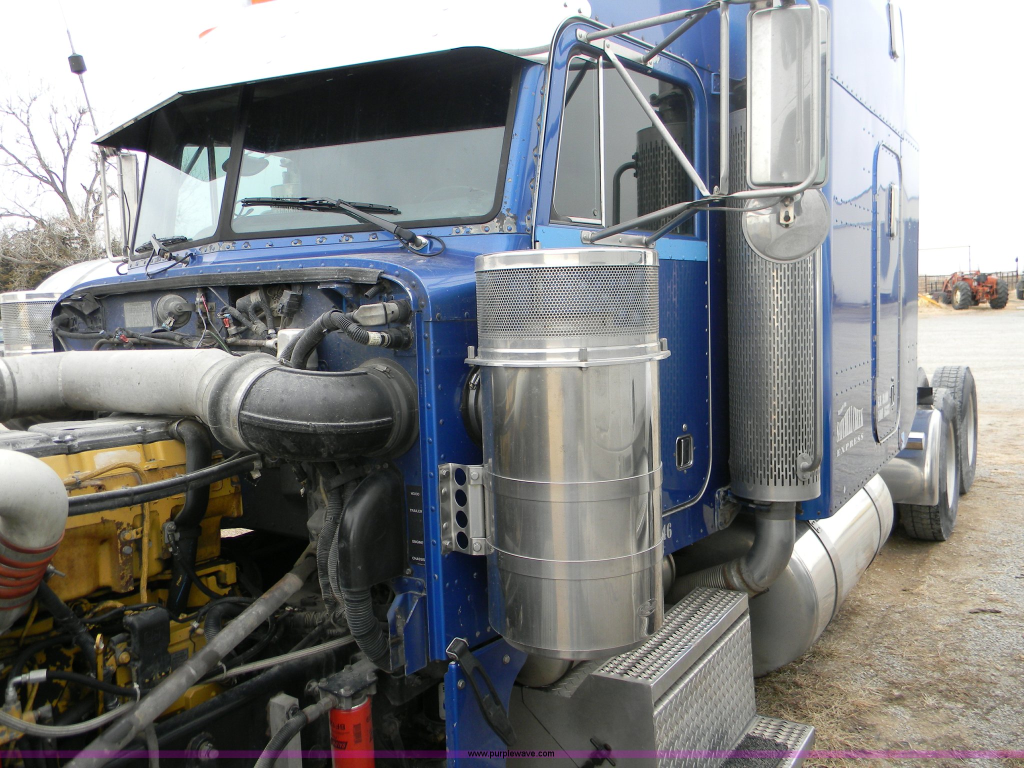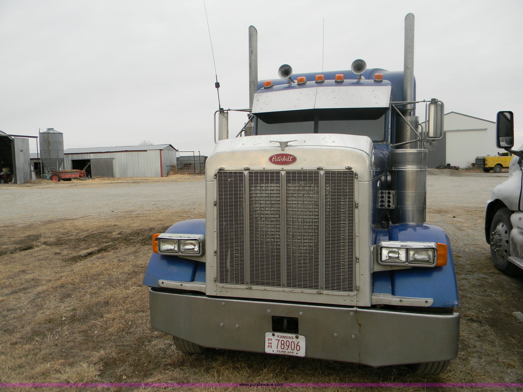 Purple Wave is selling a used Truck Tractor in Kansas. This item is a 2000 Peterbilt 379 semi truck with the following: 350,221 miles on odometer, Caterpillar C15 14.6L diesel engine, 475 HP, 13 speed manual transmission, Twin screw, AC and heat, Tilt, Cruise, AM/FM/CD, Telescoping steering wheel, Spring suspension seat, Air ride cab, Power windows and mirrors, Heated mirrors, Exterior visor, Chrome bumper, Block heater, Cab extender, Dual fuel tanks, Double front exhaust stacks, Aluminum deck plate, Stainless steel quarter fenders, 60" Unibilt sleeper, Mid roof bunk, Air suspension, Dump valves, Wheel nut covers, Air brakes, Jake brake, Brake controller, 355 axle/gear ratio, 22.5 tires, GVWR 80,000 lbs, 260" wheelbase
