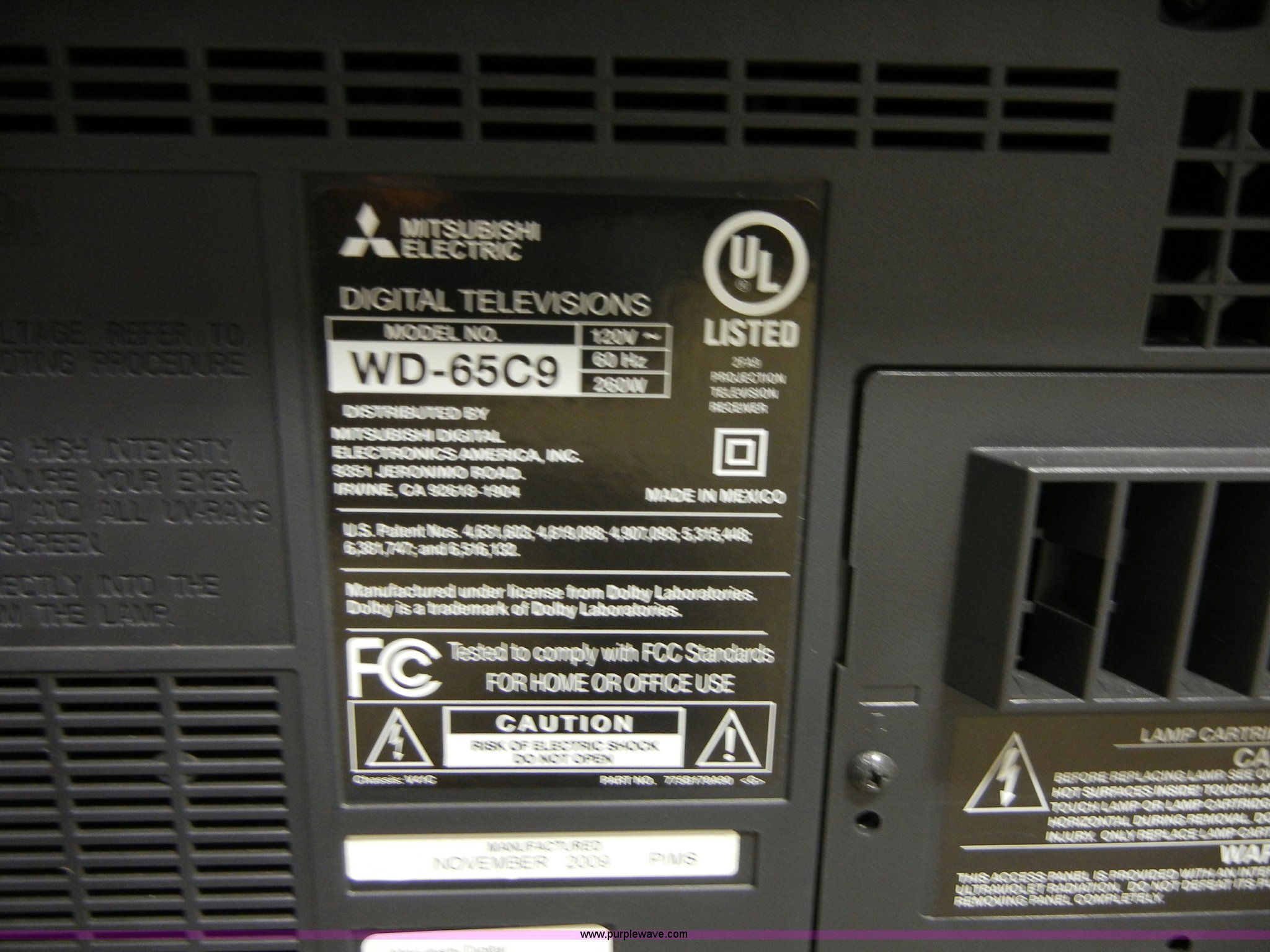 Purple Wave is selling a used Electronics in Kansas. This item is a Mitsubishi 65" DLP TV with the following: Model WD-65C9, Powers on, No remote, Serial 118101