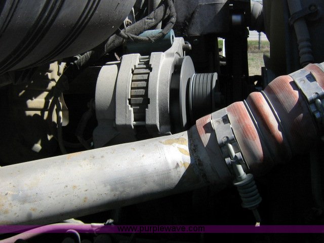 Purple Wave is selling a used Truck Chassis in Texas. This item is a 2003 International 4400 6x4 cab and chassis with the following: 170,419 miles on odometer, International DT530 8.7L six cylinder diesel engine, 300 HP, Eaton Fuller nine speed manual transmission, RTX-11609B, AC and heat, Tilt, Cruise, AM/FM, Manual windows and locks, Heated mirrors, Air ride seat, Fixed passenger seat, Exhaust brake, Power divider lock, Four spring rear suspension, Dual 70 gallon steel fuel tanks, 11R22.5 tires, Front 90%, Rear 30%, 5.57 gear ratio, 10.375" x 3.705" x 0.438" frame, GVWR 52,000 lbs, FAWR 12,000 lbs, RAWR 40,000 lbs, both axles, 254" wheelbase, Starts and runs, Has a slight miss, Engine oil leak on driver side, Windshield cracked, Roof paint peeling