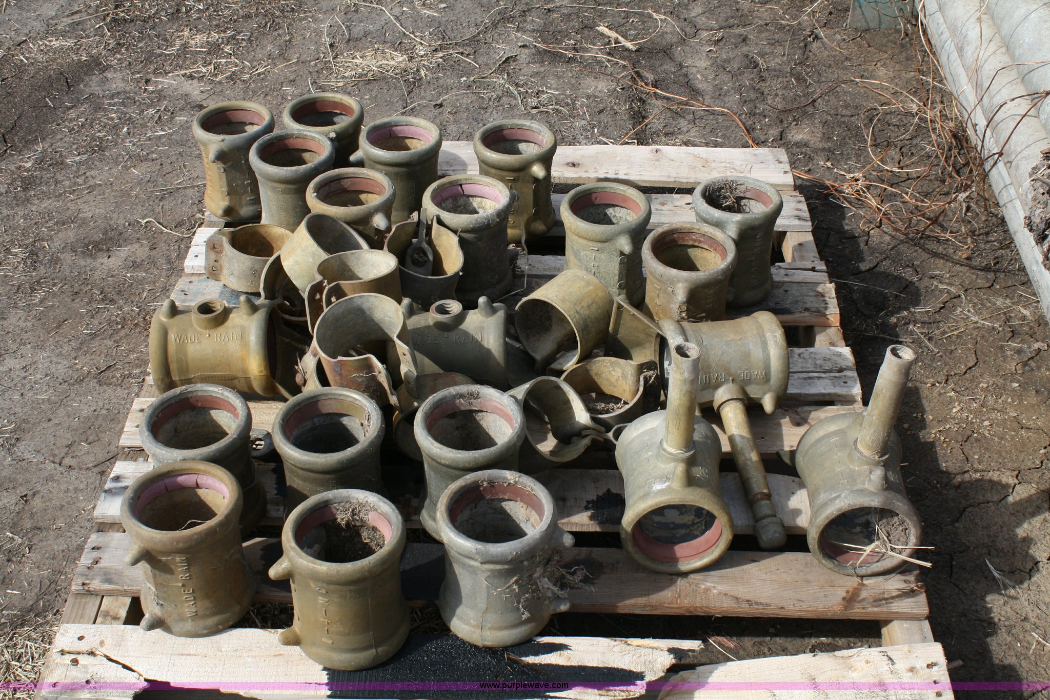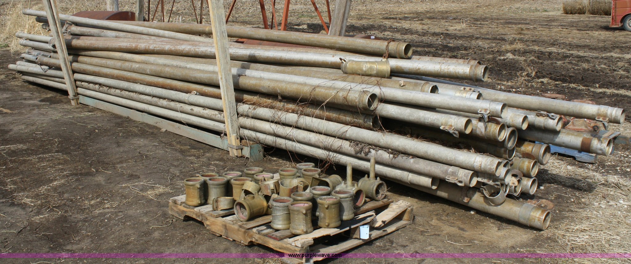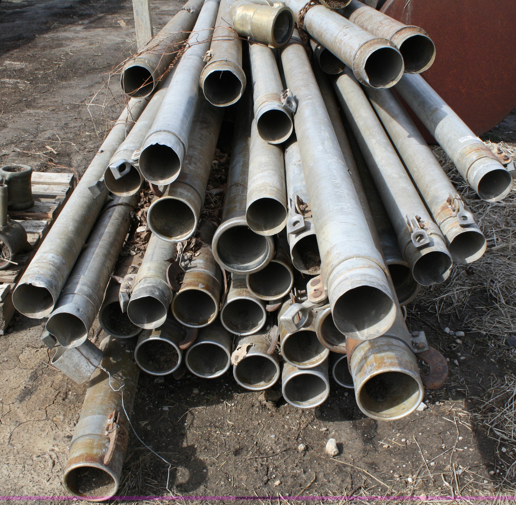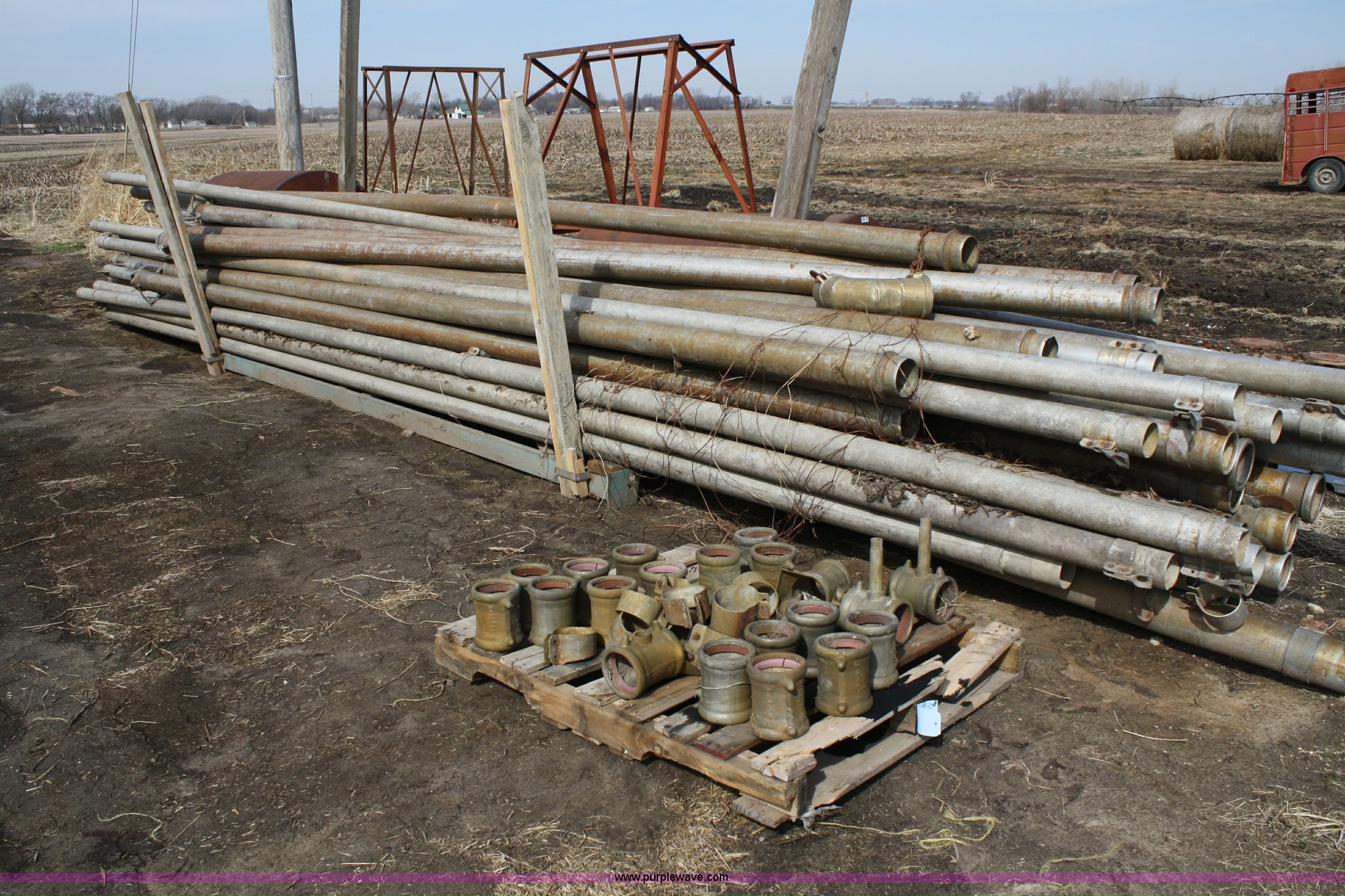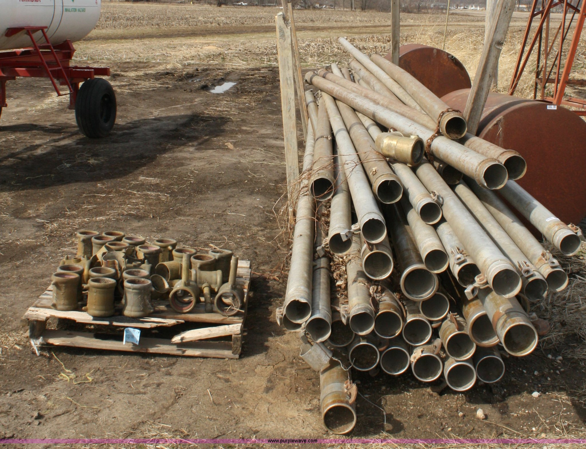 Purple Wave is selling a used Irrigation Equip. Attach. in Kansas. This item is a Assorted irrigation pipe and couplers with the following: (13) 4" joints, (22) 5" joints, (21) assorted couplers