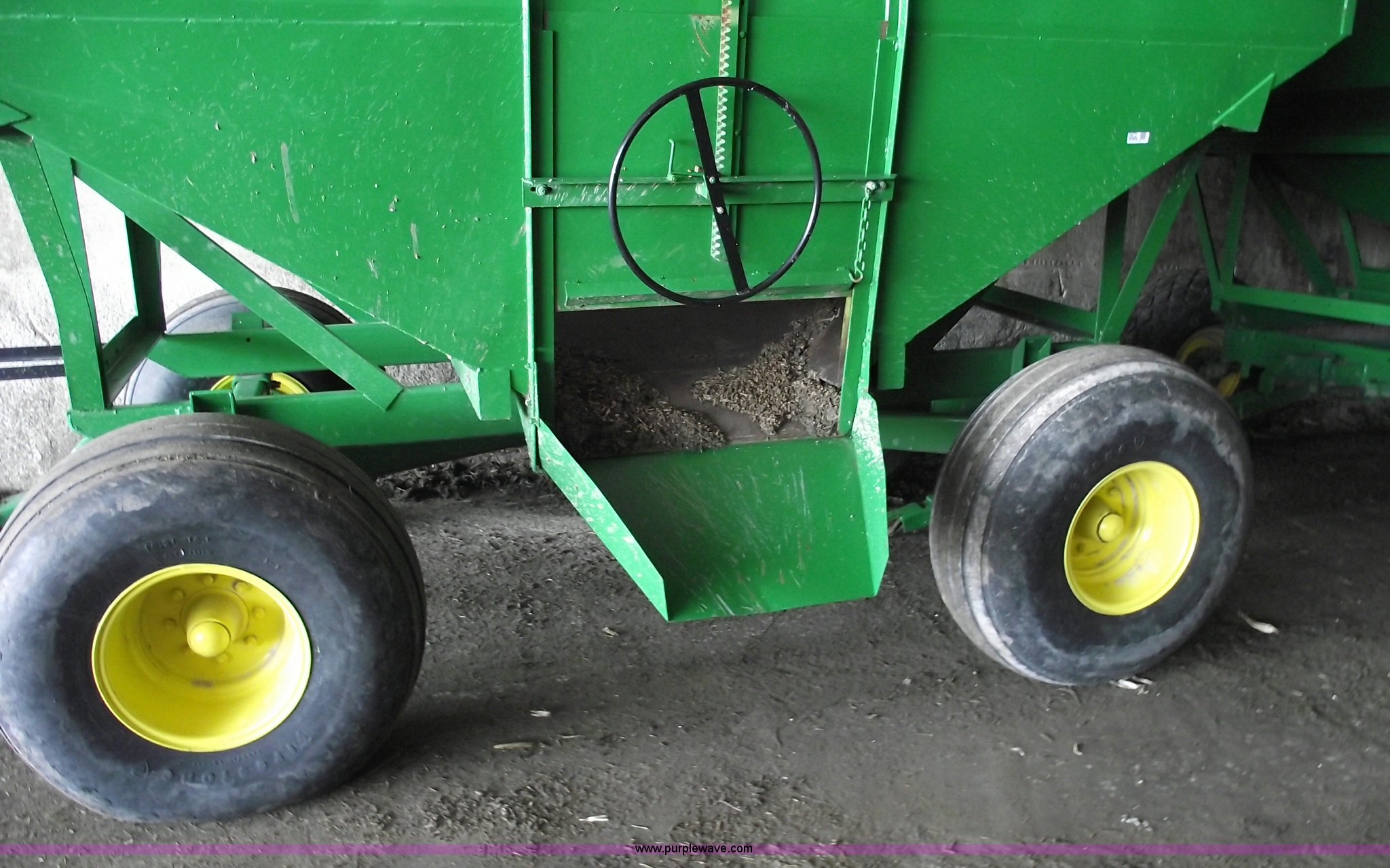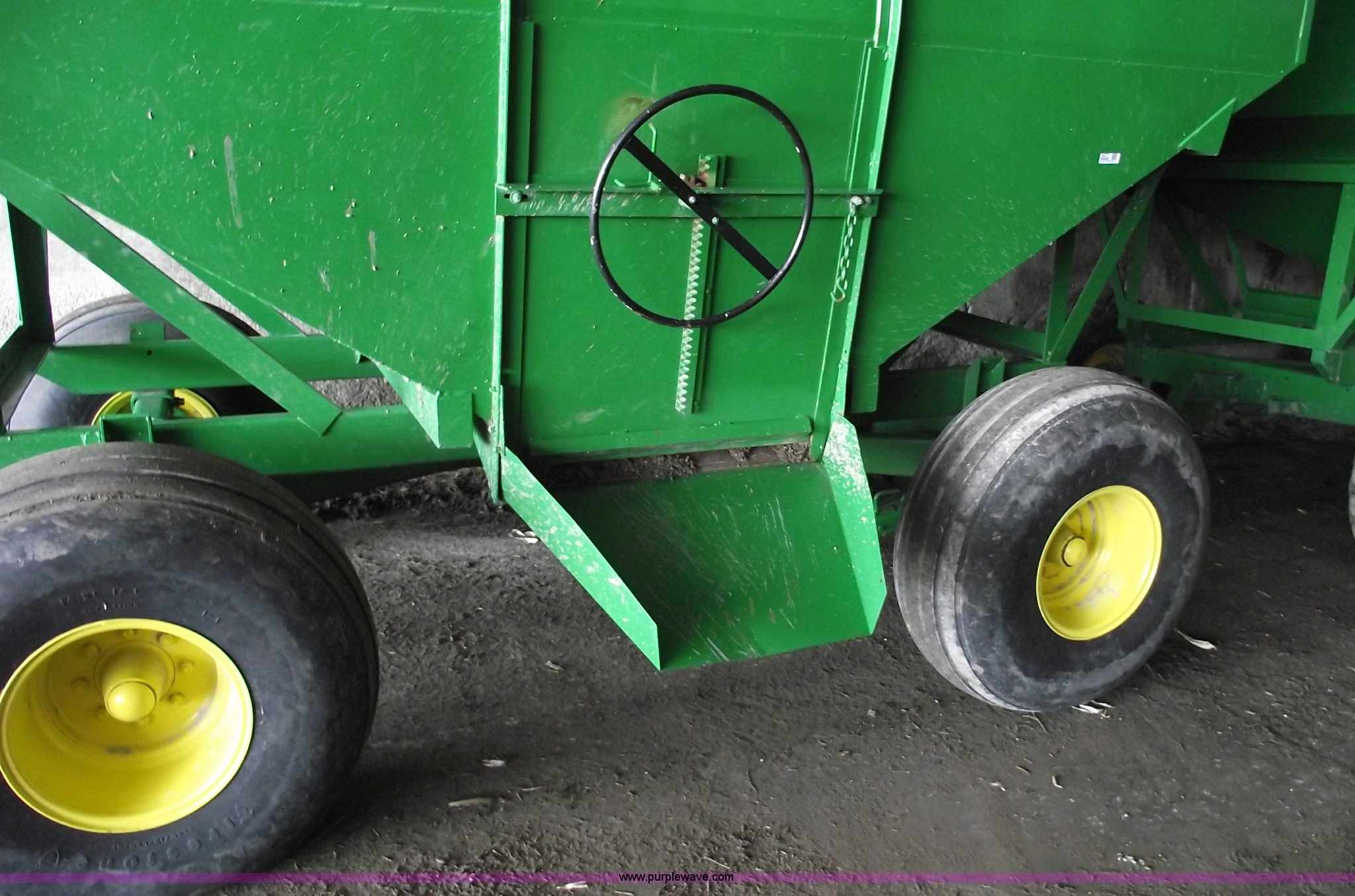 375 bushel gravity wagon. John Deere running gear, Eight bolt lug, Adjustable tongue, 16.5L-16.1 five rib tires 44" tall. Shipping quotes available. J.C. Farms. 14591 3rd St. Ottumwa, IA 52501