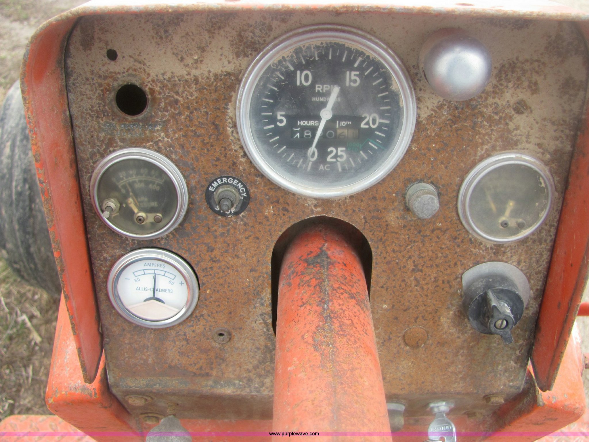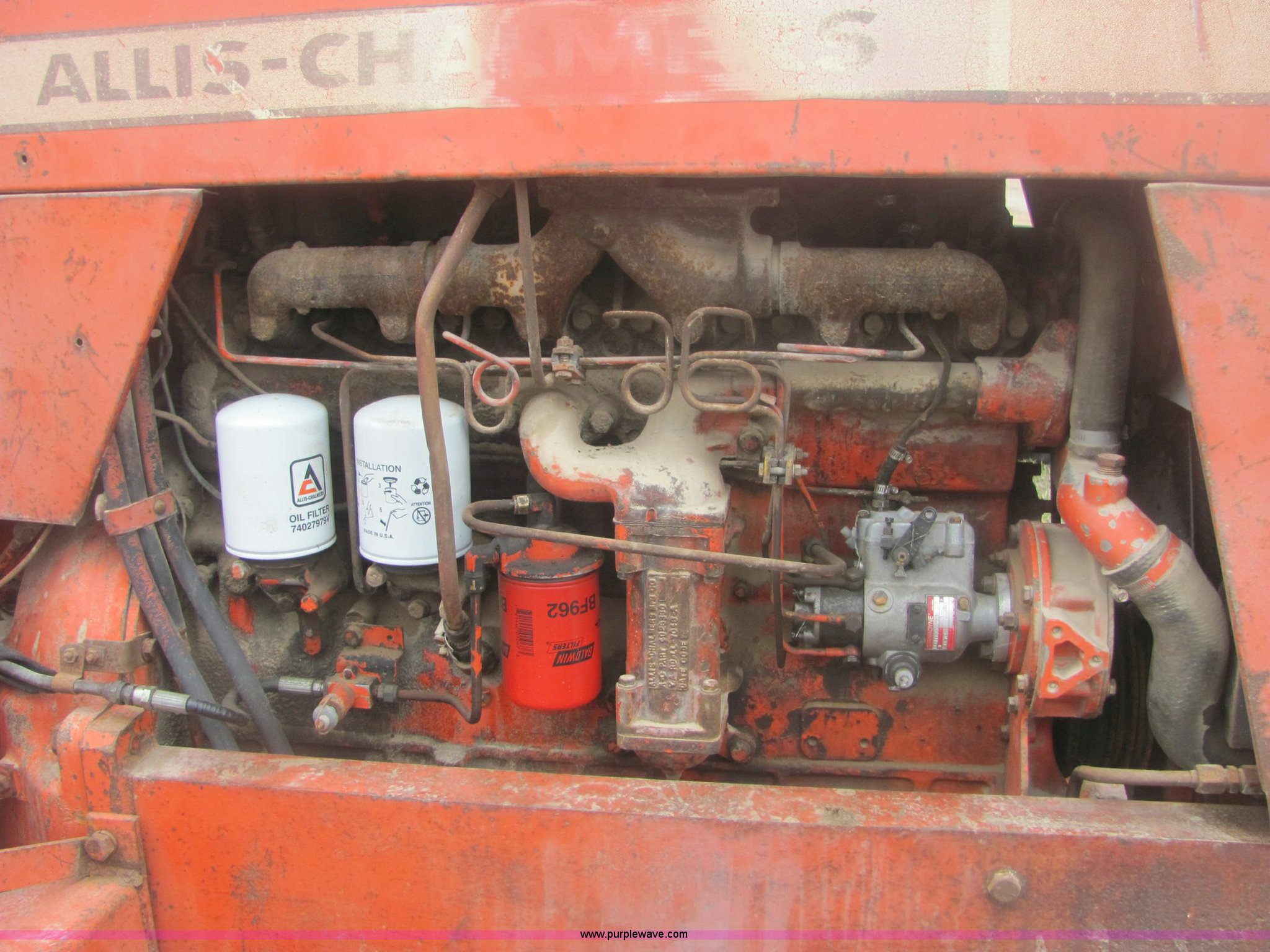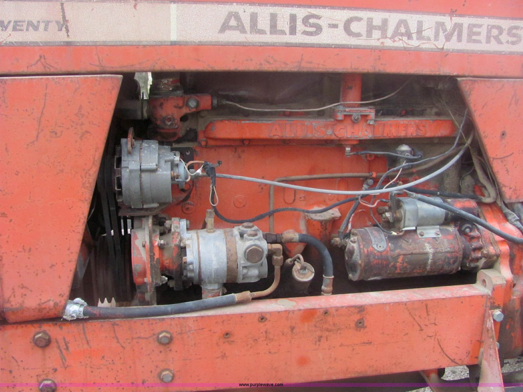 Purple Wave is selling a used Tractor in Kansas. This item is a Allis Chalmers 220 tractor with the following: 4,820 hours on meter, Six cylinder engine, Seven speed transmission, 1000 PTO with 540 converter, (2) hydraulic remotes, 11.00-16 front tires, 18.4-38 rear tires, Injector pump has been overhauled, Needs shut off cable, Serial 220-19941D