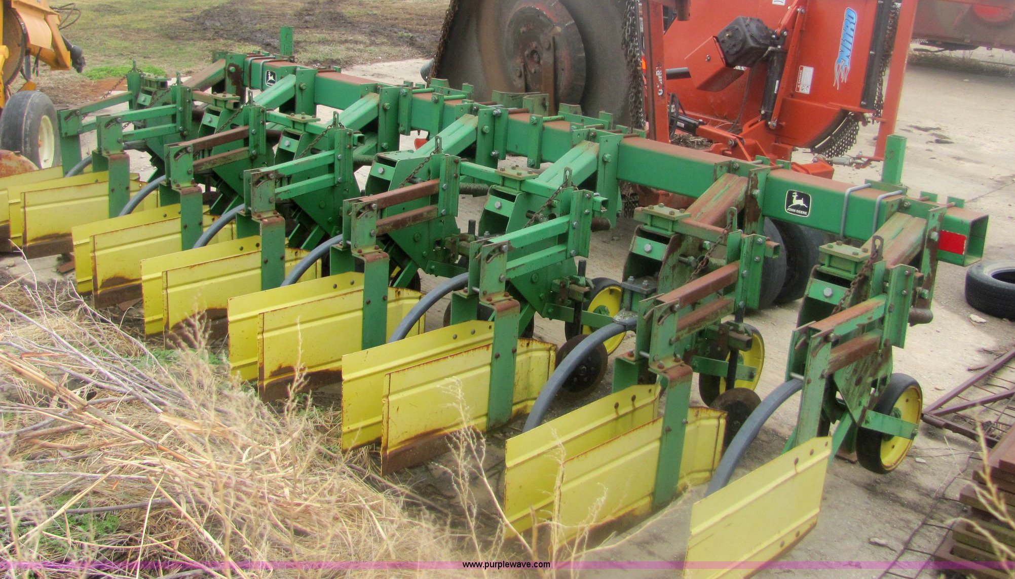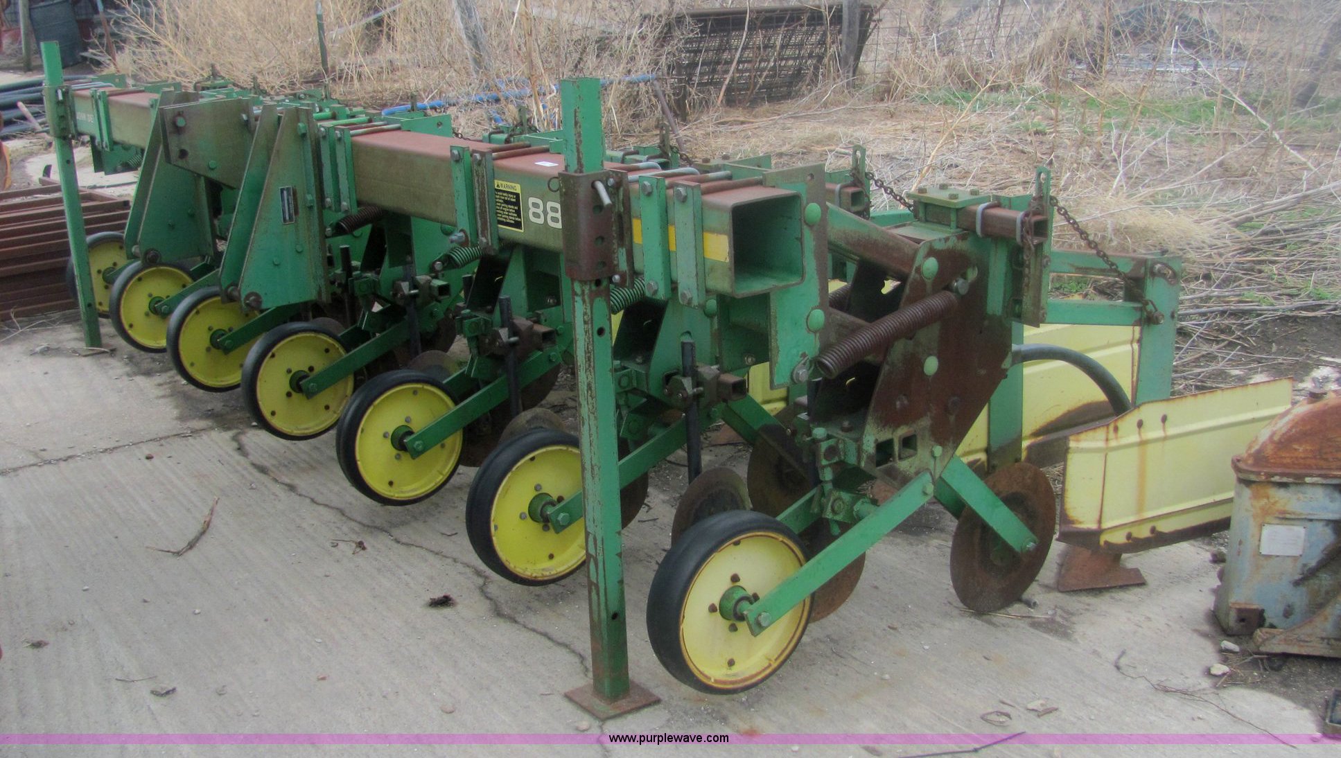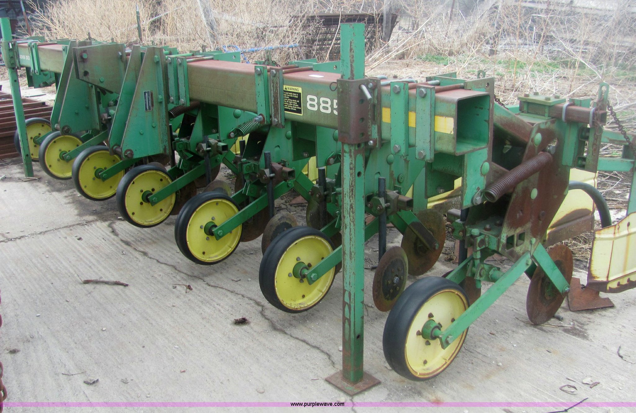 Purple Wave is selling a used Row Crop Cultivator in Kansas. This item is a John Deere 885 six row no-till cultivator with the following: Quick hitch mount, 15.75" blades, 16" sweeps, Serial N00885X001952