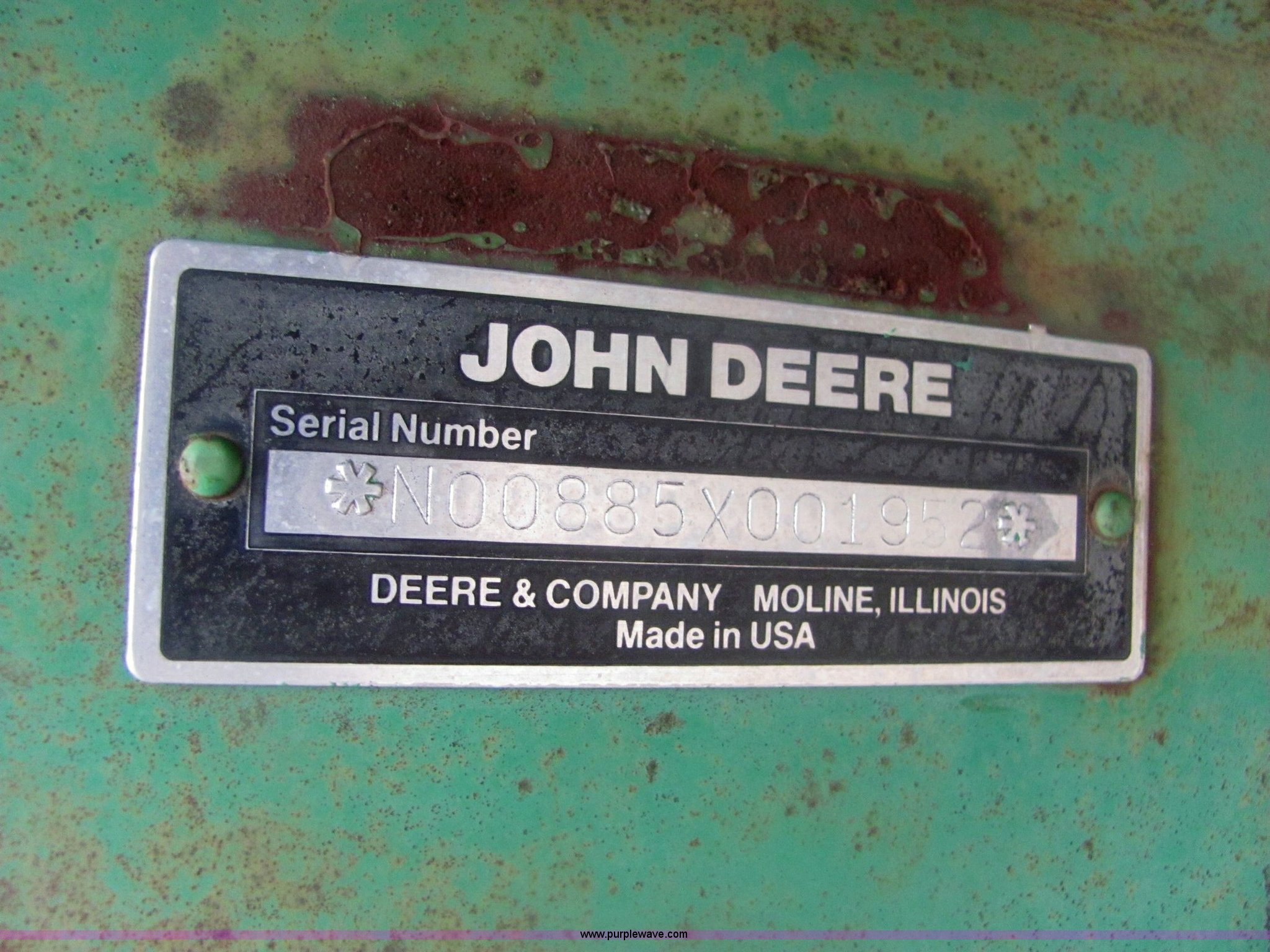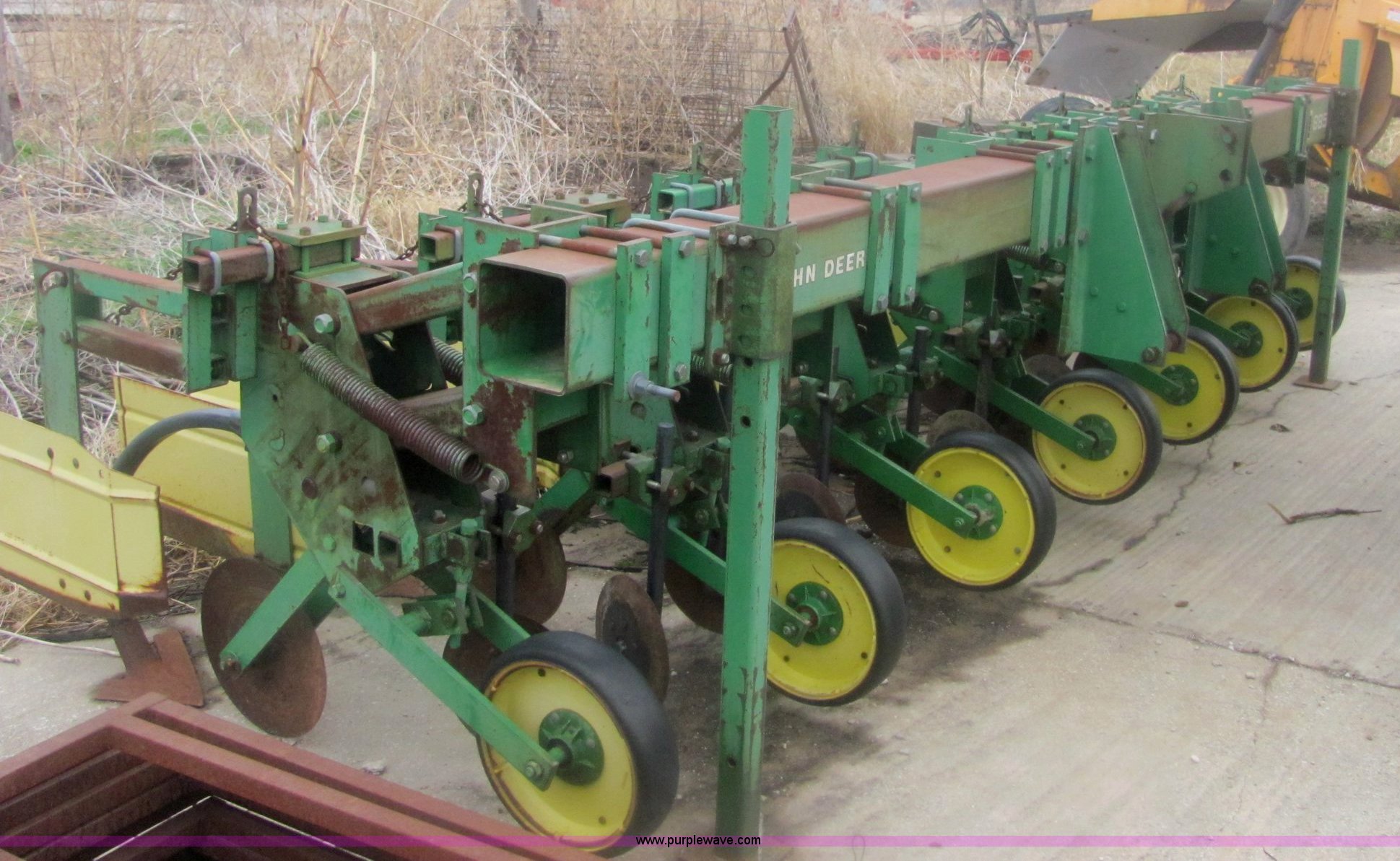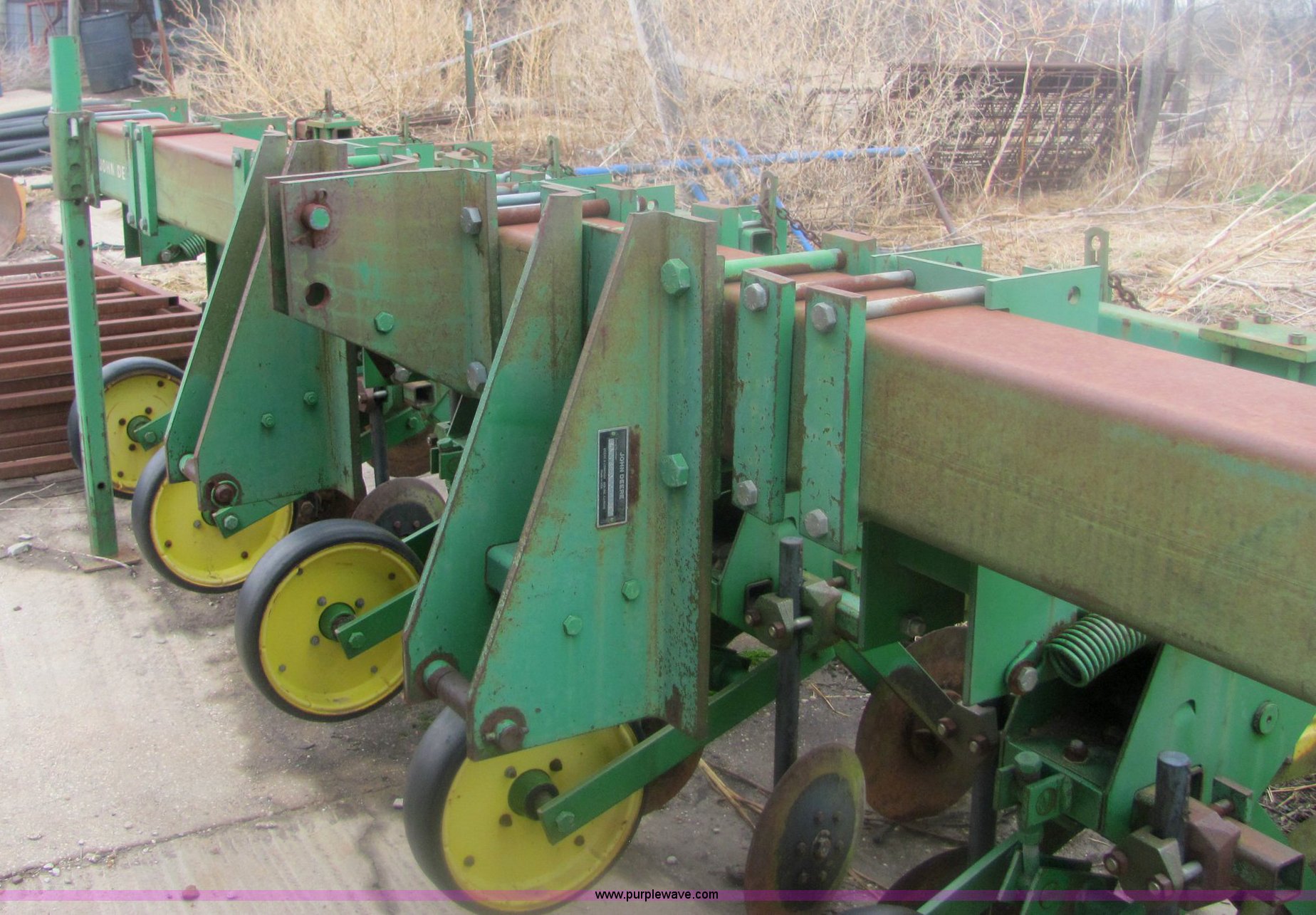 Purple Wave is selling a used Row Crop Cultivator in Kansas. This item is a John Deere 885 six row no-till cultivator with the following: Quick hitch mount, 15.75" blades, 16" sweeps, Serial N00885X001952