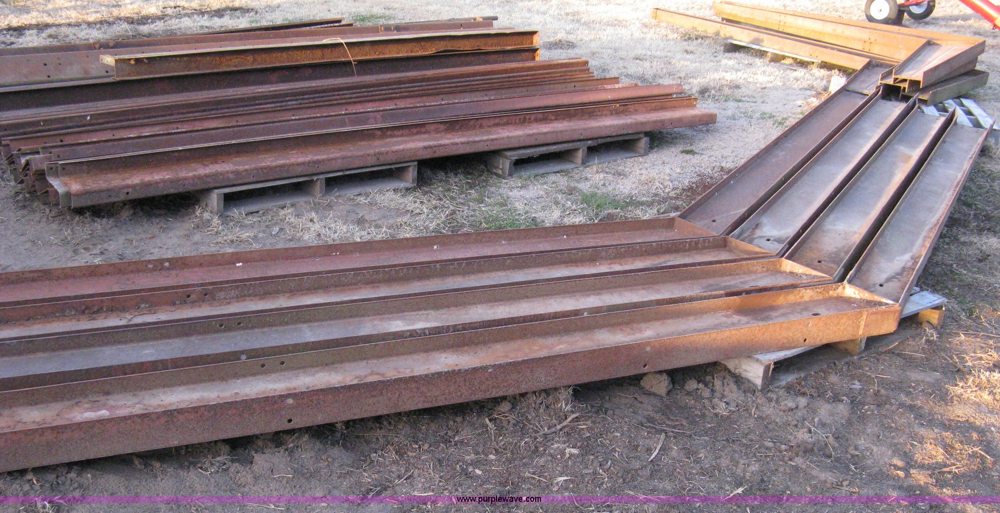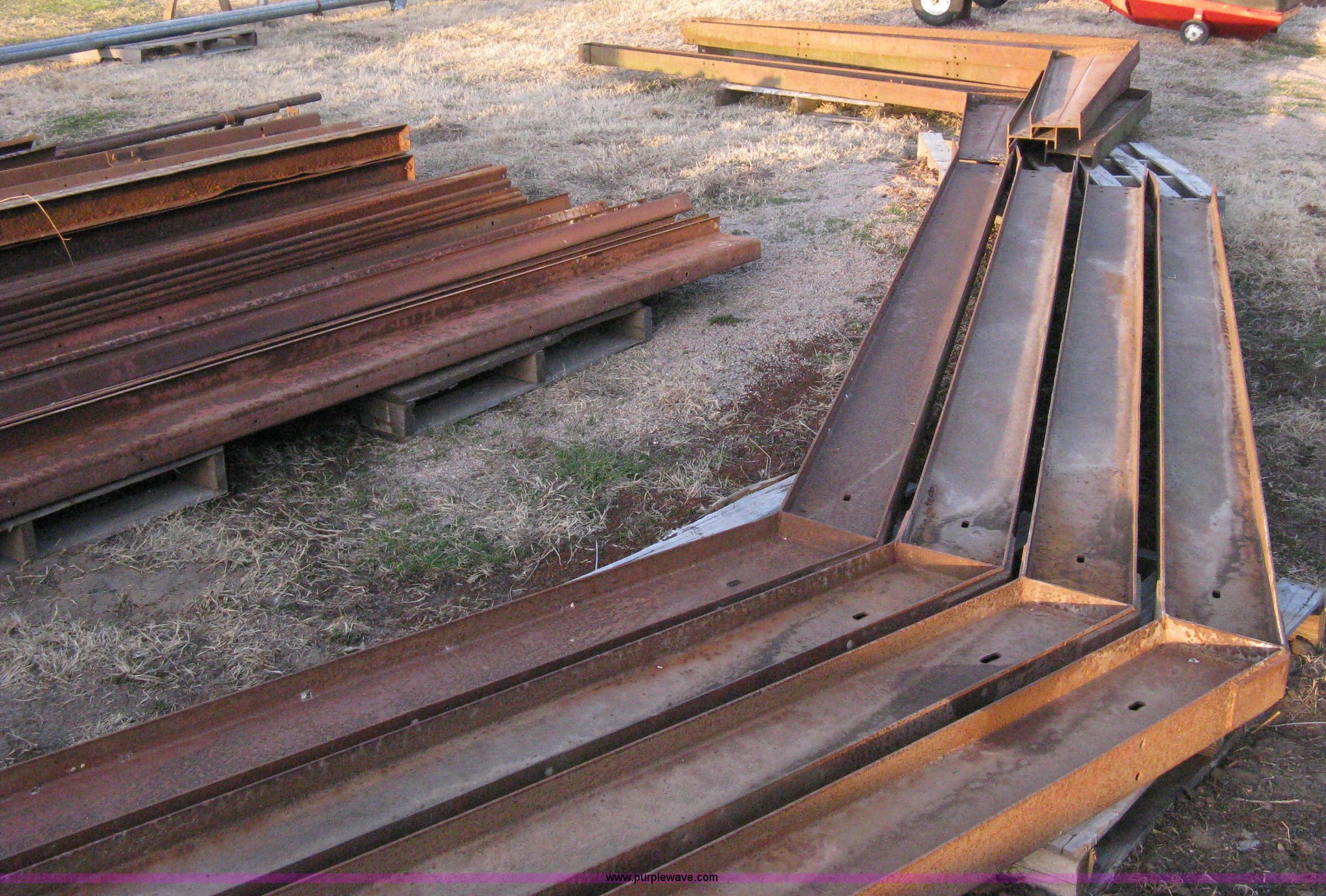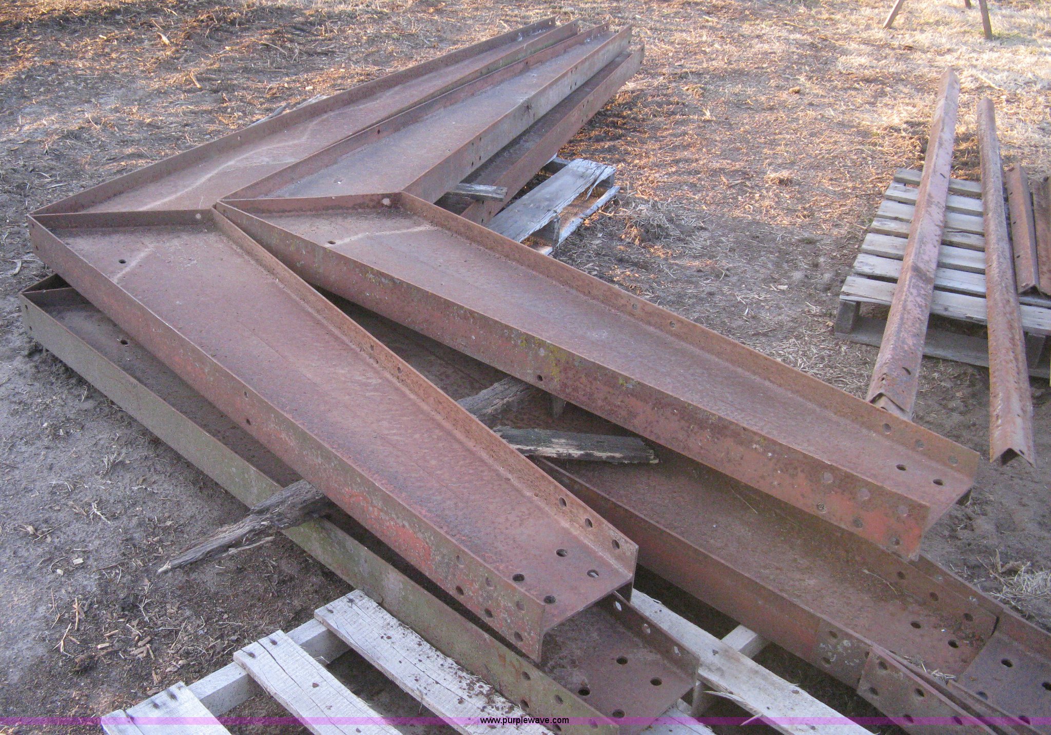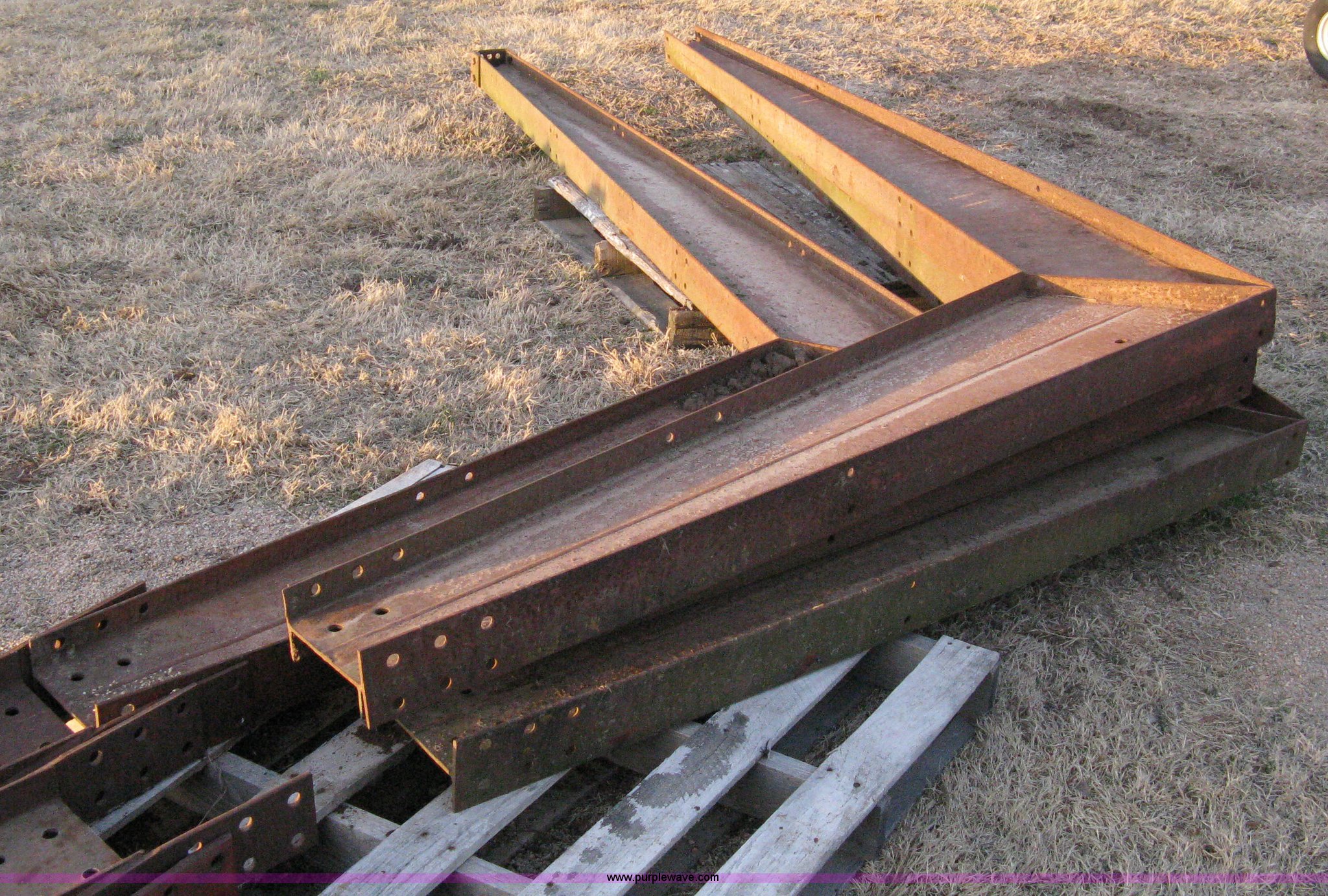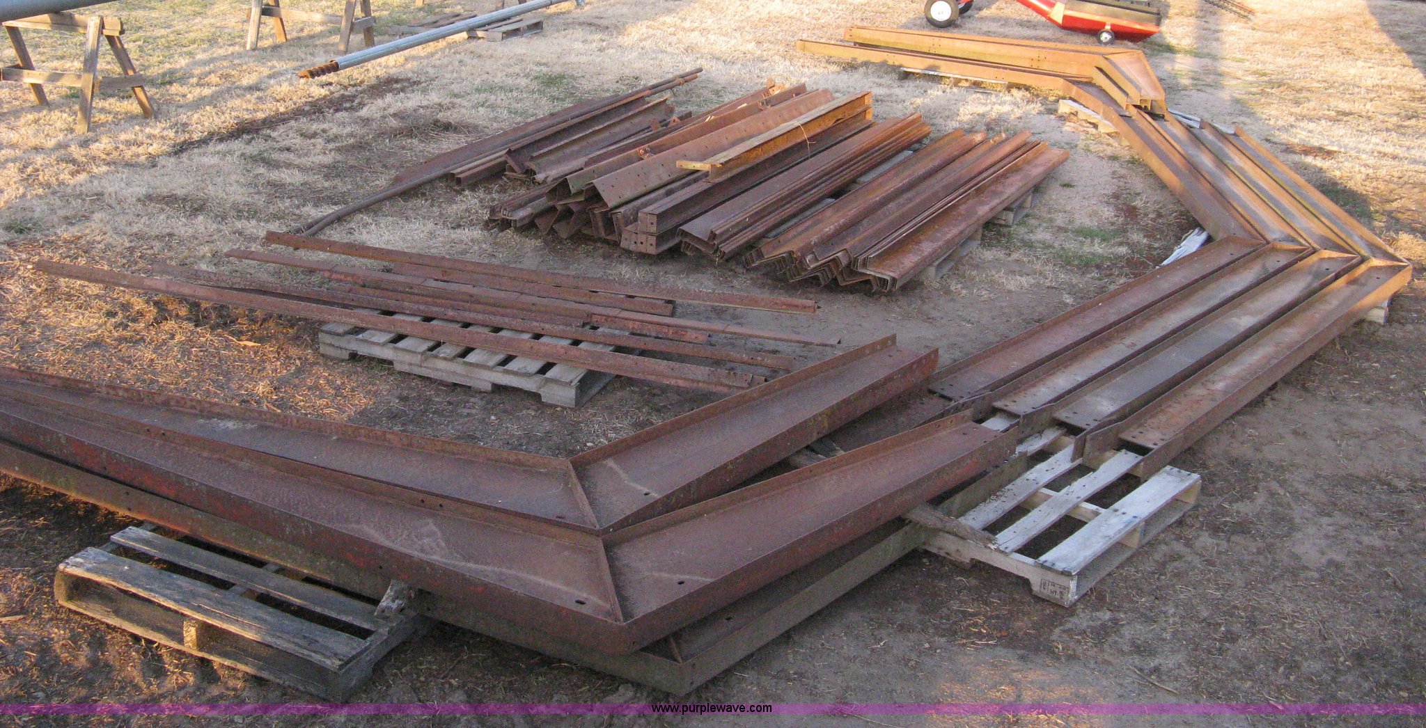 Purple Wave is selling a used Other Industrial or Business in Kansas. This item is a Steel free span building framing with the following: 32'W x 36'L, (4) main trusses, 12' centers, 10' sidewall, (30) purlins 12'L, (8) starter/header rails 12'L, (3) 12' end wall studs, 9'4" end wall stud, (8) 12' sidewall purlins, (9) assorted length purlins, (4) corner braces, (5) 12' floor strap, Assorted iron/rail pieces