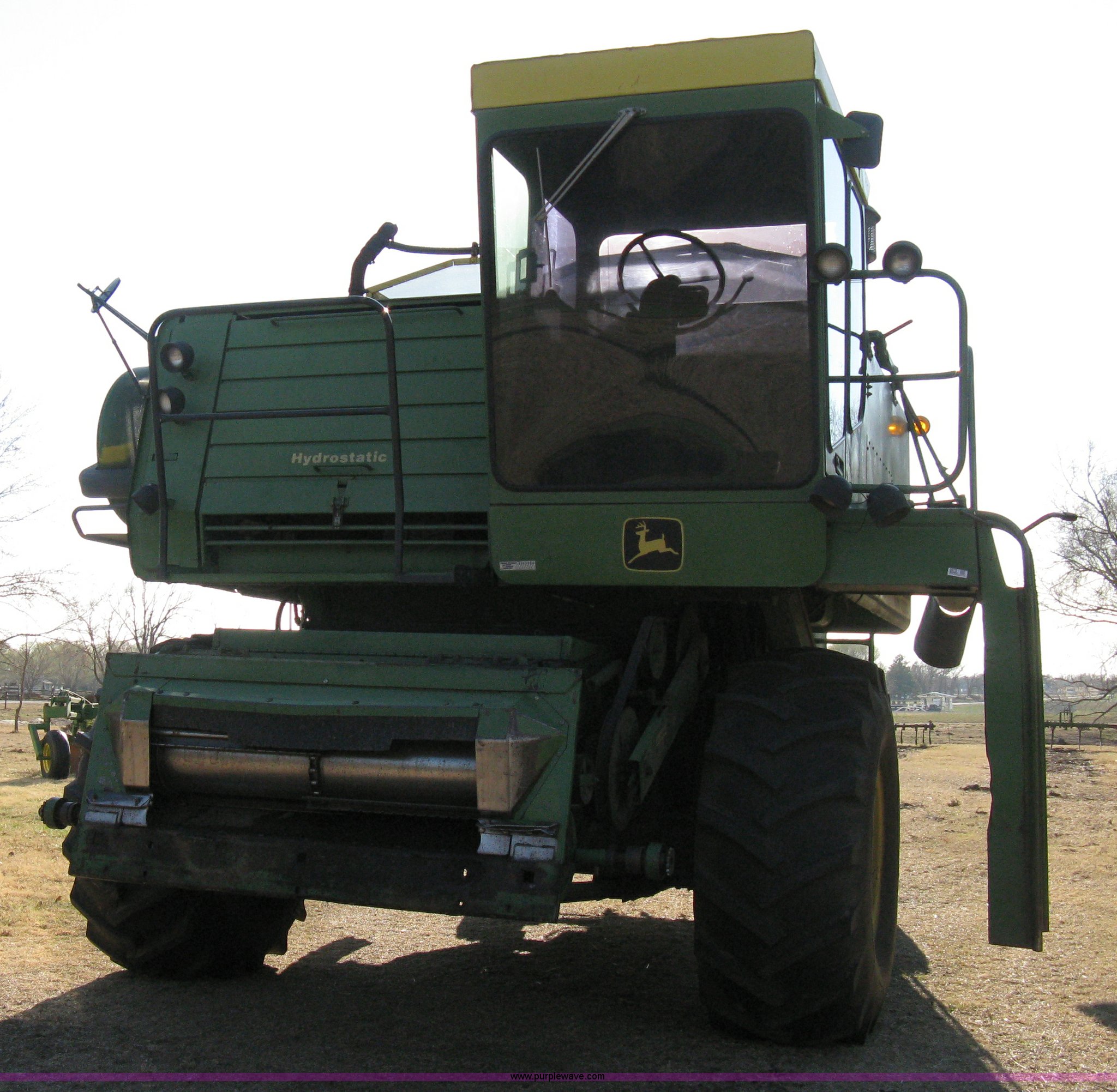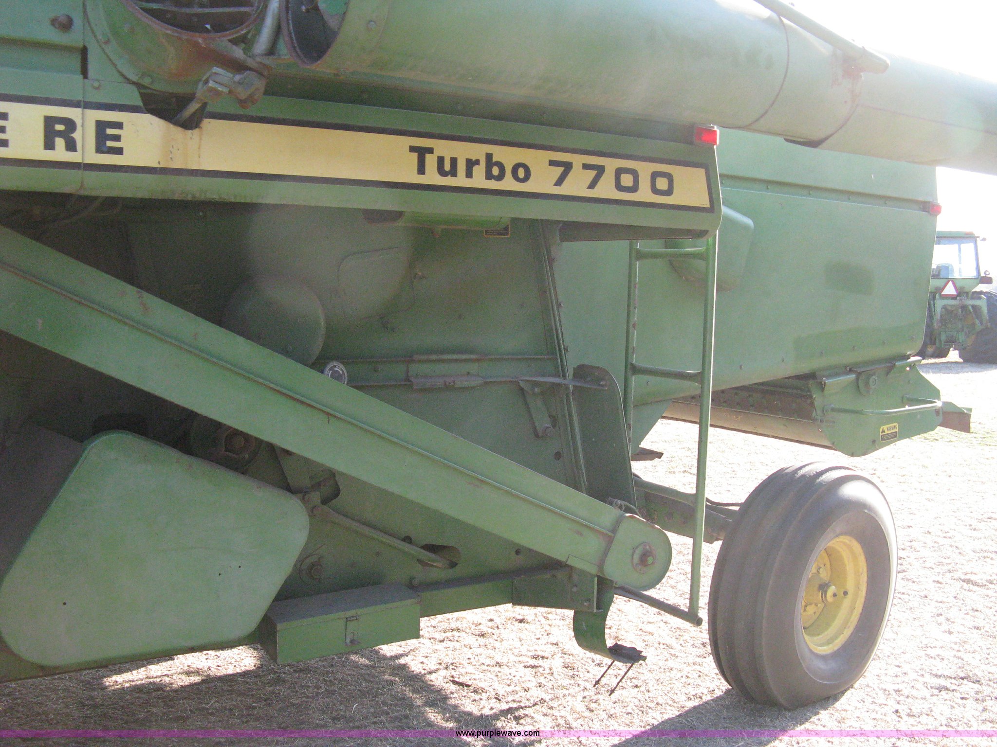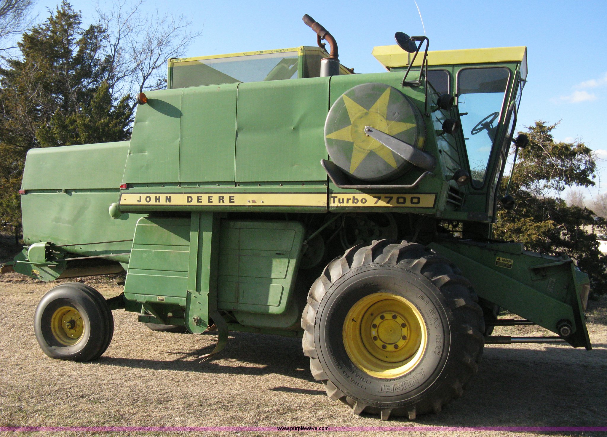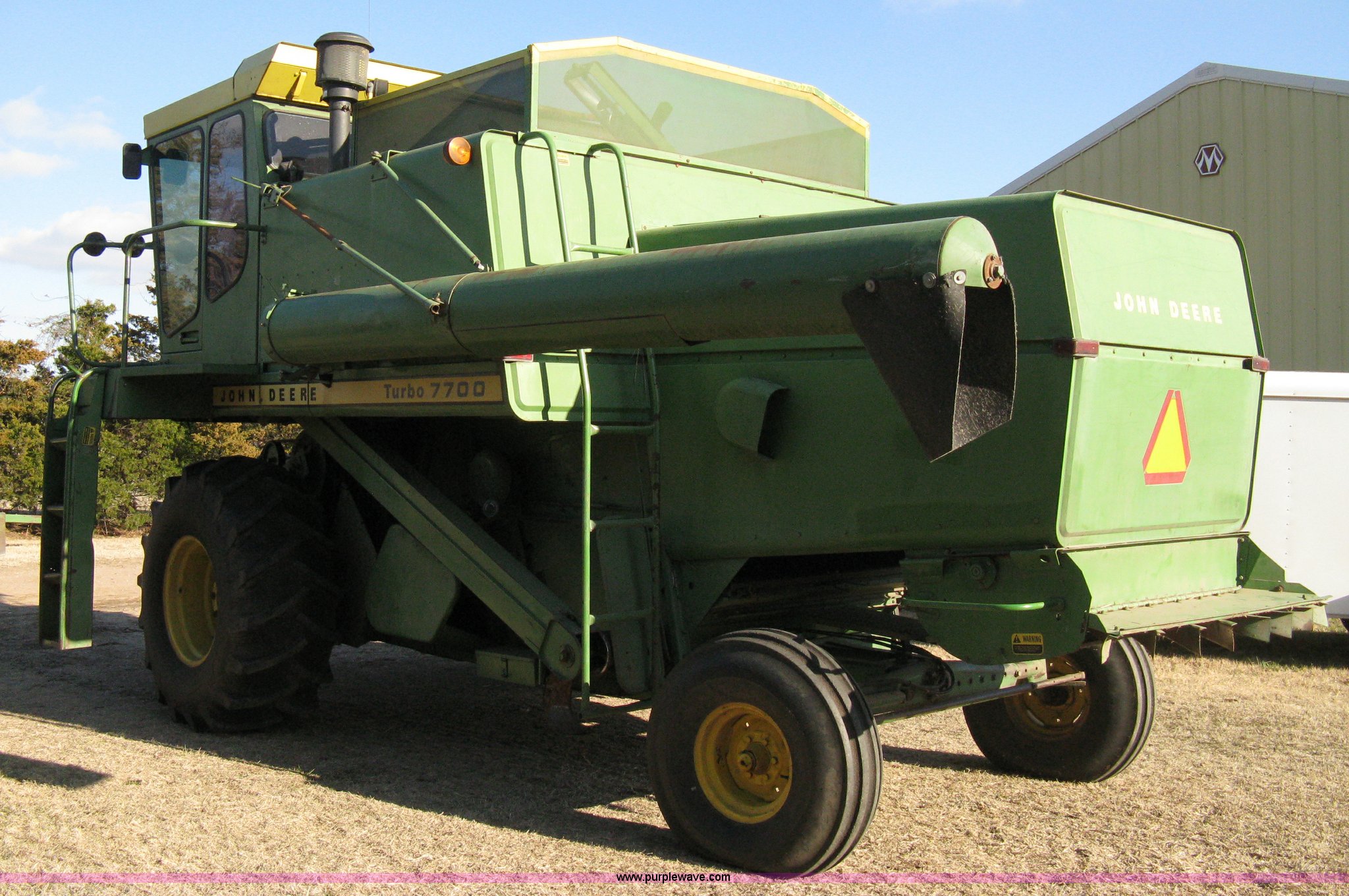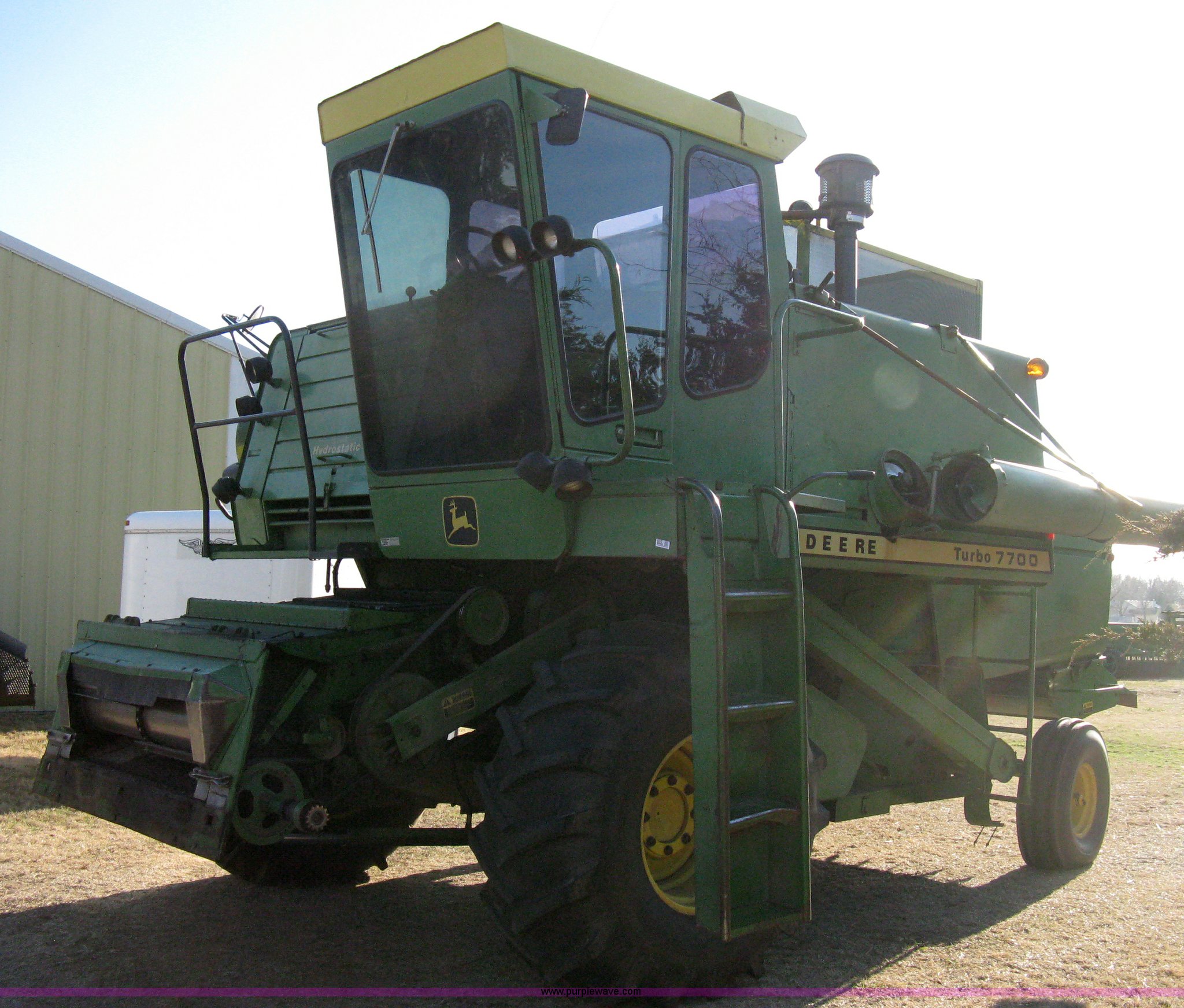 Purple Wave is selling a used Combine in Kansas. This item is a John Deere 7700 combine with the following: 3,755 hours on meter, Diesel engine, Four speed hydrostatic transmission with tow range, AC and heat, AM/FM, Enclosed cab, Model AH-93887, Glass tinted, 23.1-26 front tires, 11.00-16 rear tires, Manuals included, Serial 263555H