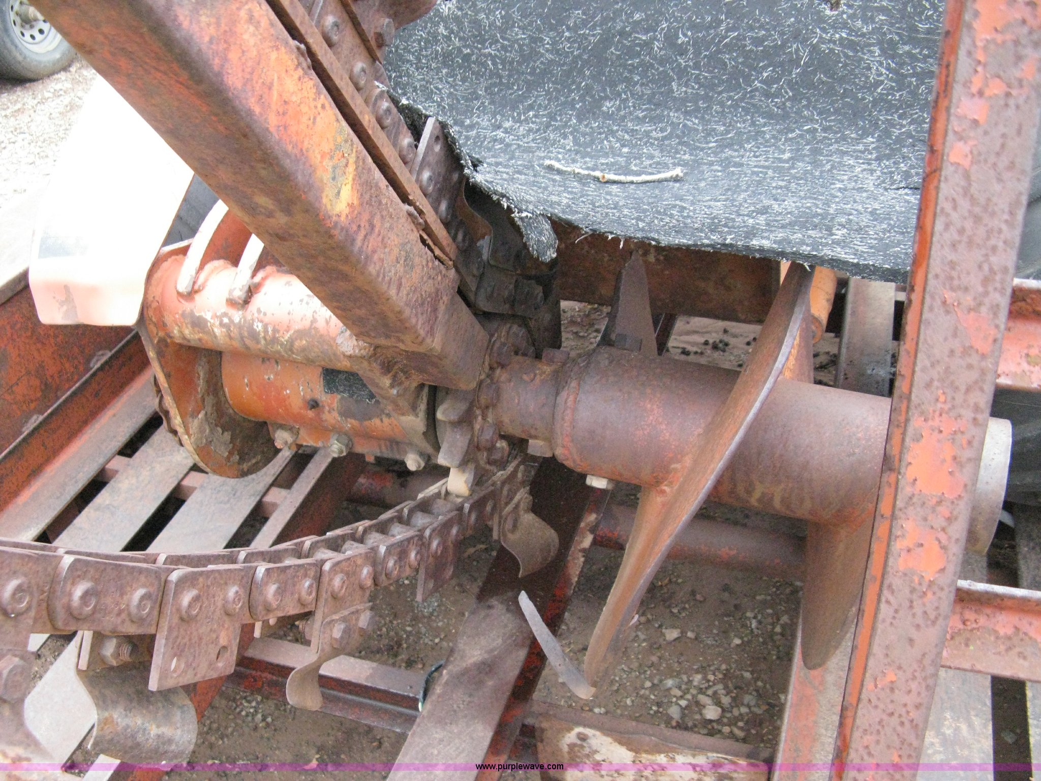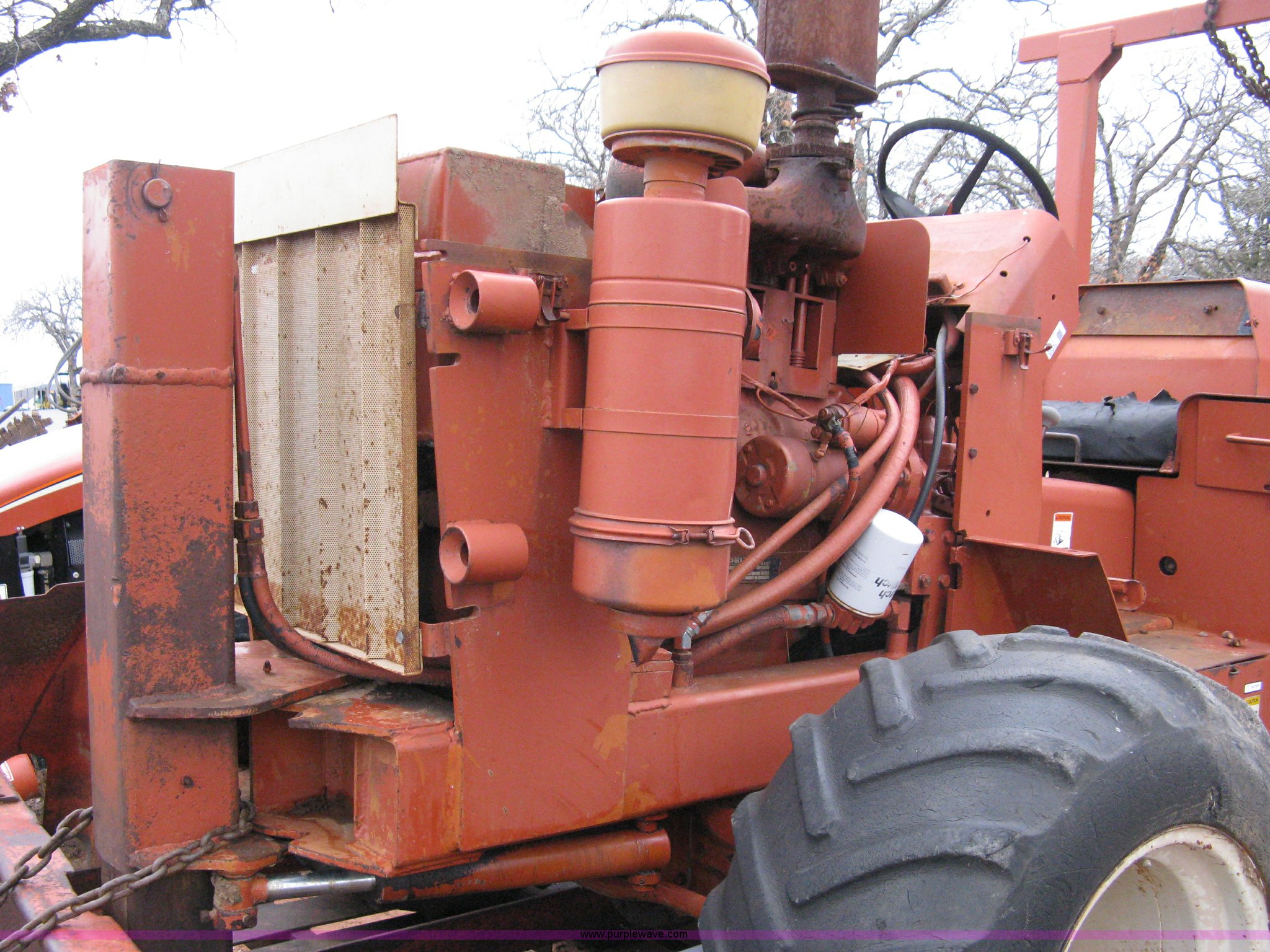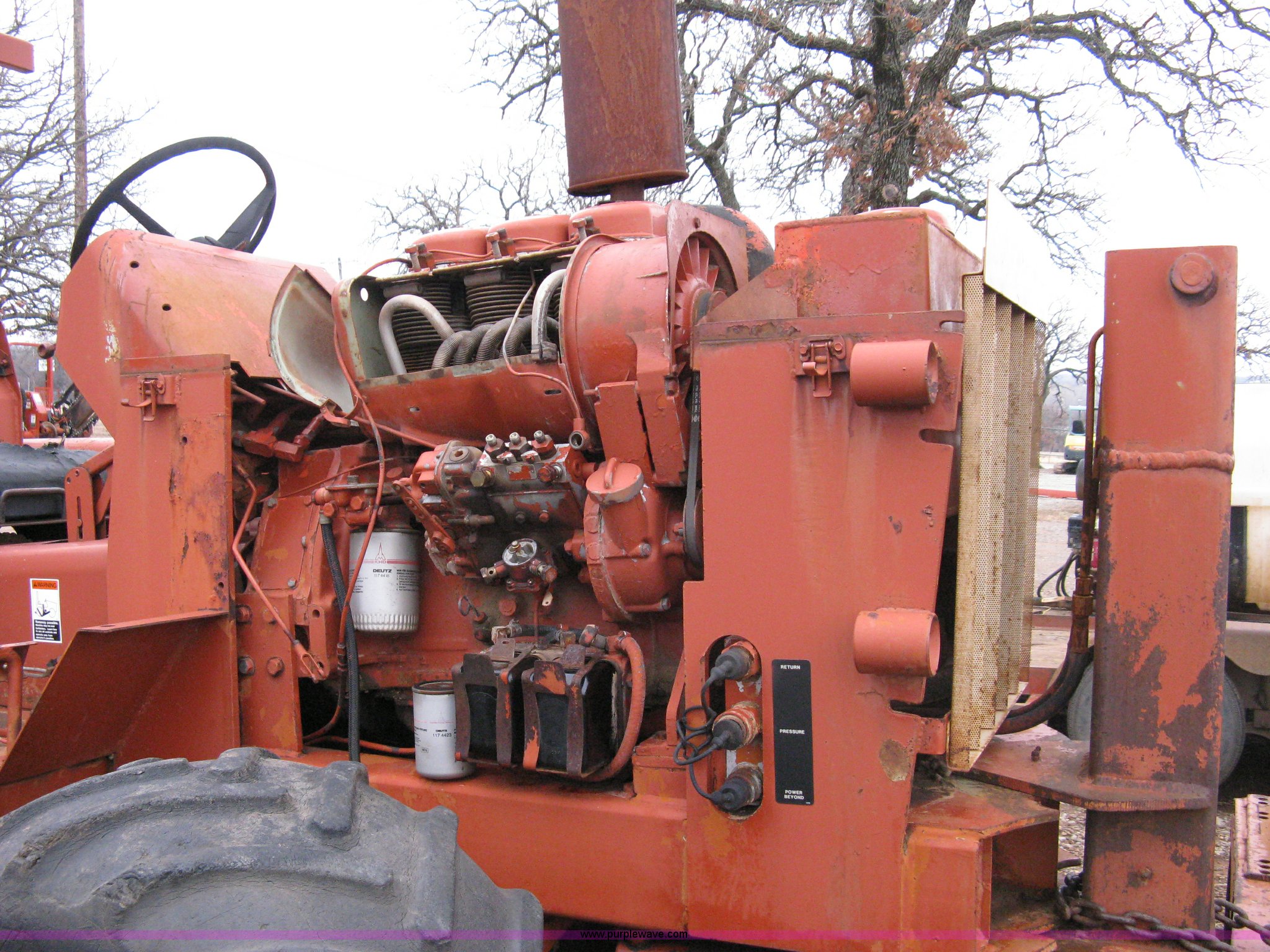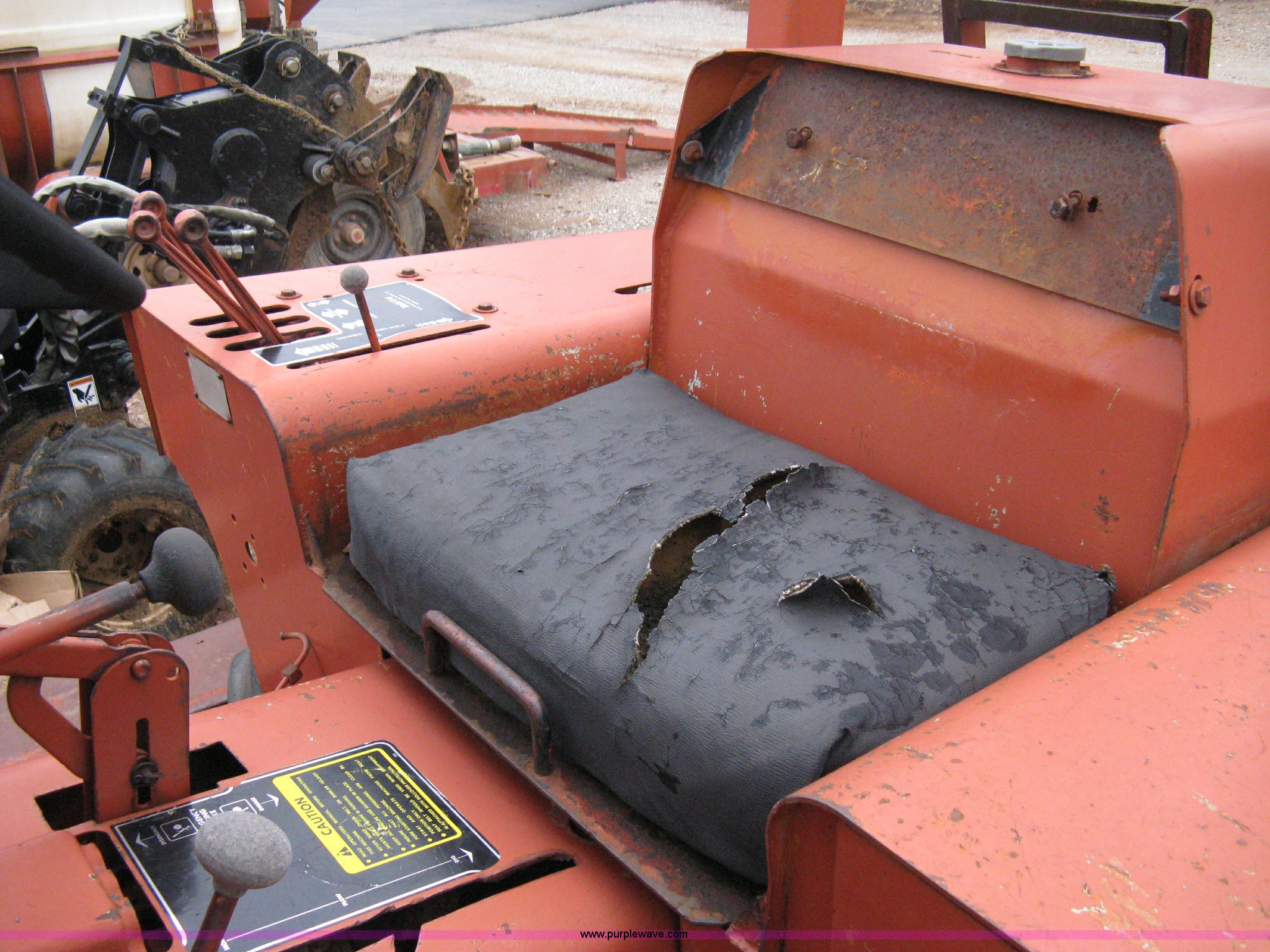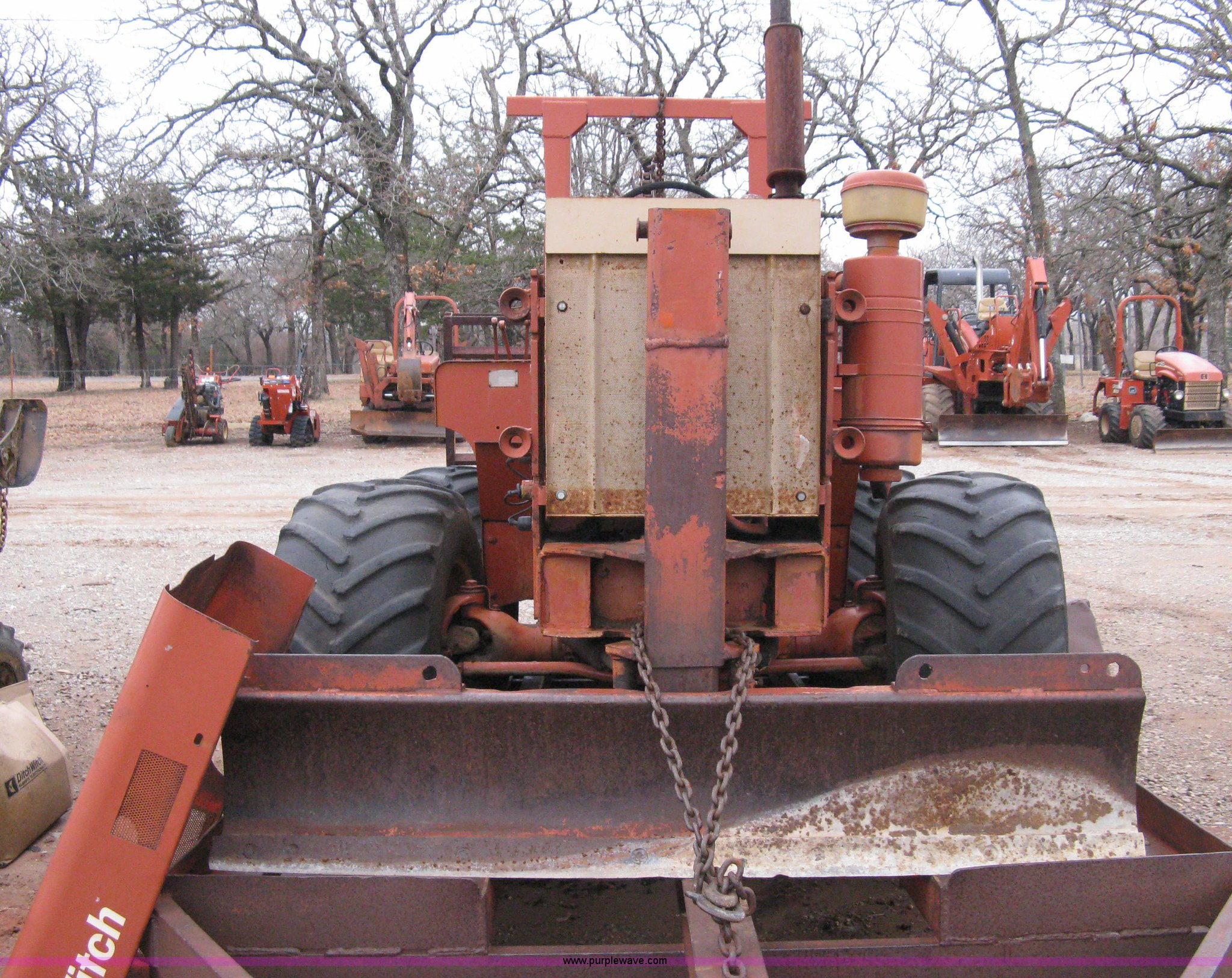 Purple Wave is selling a used Trencher or Rock Saw in Oklahoma. This item is a Ditch Witch R40 trencher and trailer with the following: 2,133 hours on meter, Model R400DD, Diesel engine, Four wheel drive, 64" push blade, Trencher attachment, 80"L, 12"W, Model R40A, Serial ST427636, Auxiliary hydraulics, Two-post roll bar, Key start, Throttle on dash and foot pedal, Engine needs repairs, Fuel lines removed