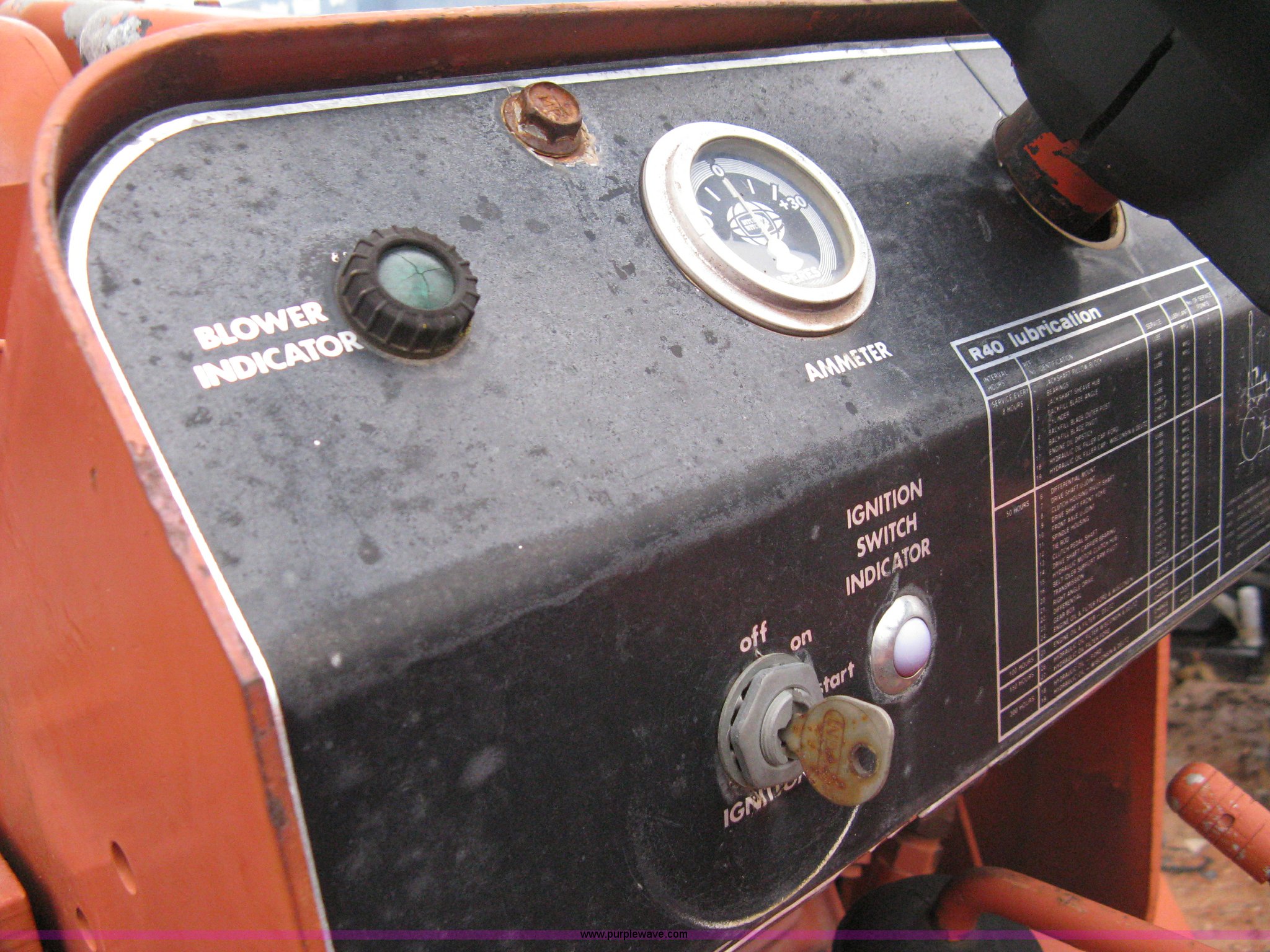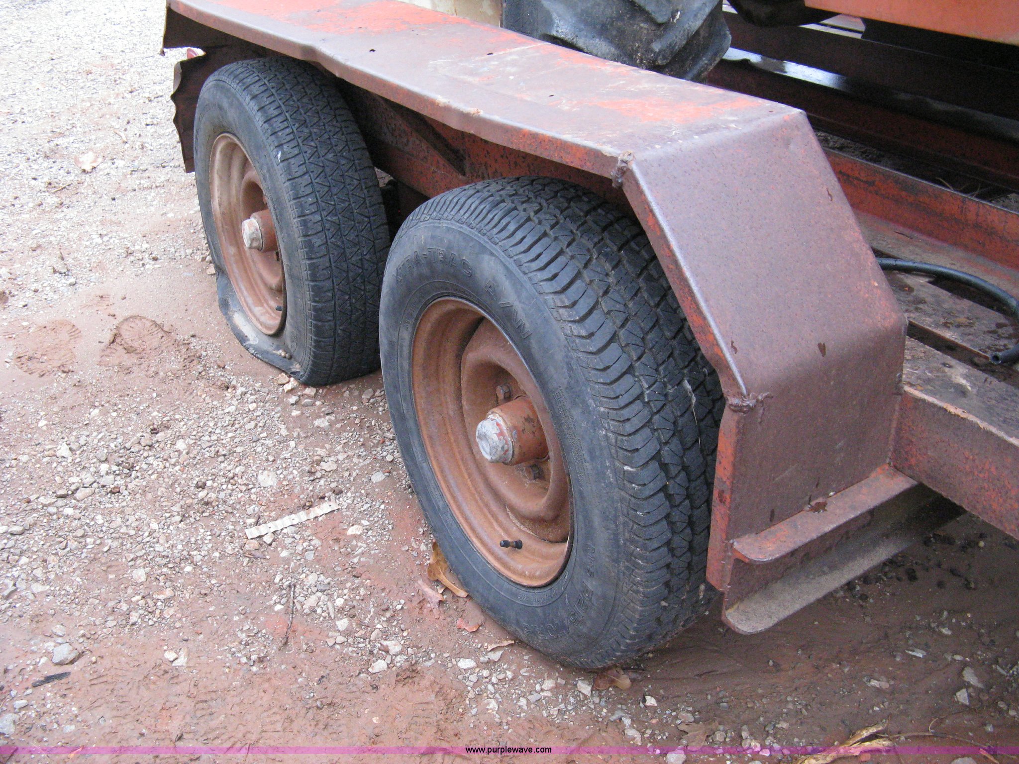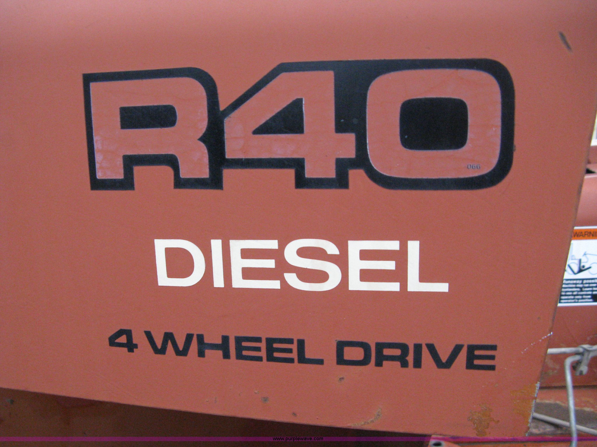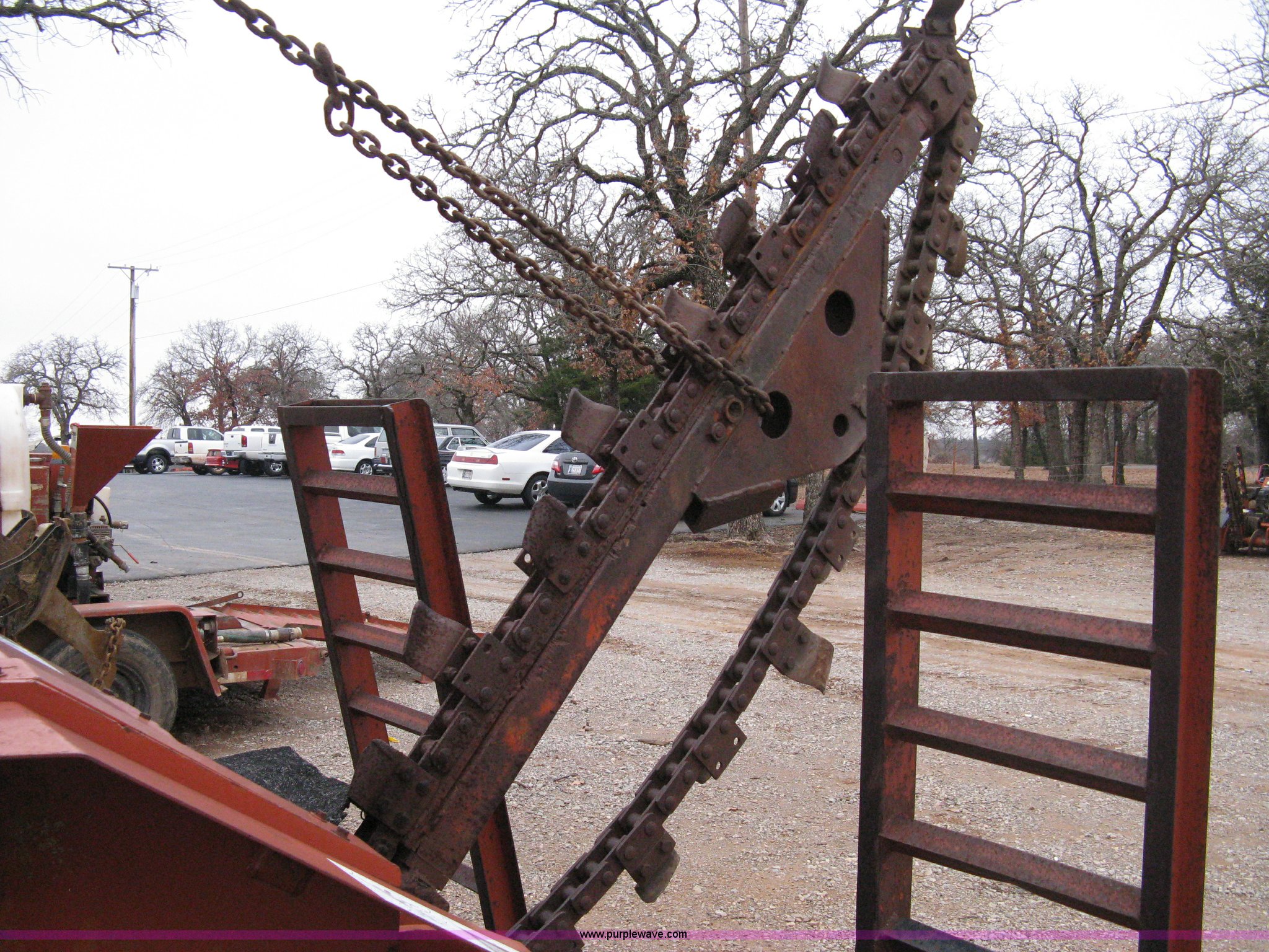 Purple Wave is selling a used Trencher or Rock Saw in Oklahoma. This item is a Ditch Witch R40 trencher and trailer with the following: 2,133 hours on meter, Model R400DD, Diesel engine, Four wheel drive, 64" push blade, Trencher attachment, 80"L, 12"W, Model R40A, Serial ST427636, Auxiliary hydraulics, Two-post roll bar, Key start, Throttle on dash and foot pedal, Engine needs repairs, Fuel lines removed